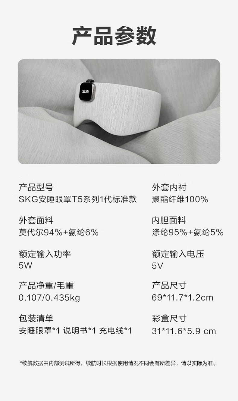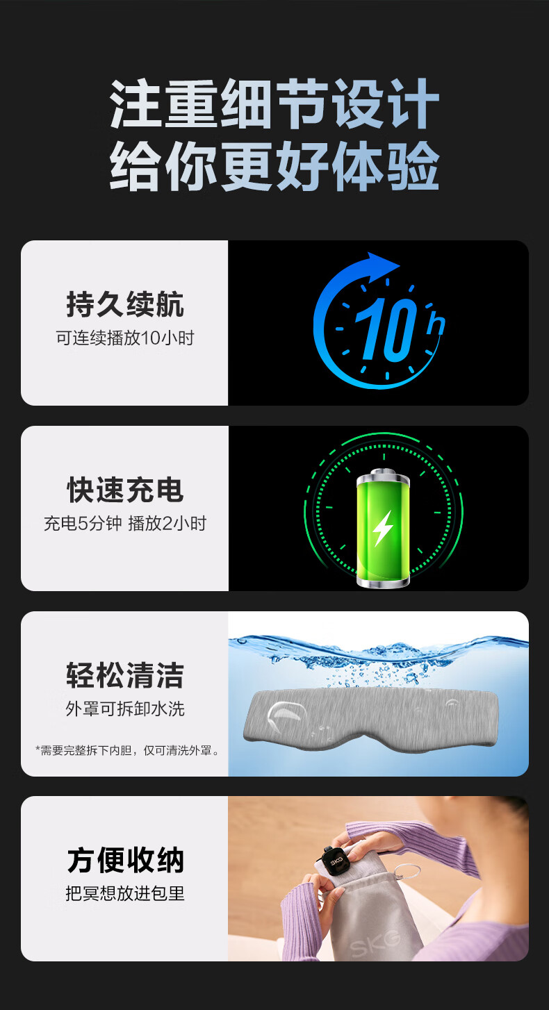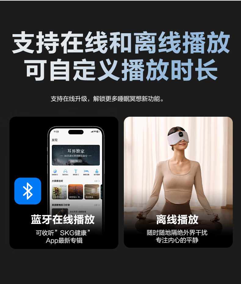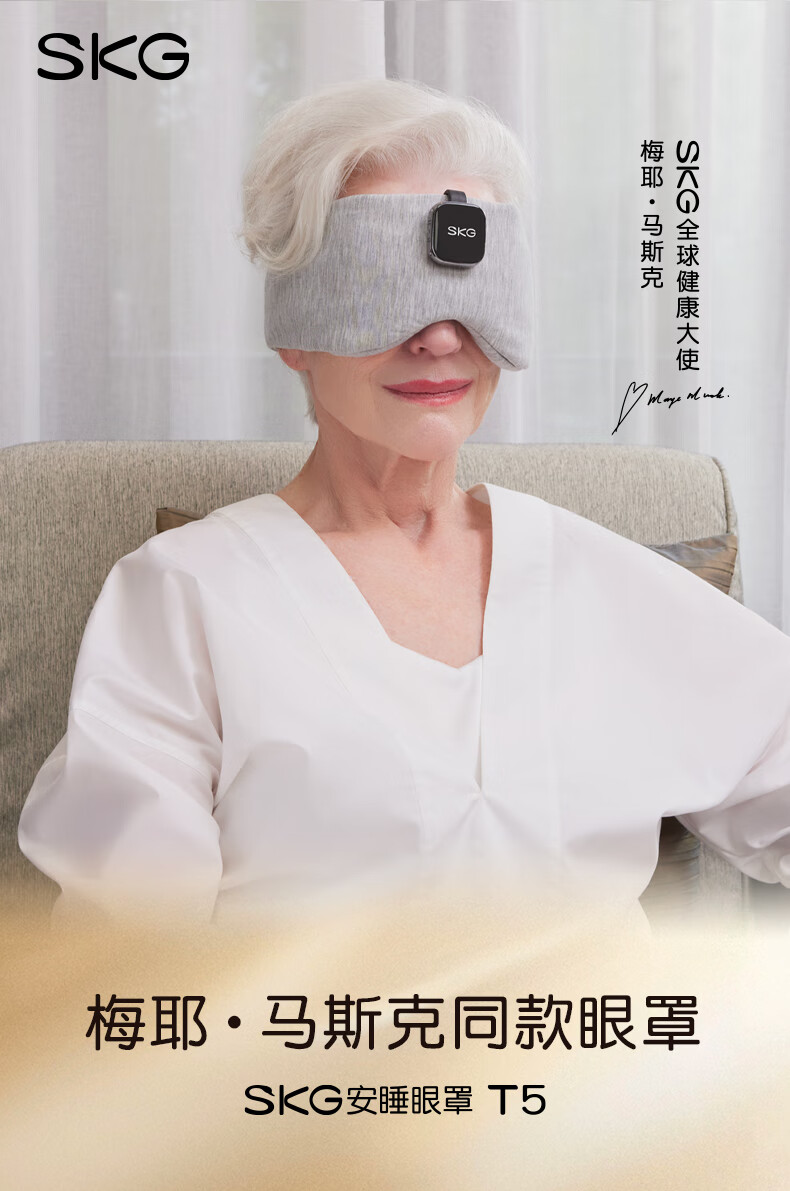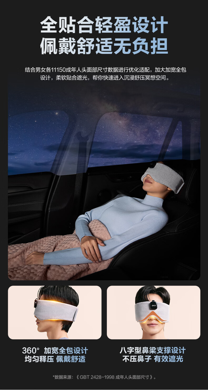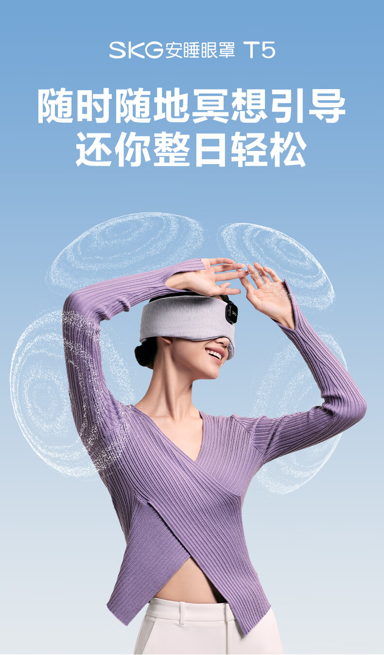 SKG睡眠眼罩遮光3D立体可折叠蓝牙APP音乐午睡护眼仪透气轻薄专用情人节实用毕业礼物送老师男女友 睡眠眼罩T5 心选到家