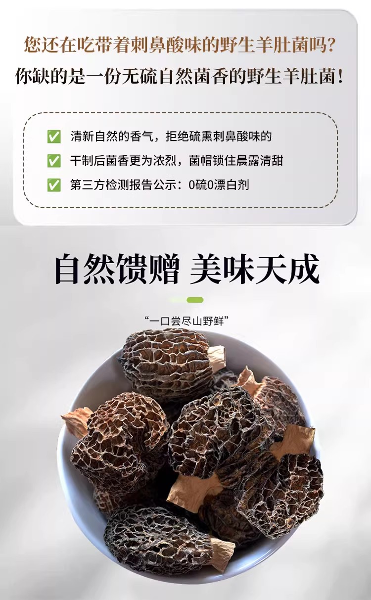 在菌屋 云南高原纯野生羊肚菌干货50g/罐