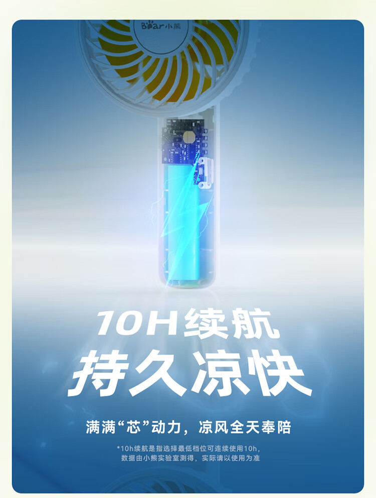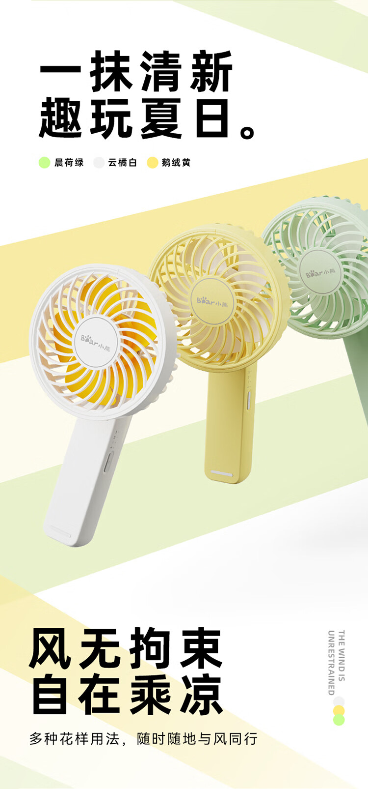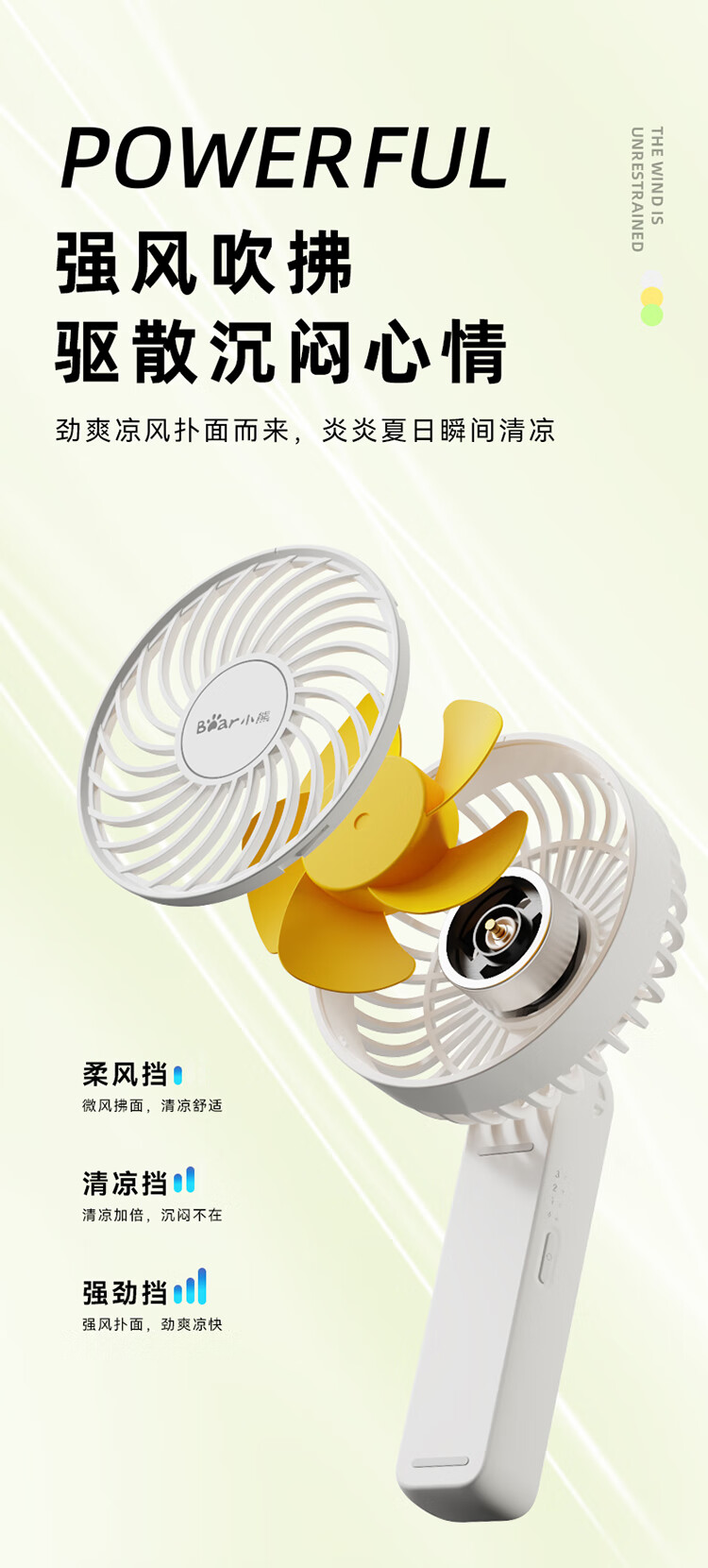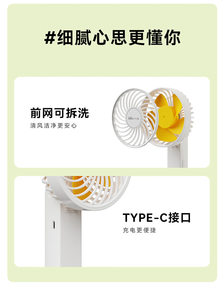 小熊(Bear)手持电风扇小风扇便携式迷你风扇充电式usb风扇办公室可折叠小风扇出行旅游伴侣DFS-Y03A3云橘白