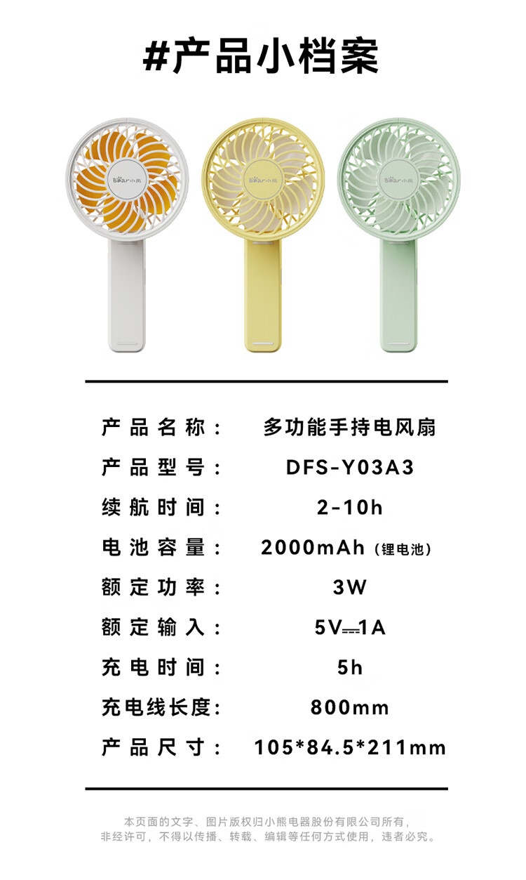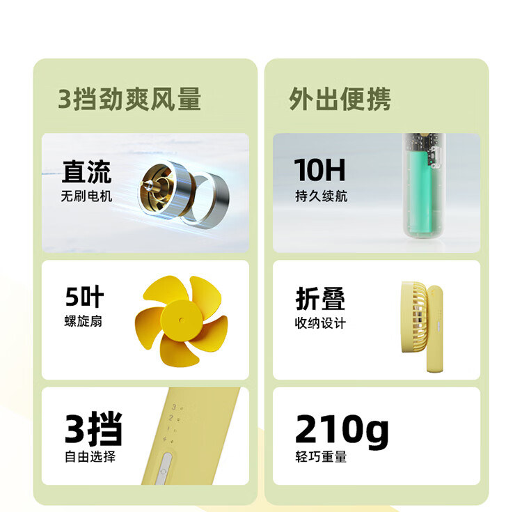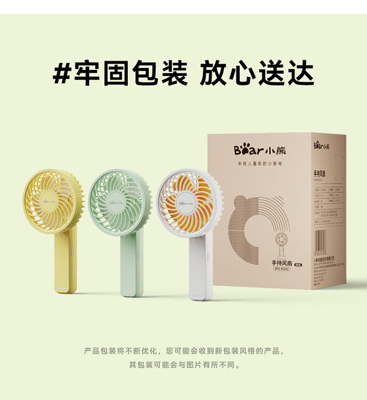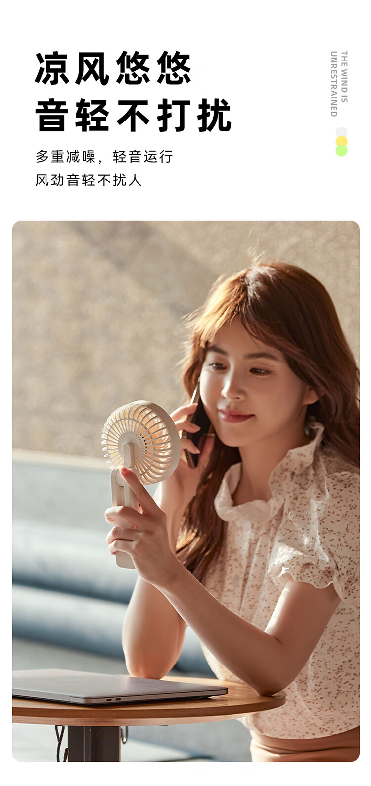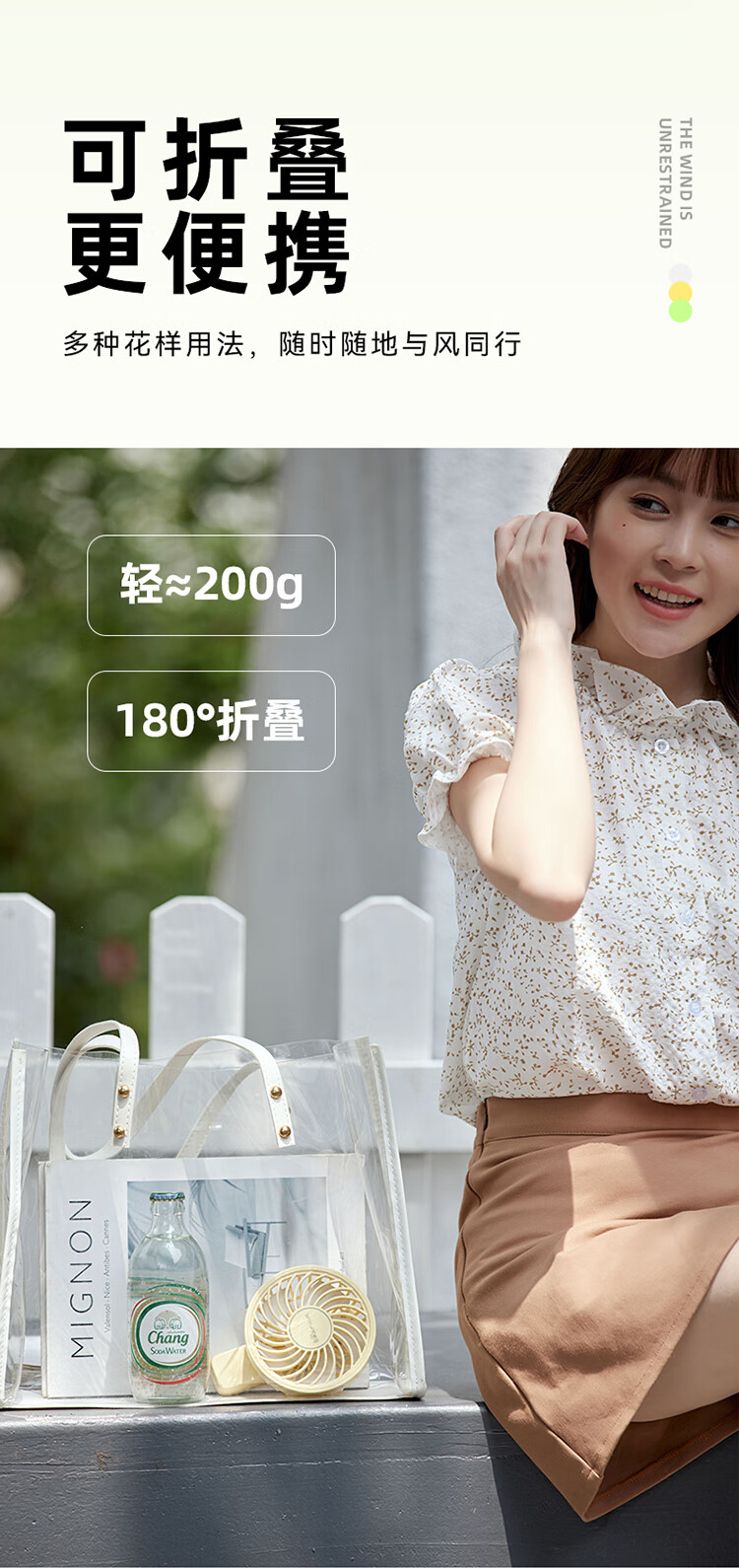 小熊(Bear)手持电风扇小风扇便携式迷你风扇充电式usb风扇办公室可折叠小风扇出行旅游伴侣DFS-Y03A3云橘白
