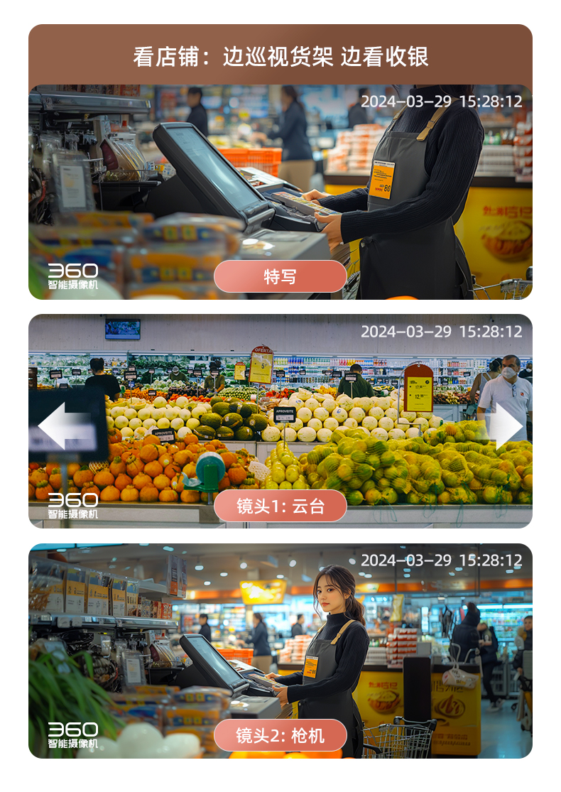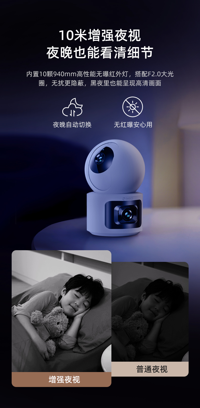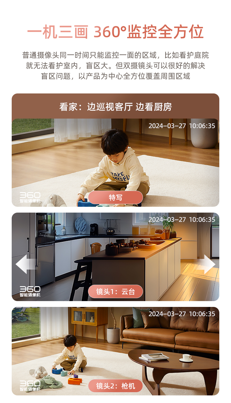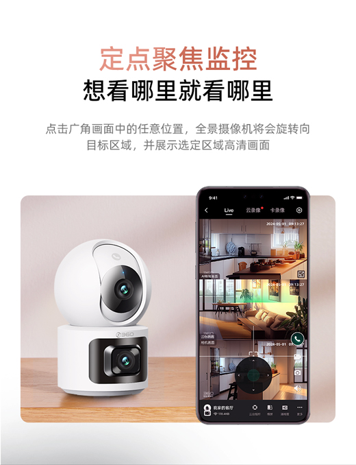 【超值】360云台摄像机P300双摄版 双300万镜头 一台顶三台 监控区域全局看护 AI全景追踪 微光夜视