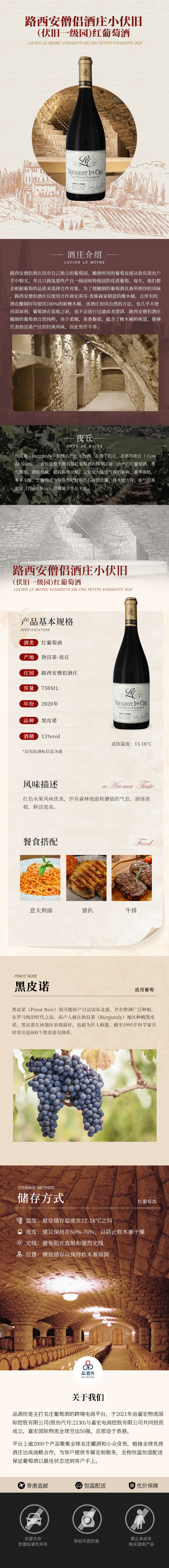 2020 Lucien Le Moine Vougeots 1er Cru Petits Vougeots 路西安僧侣酒庄小伏旧(伏旧一级园)红葡萄酒