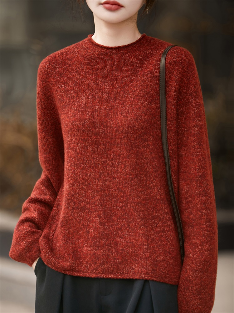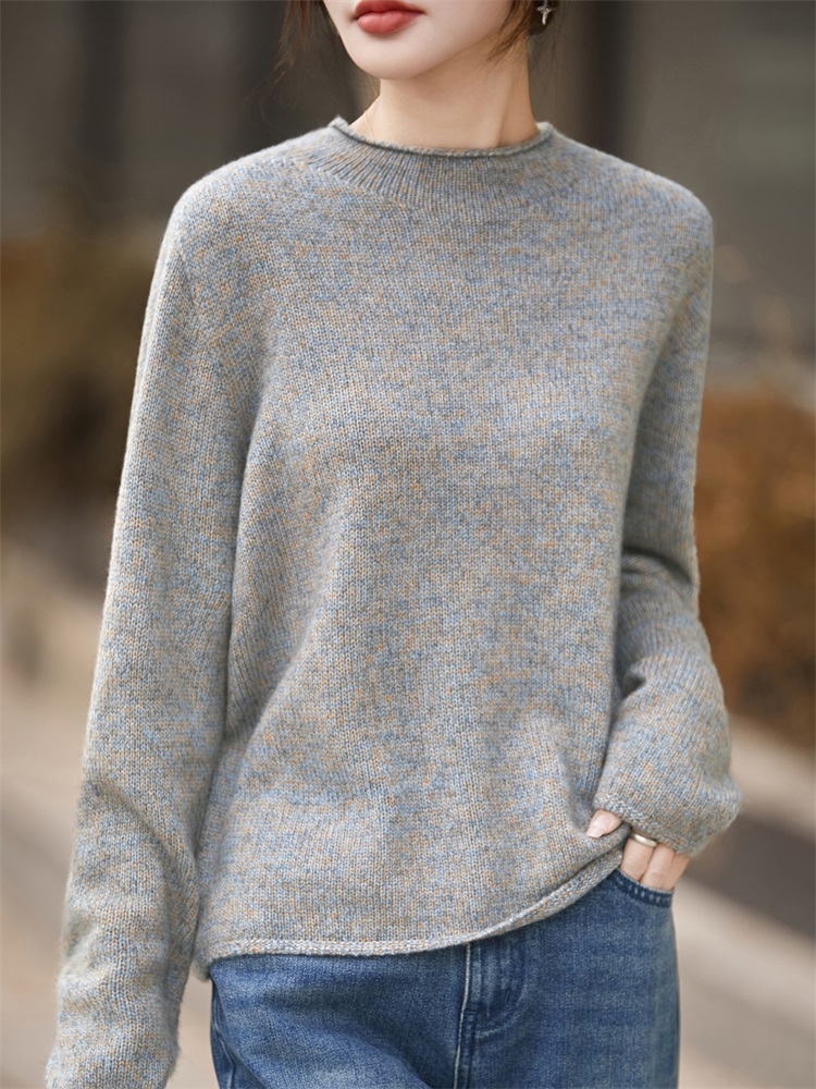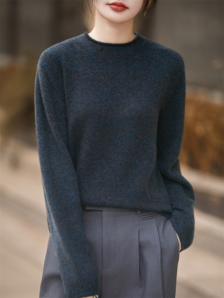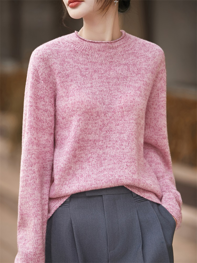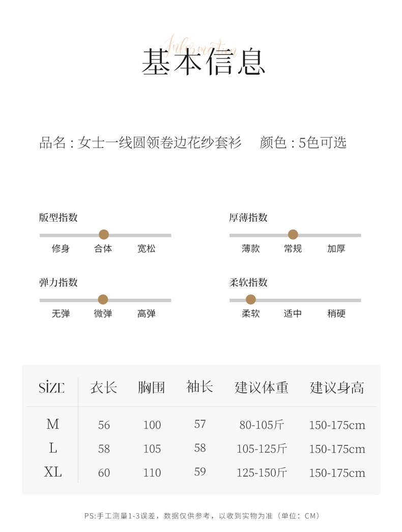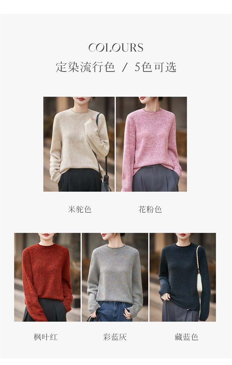 一线成衣~无缝圆领卷面花纱天丝羊绒套衫女上衣