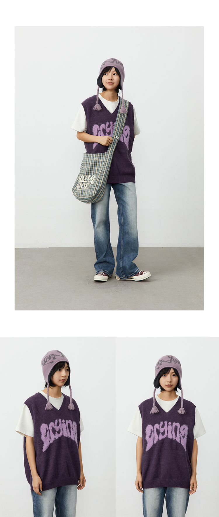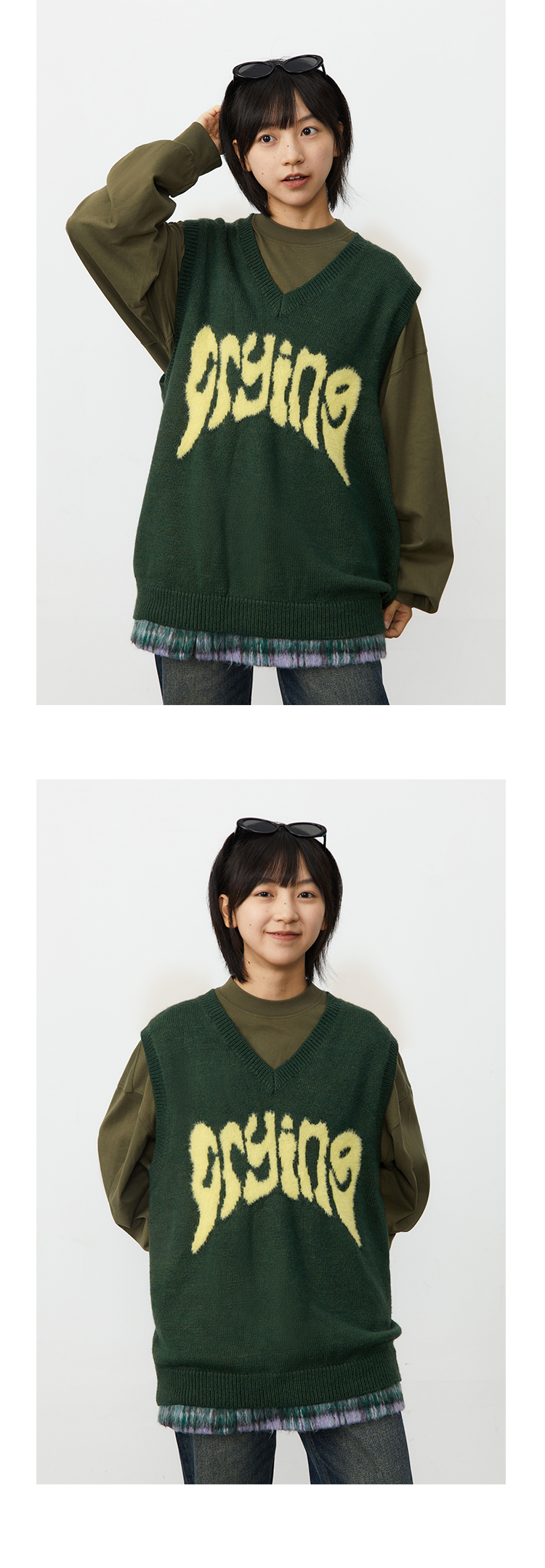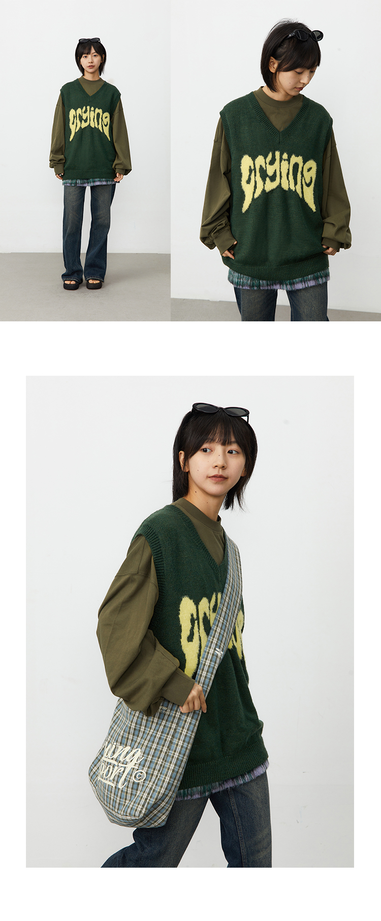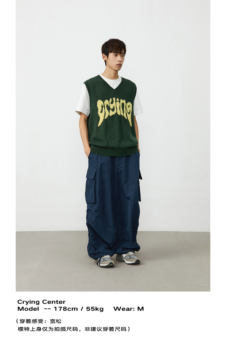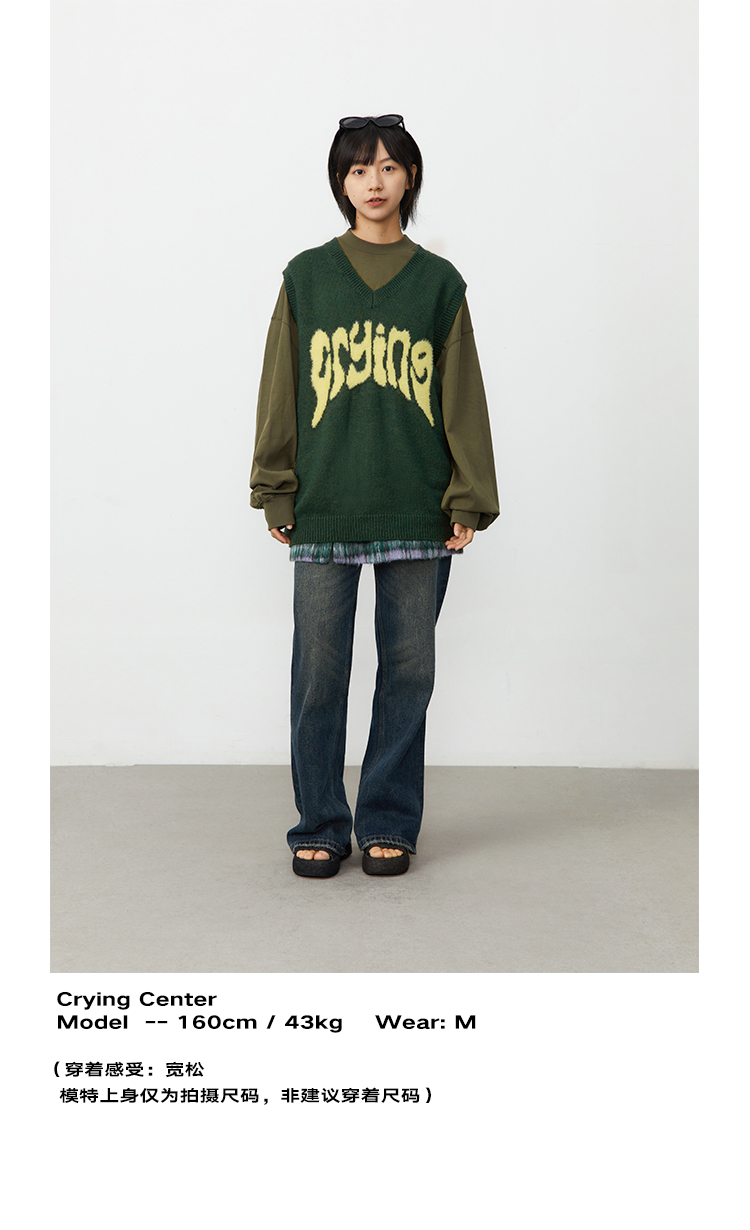 CryingCenter 字体背心马甲毛衣叠穿宽松百搭针织情侣 哭喊中心