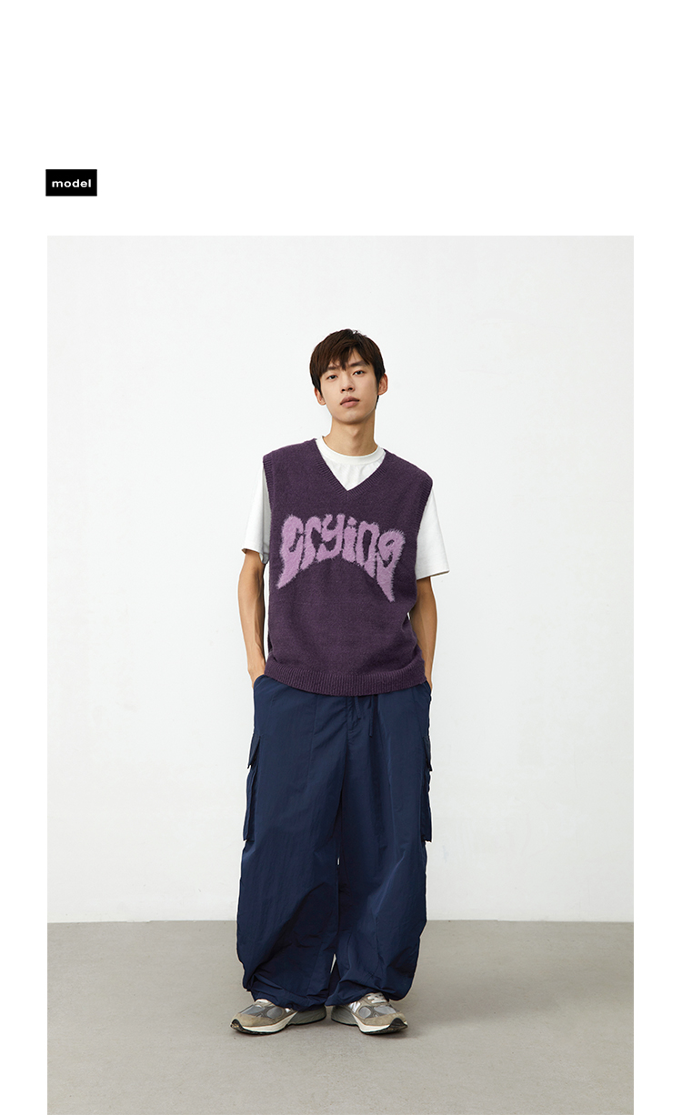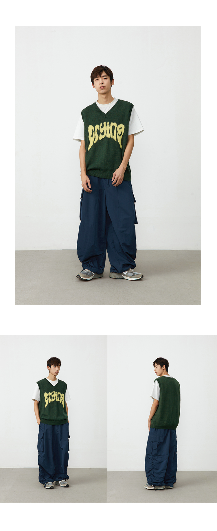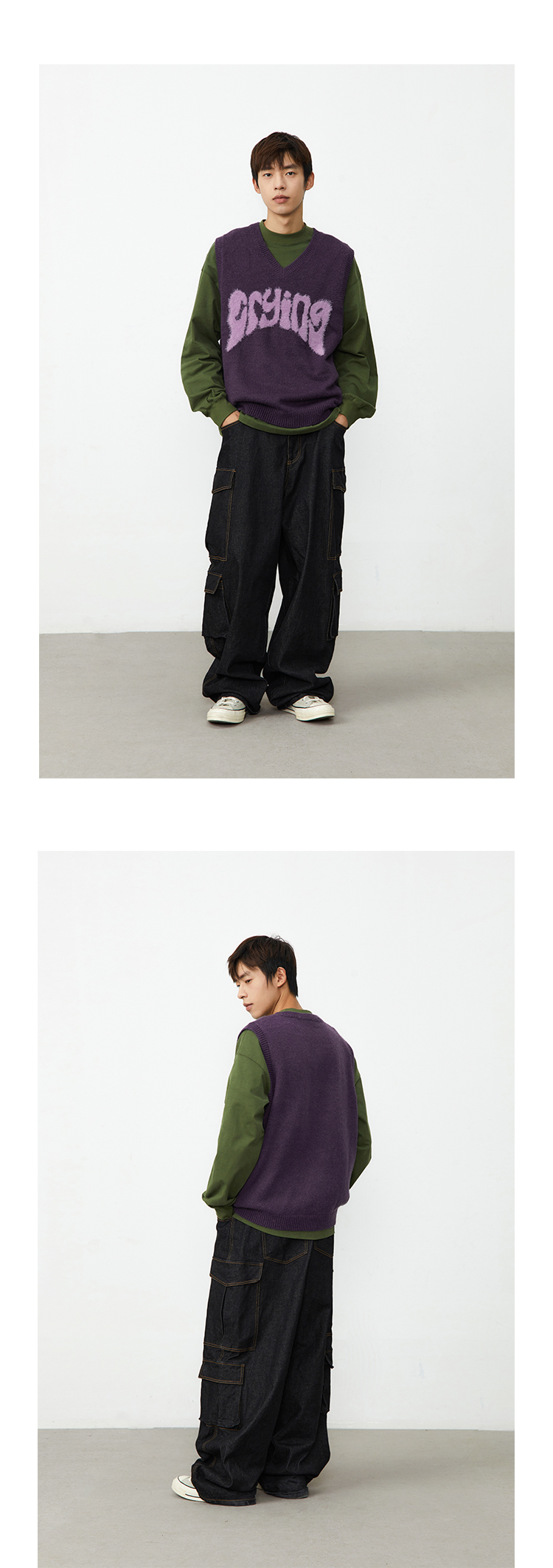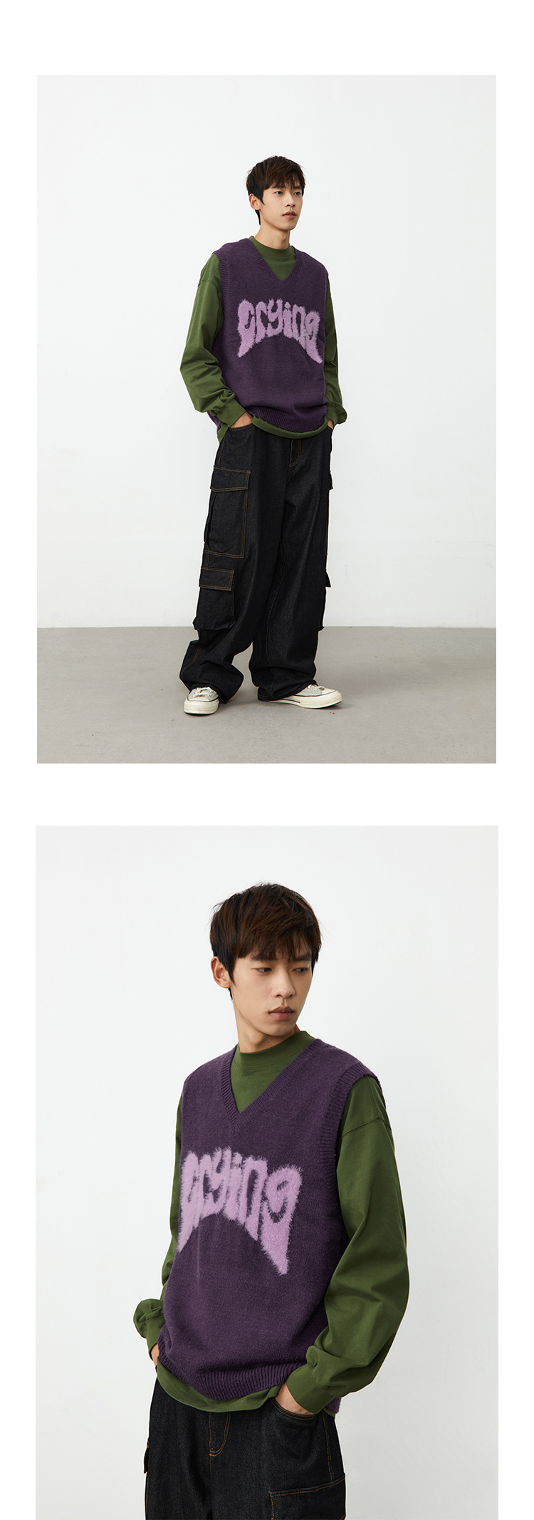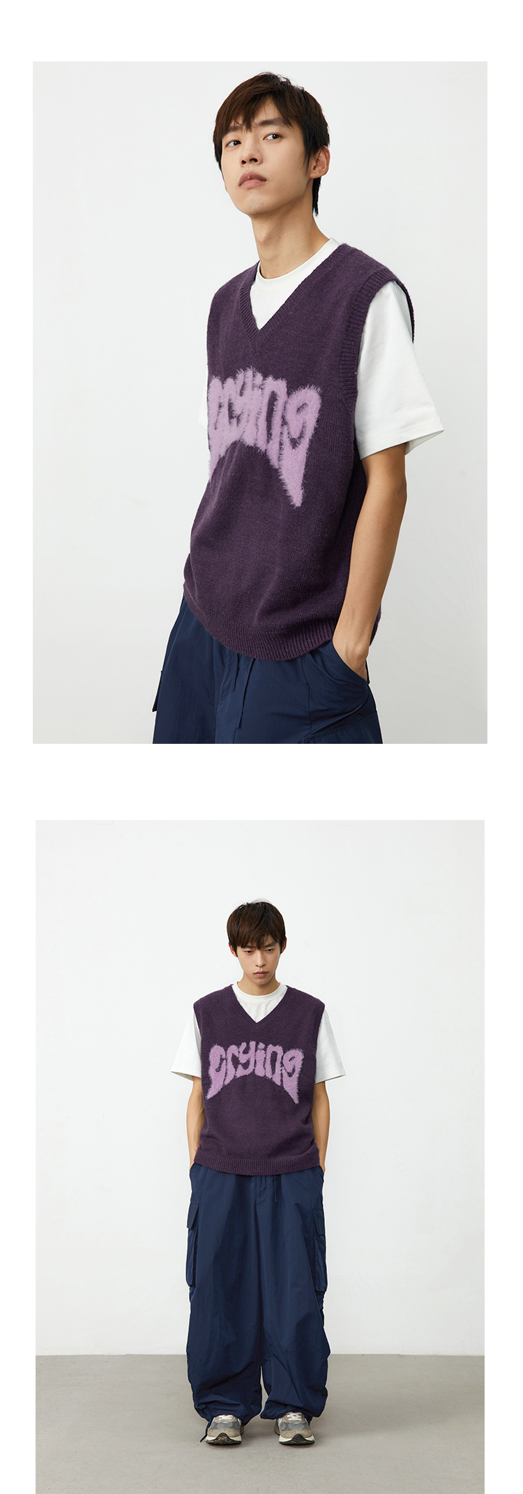 CryingCenter 字体背心马甲毛衣叠穿宽松百搭针织情侣 哭喊中心