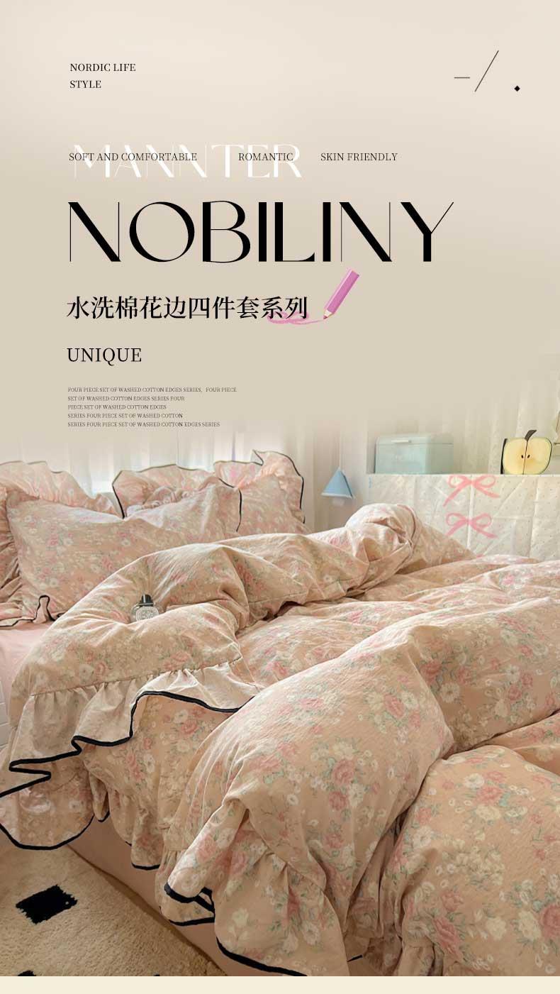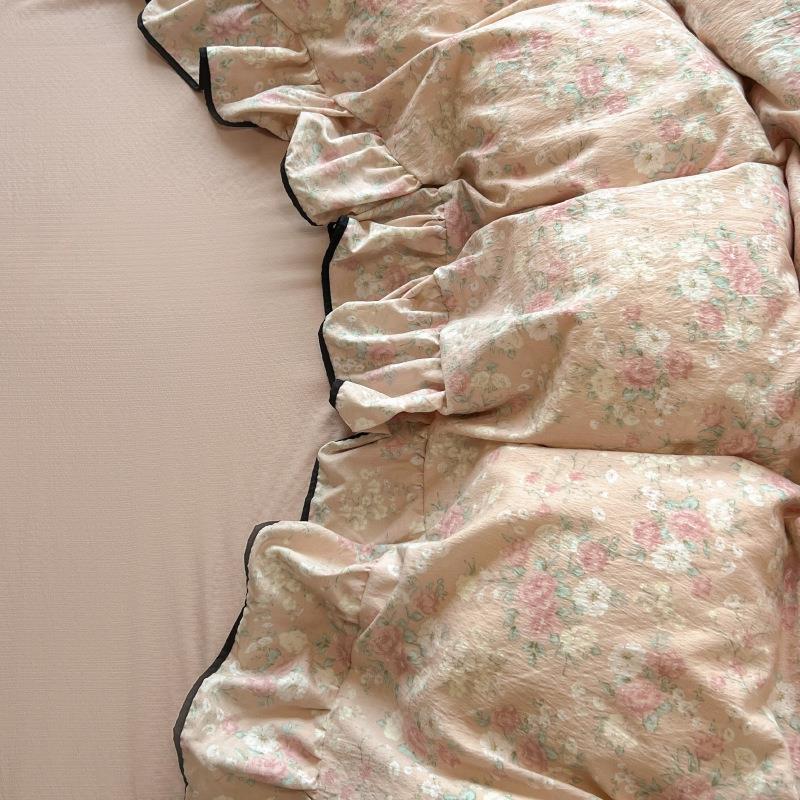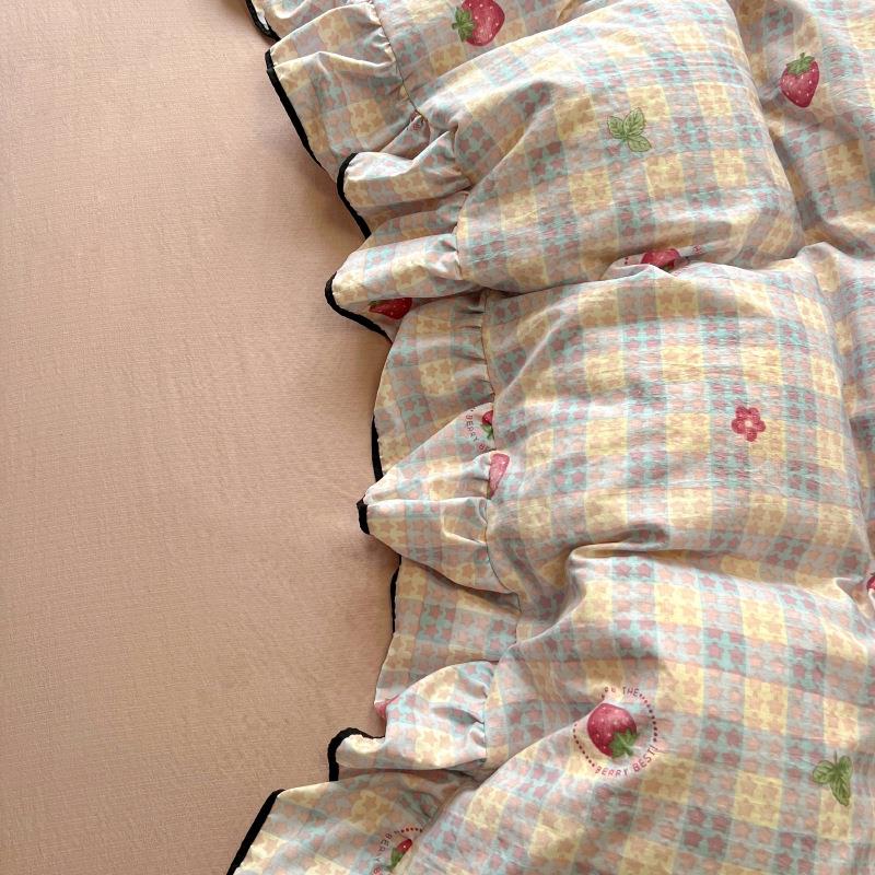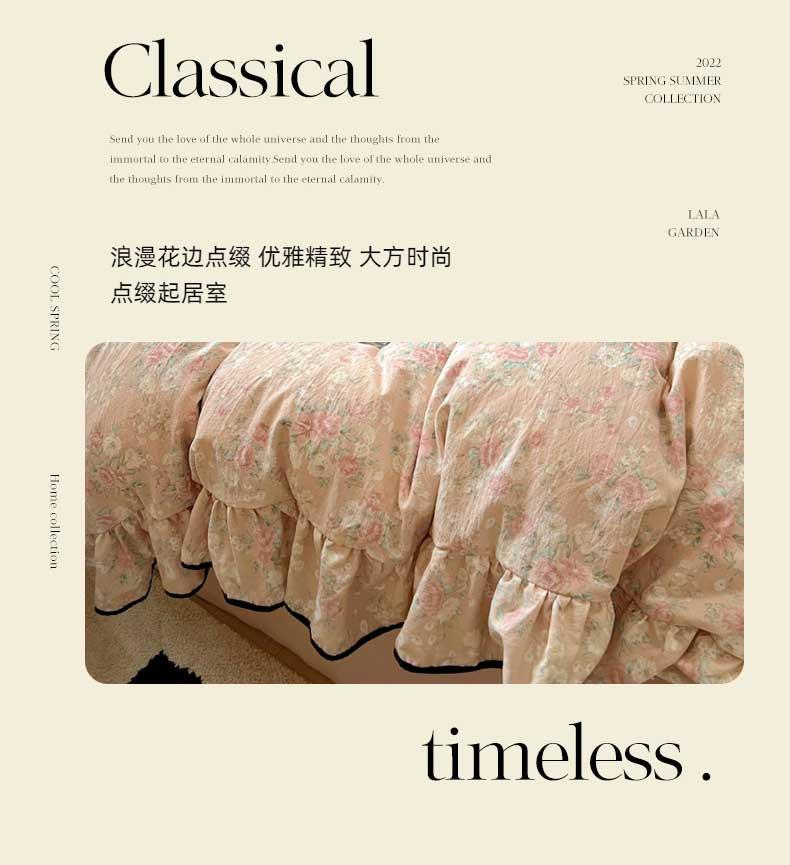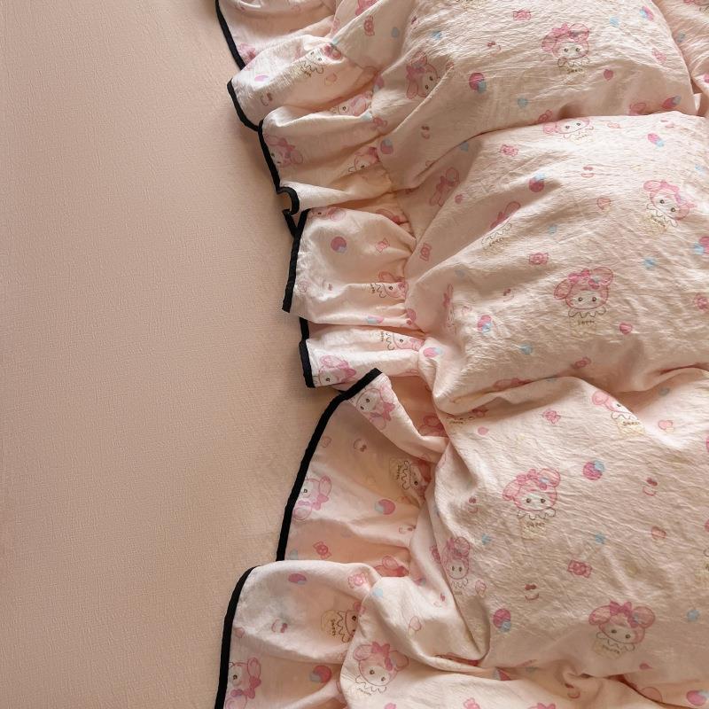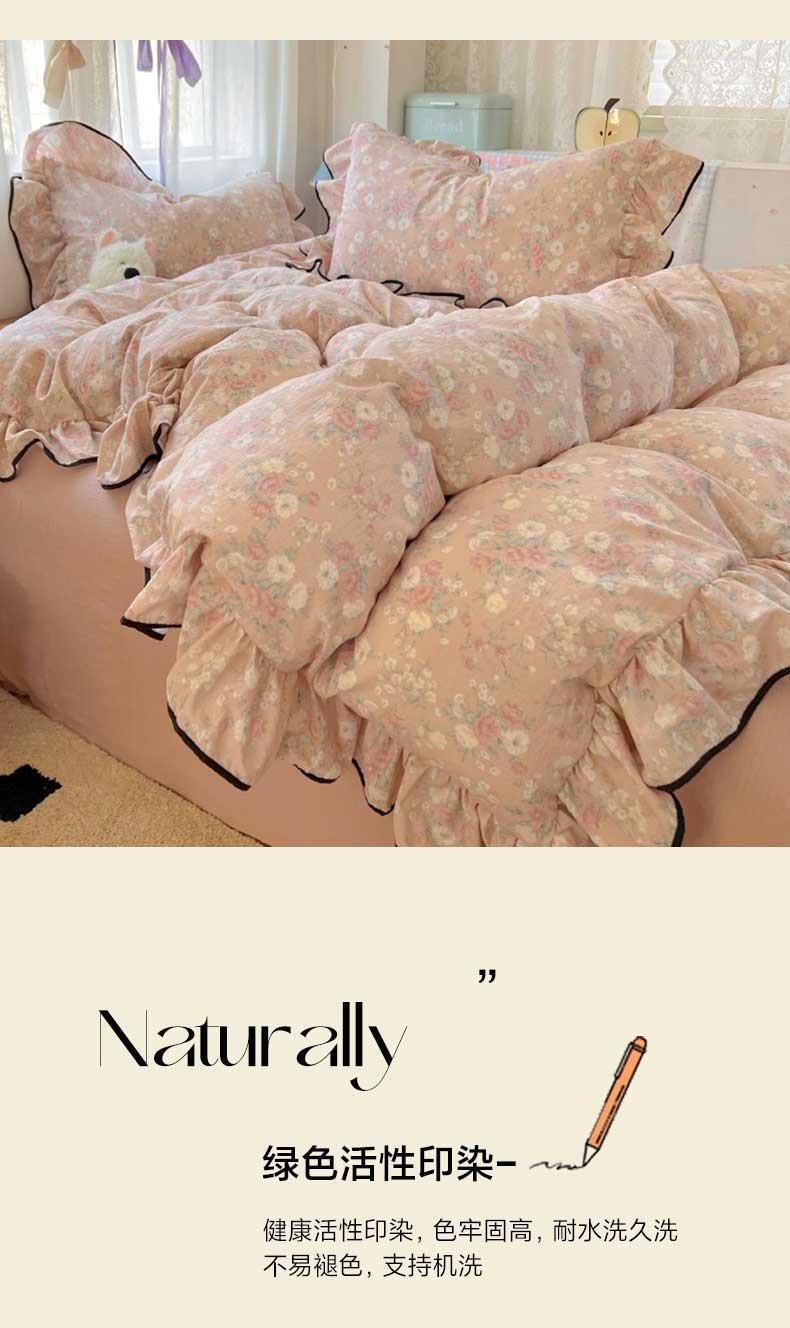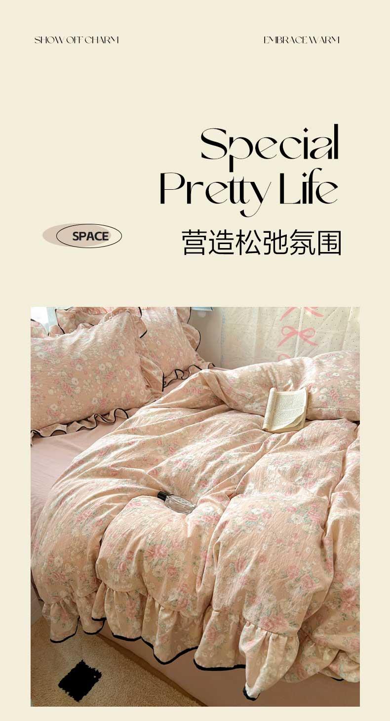 奶油花边少女粉格韩版床上四件套水洗棉双层纱被套宿舍三件套床笠