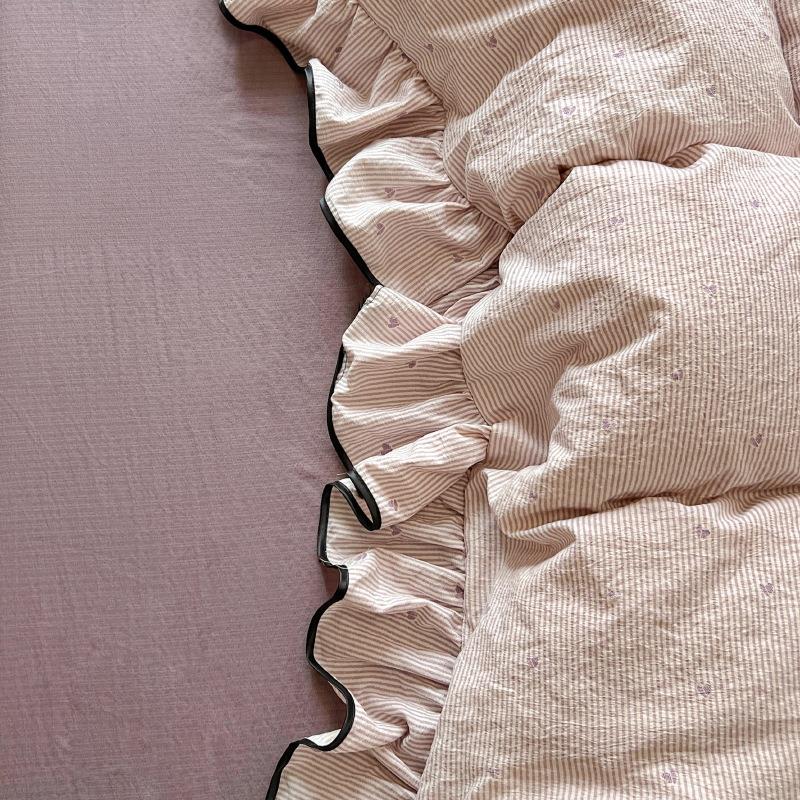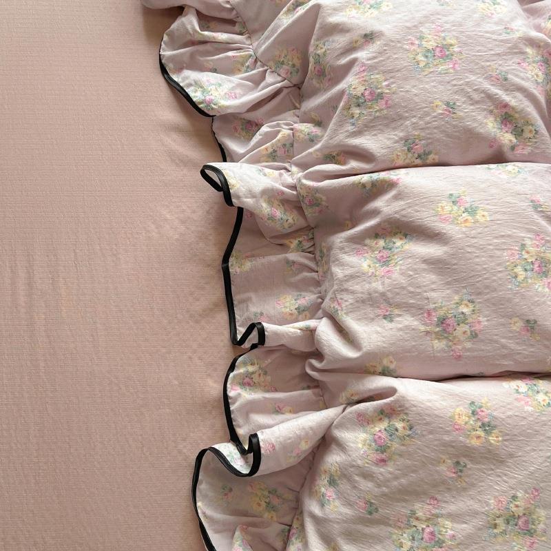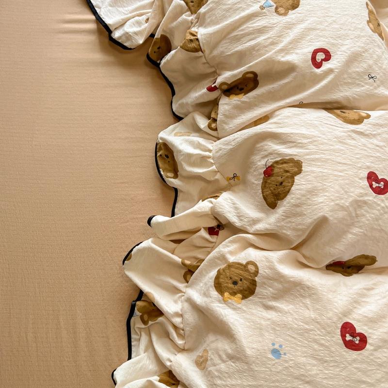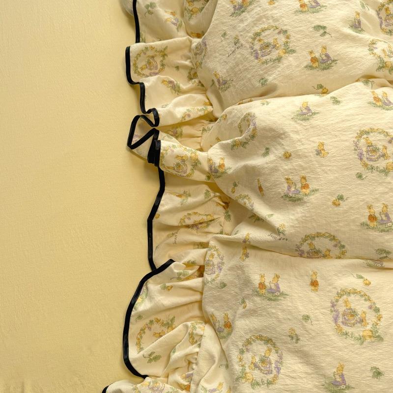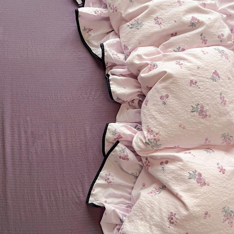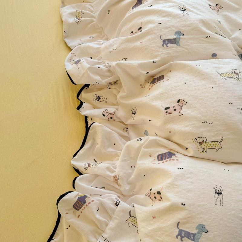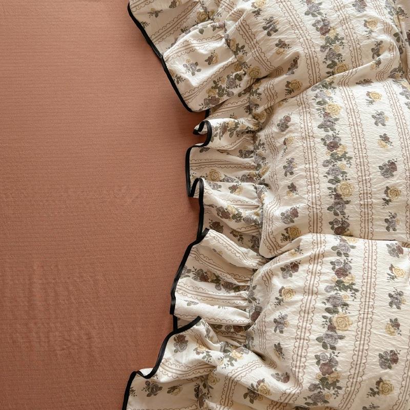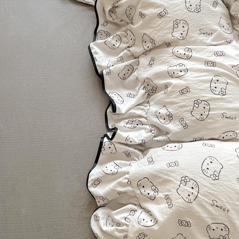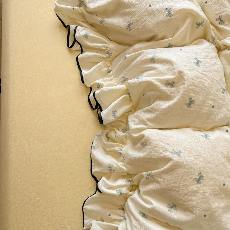 奶油花边少女粉格韩版床上四件套水洗棉双层纱被套宿舍三件套床笠