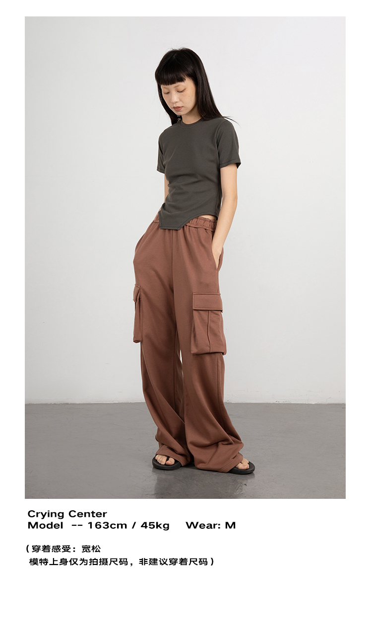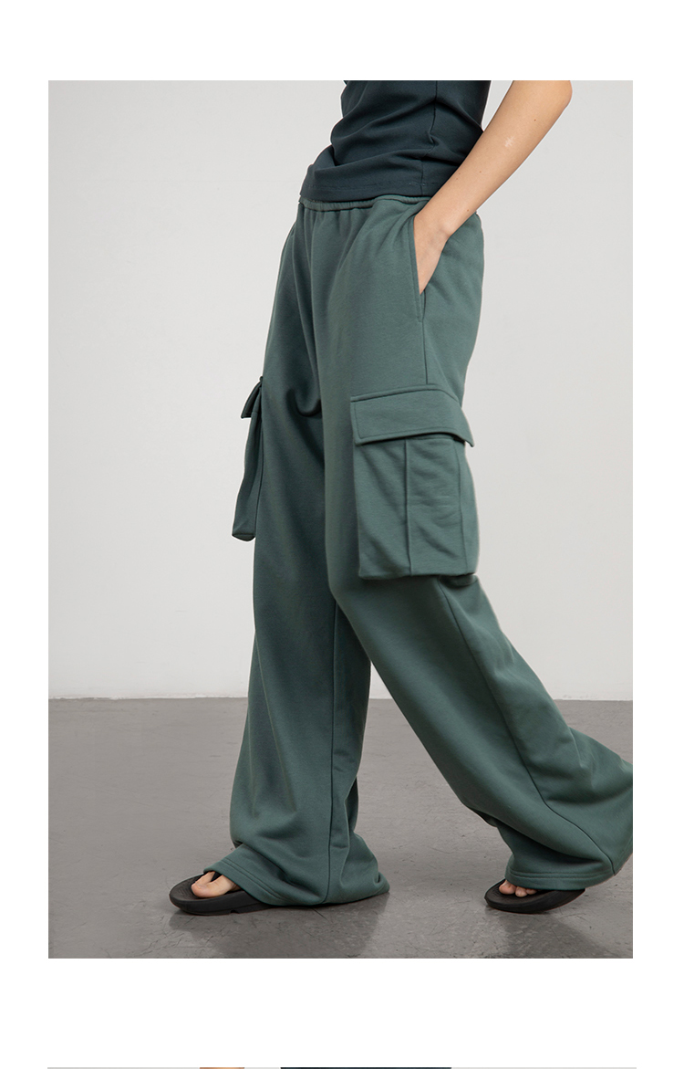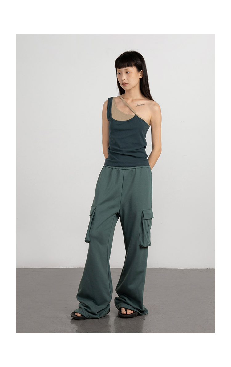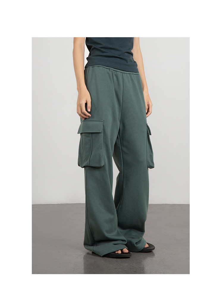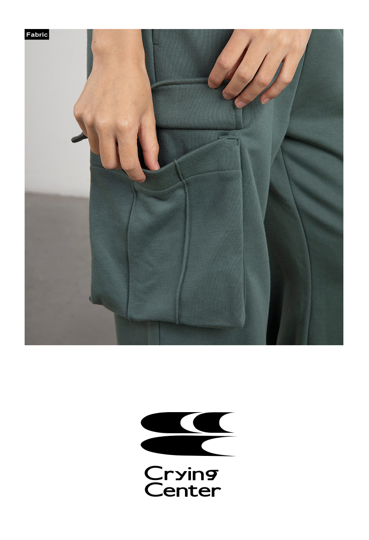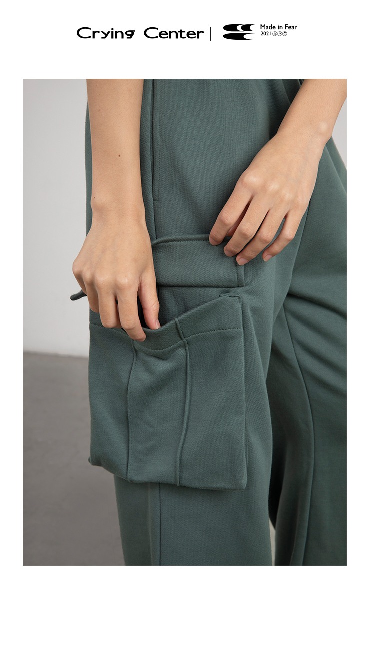 CryingCenter 砖粉灰绿 慵懒低腰针织工装口袋拖地长裤