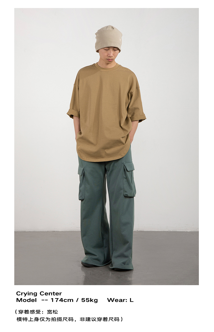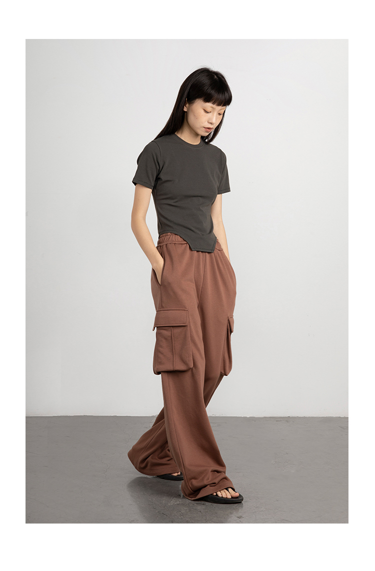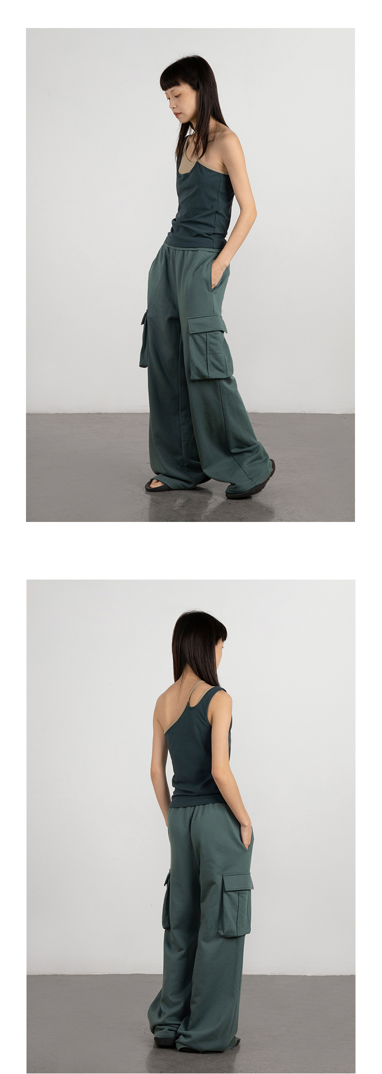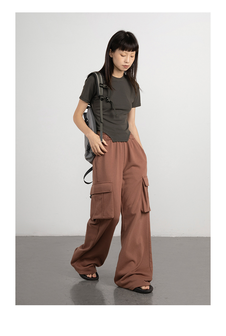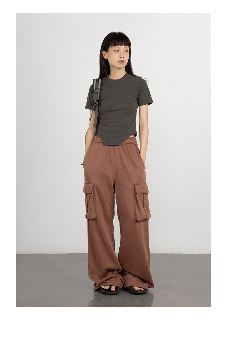 CryingCenter 砖粉灰绿 慵懒低腰针织工装口袋拖地长裤