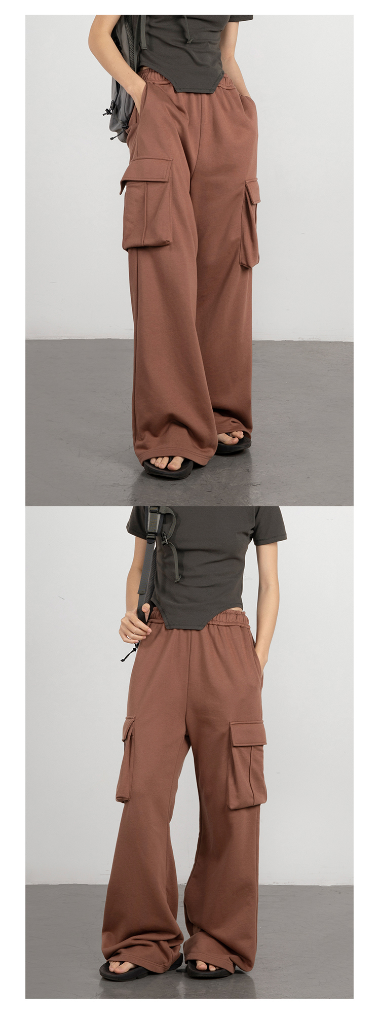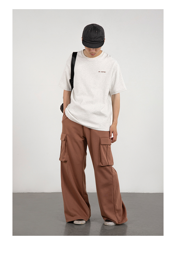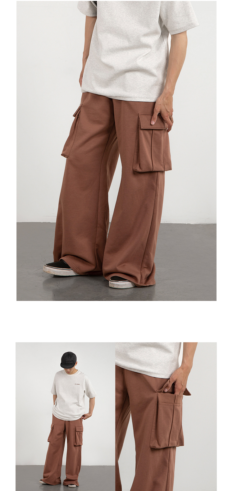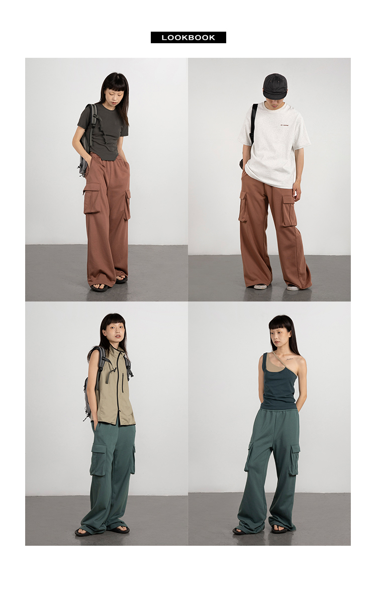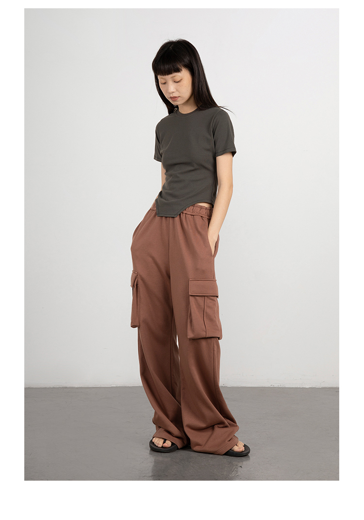 CryingCenter 砖粉灰绿 慵懒低腰针织工装口袋拖地长裤