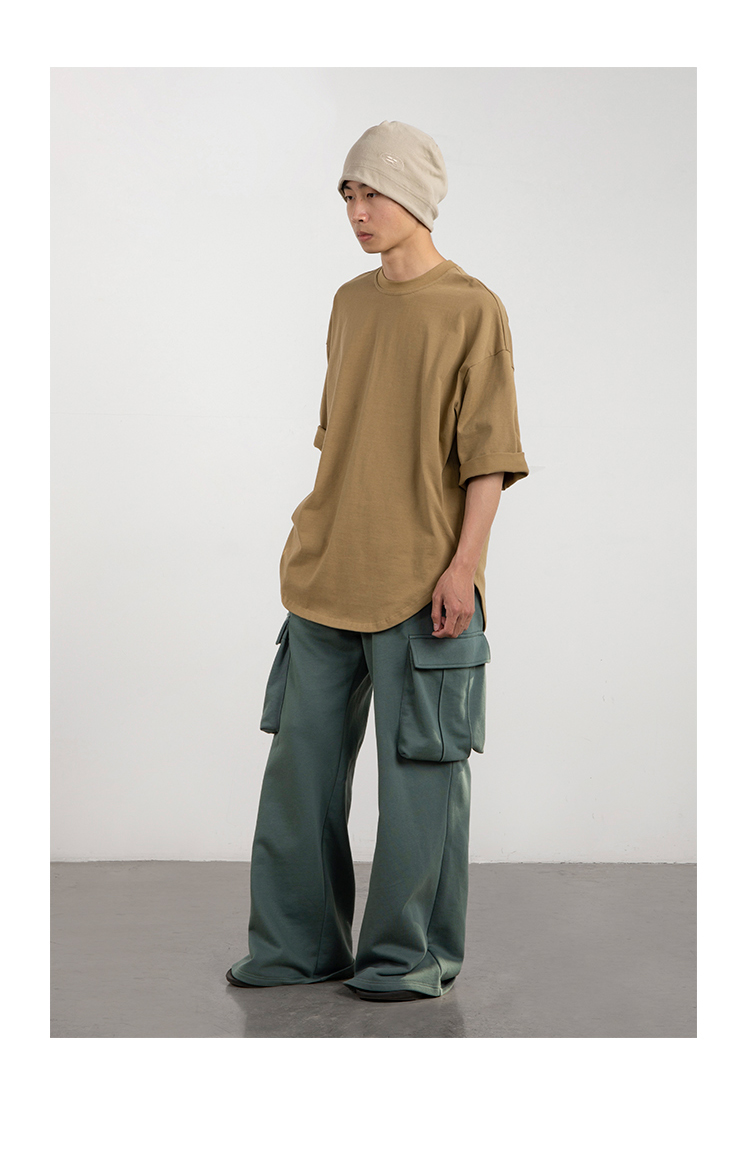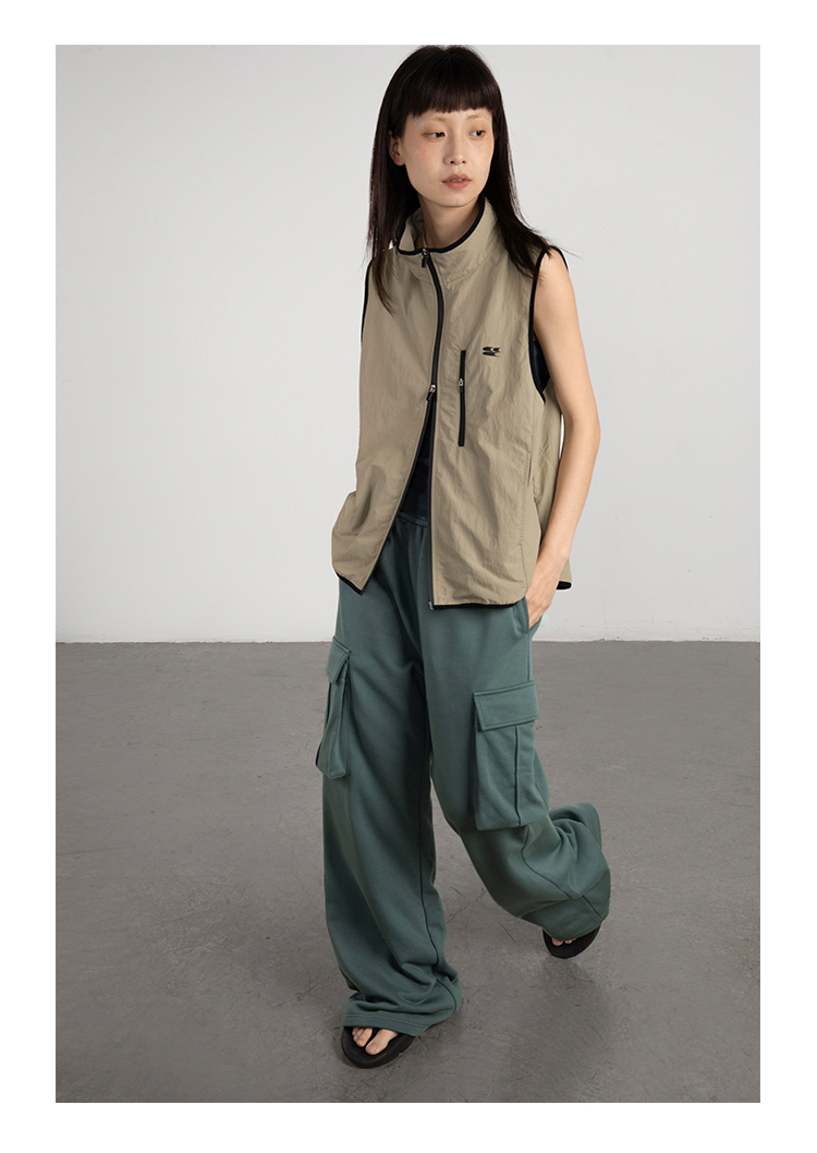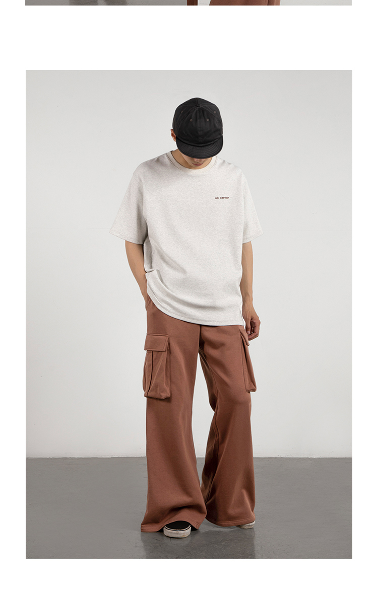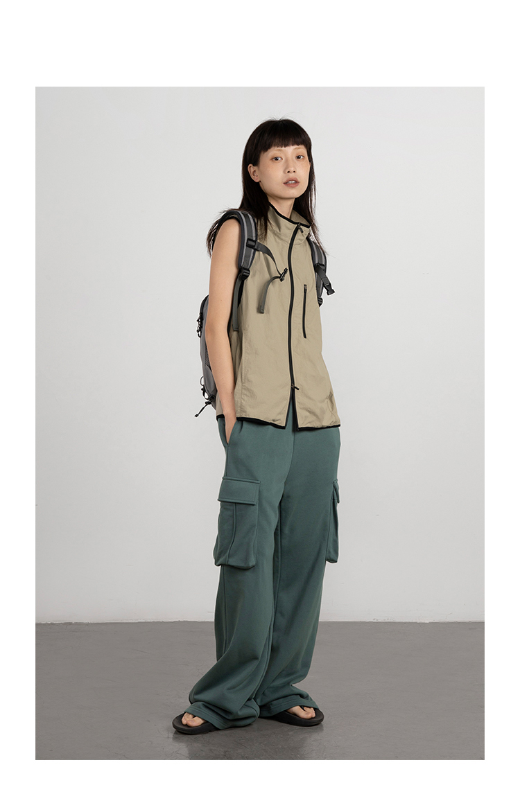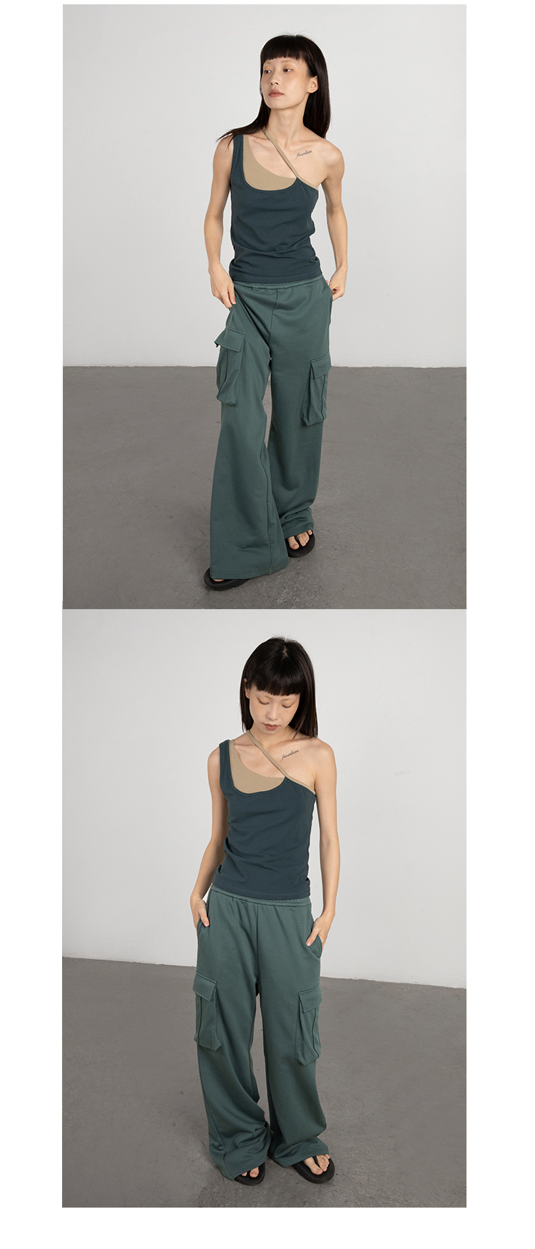 CryingCenter 砖粉灰绿 慵懒低腰针织工装口袋拖地长裤