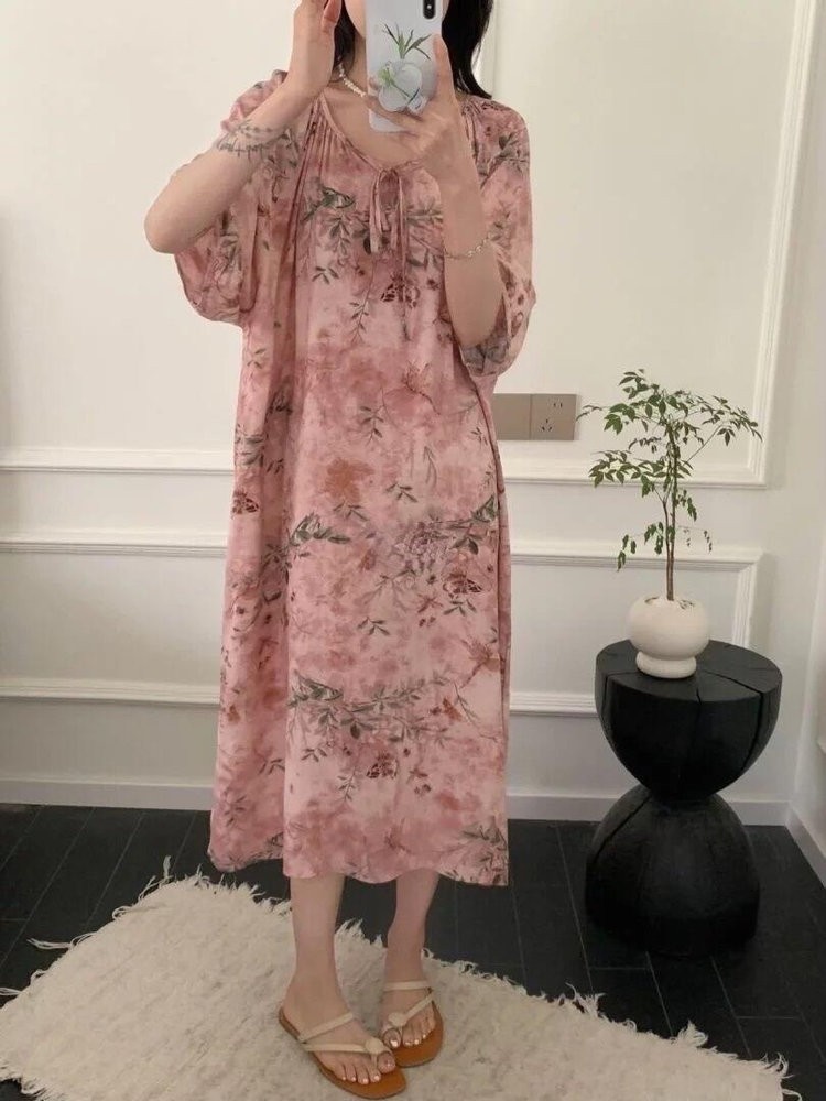 强烈推荐!超~舒服~凉快的睡裙!【超值2件!单拍不发,加购2件到手69元】it hut 绵绸长裙 可居家可外穿 宽松舒适 7款花型可选