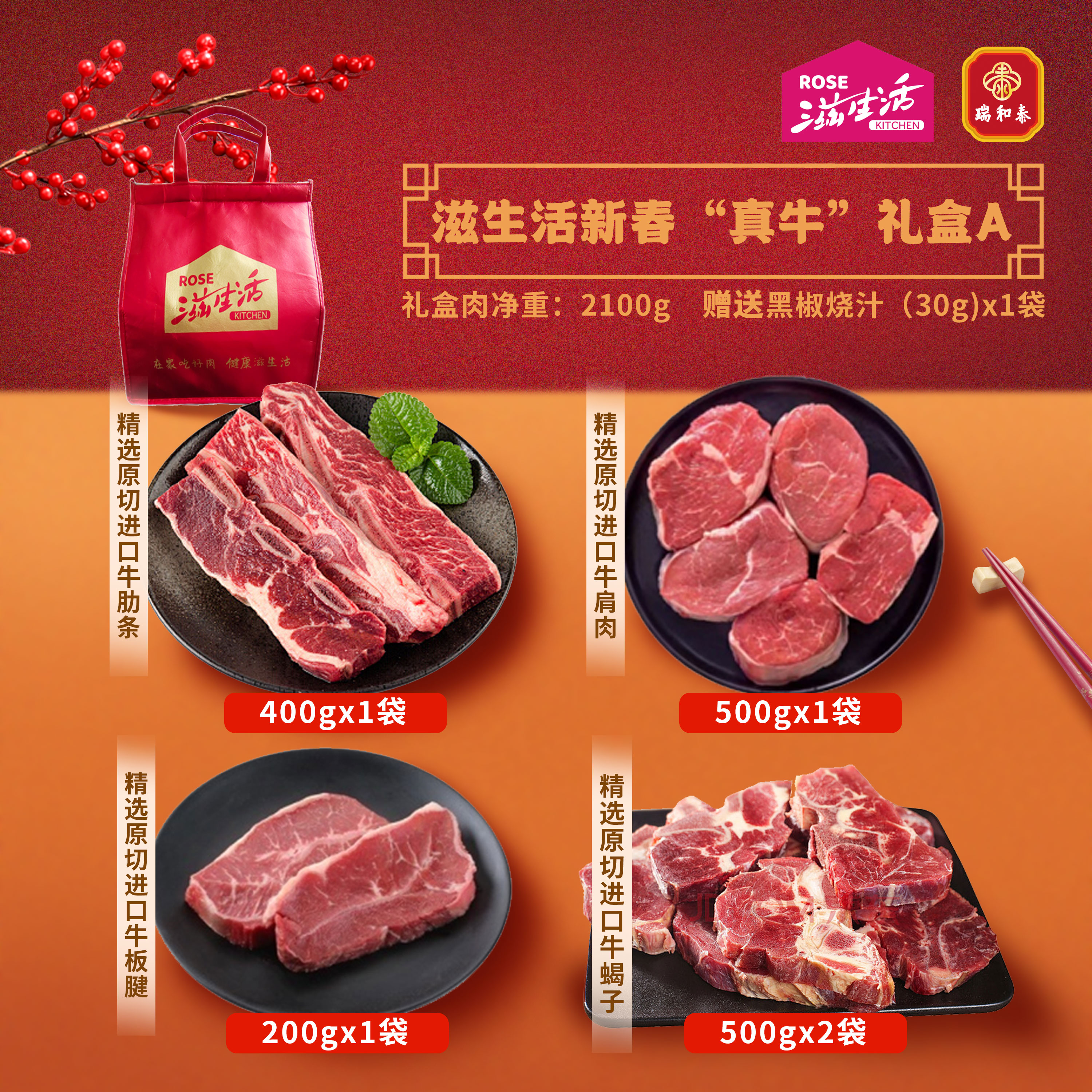 【直送到家】2100g滋生活新春“真牛”礼盒A 百分百原切好肉、O添加、0腌制 赠送30g黑椒烧汁1袋 冷链到家