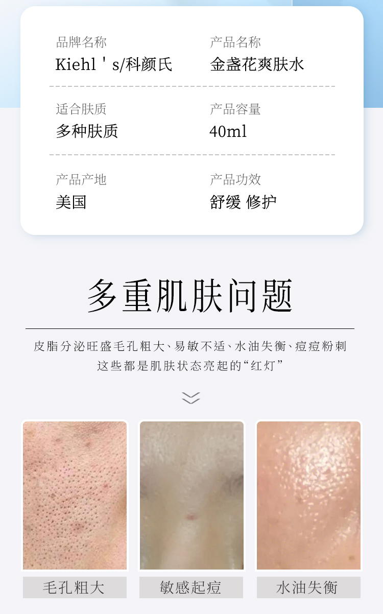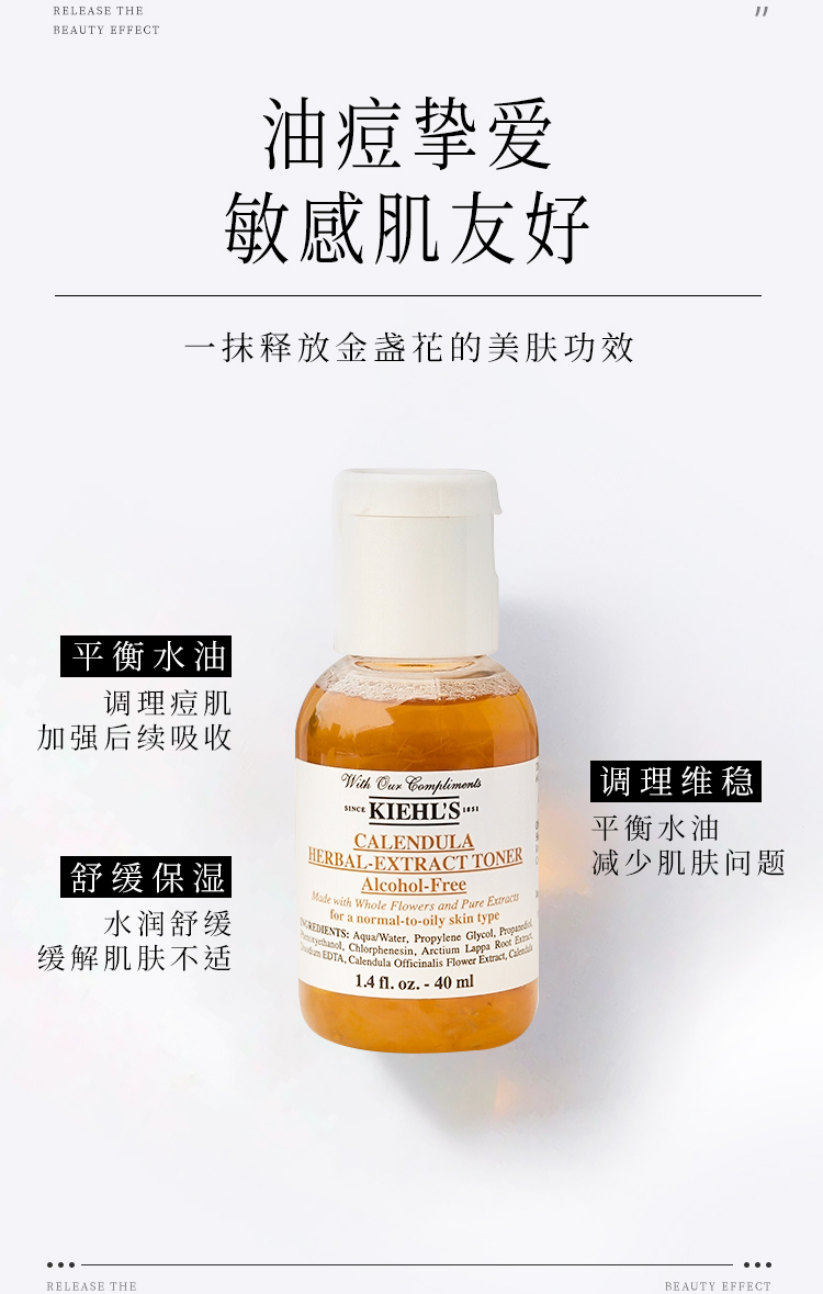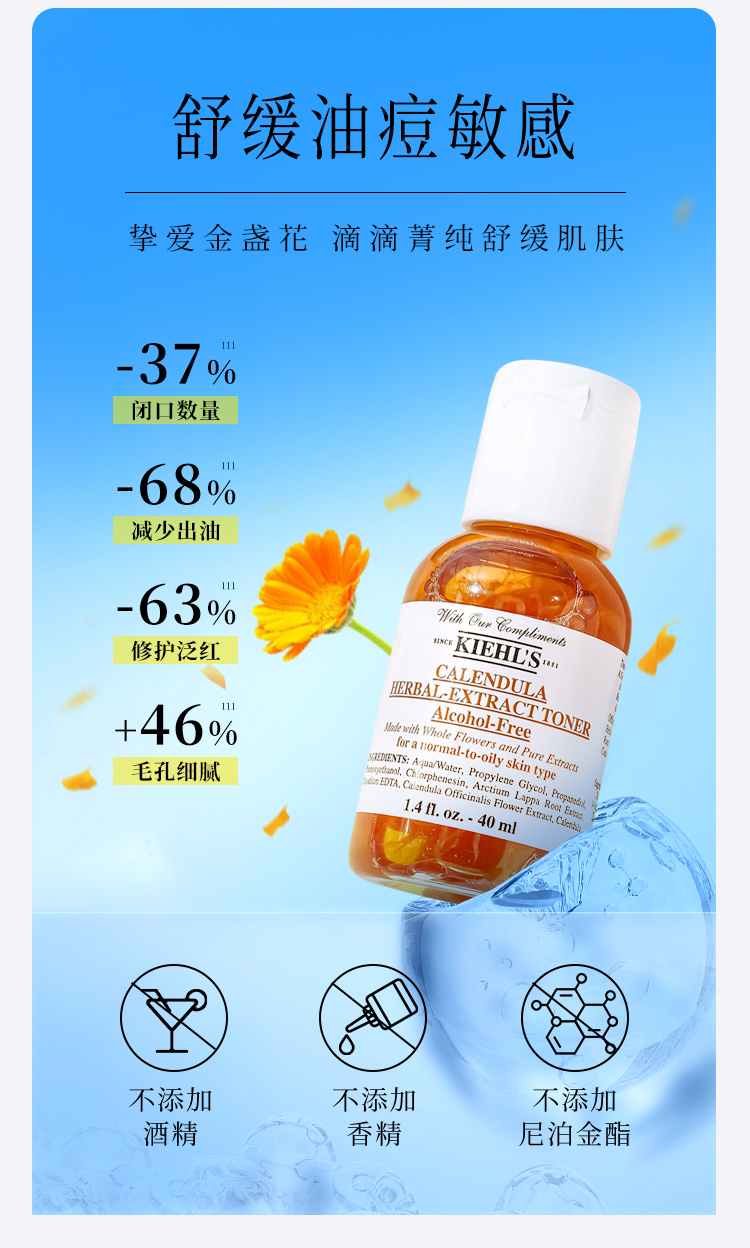 Kiehl's 科颜氏 金盏花植物精华水40ml/瓶(小样)*2【2027.9 此链接需单独下单】