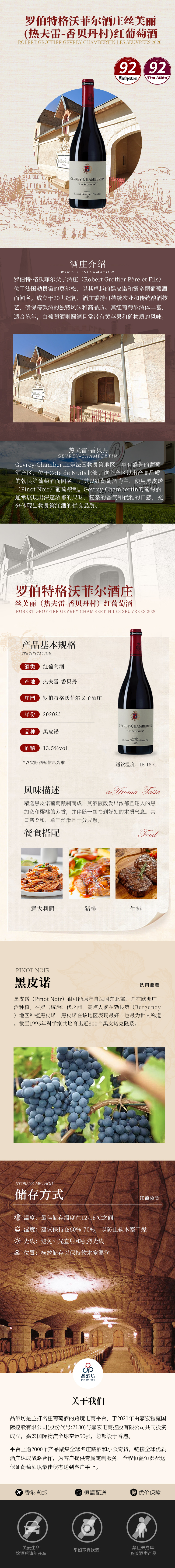 2020 Robert Groffier Gevrey Chambertin Les Seuvrees 罗伯特格沃菲尔酒庄丝芙丽(热夫雷-香贝丹村)红葡萄酒