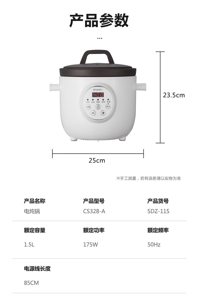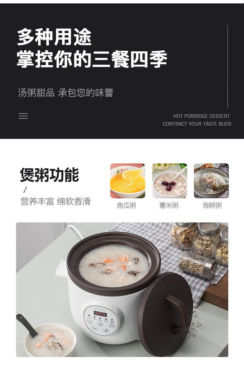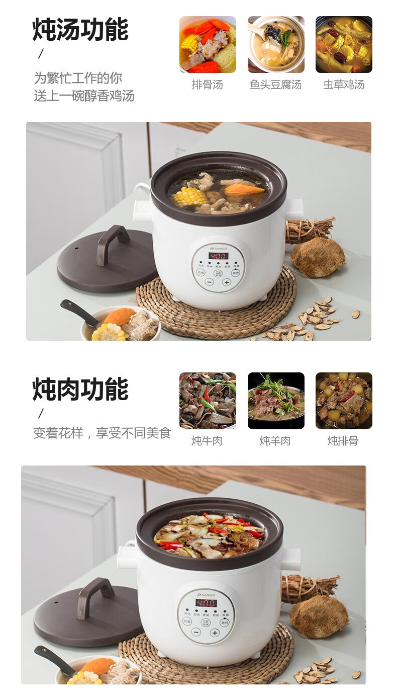 山水(SANSUI)电炖锅电炖盅1.5L迷你小型紫砂预约电砂锅SDZ-11S