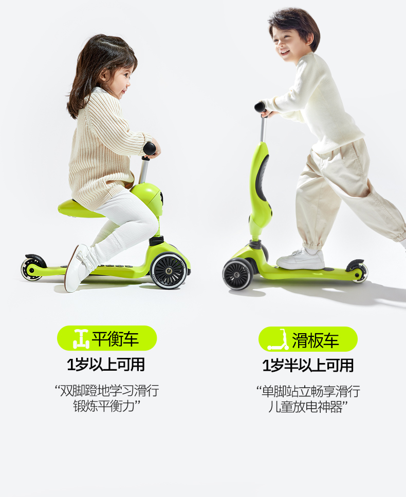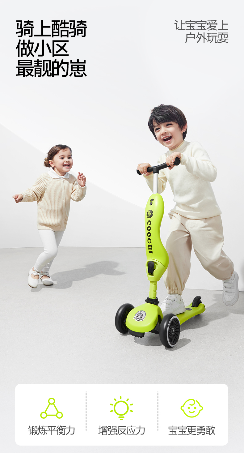 【新品上市】COOGHI酷骑小绿车滑板车二合一、三合一、六合一、单板V1