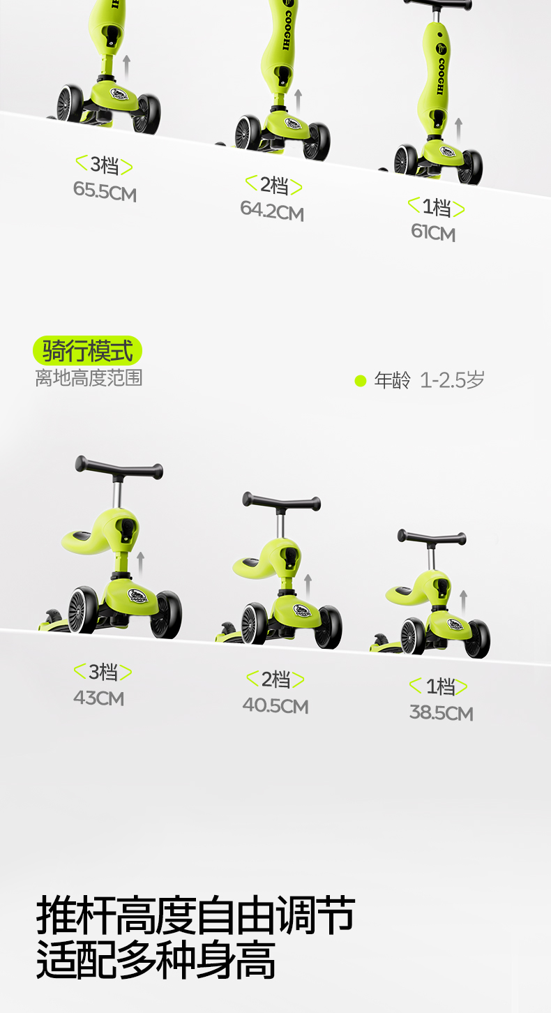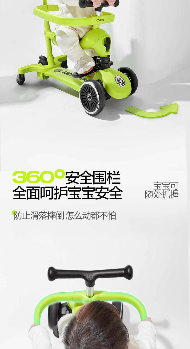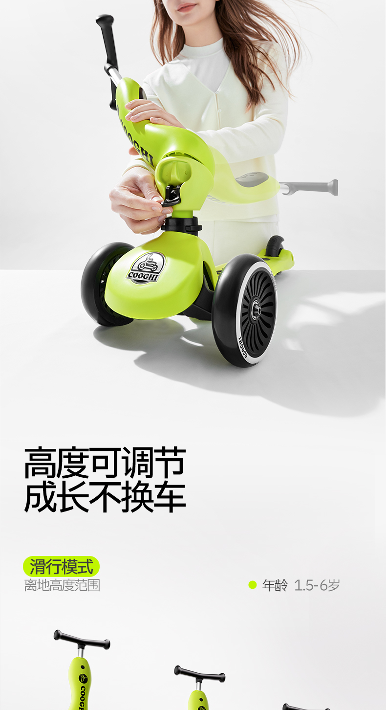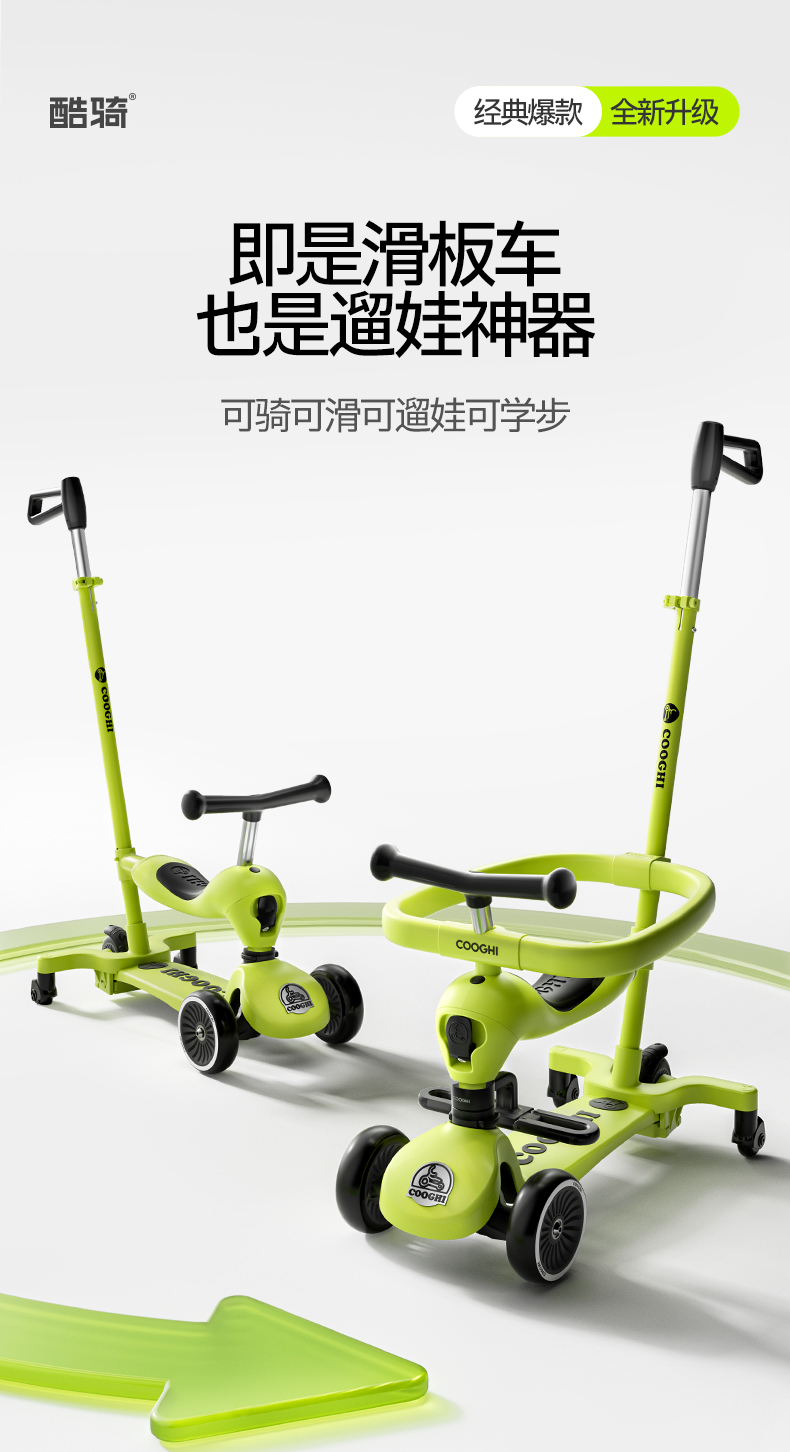 【新品上市】COOGHI酷骑小绿车滑板车二合一、三合一、六合一