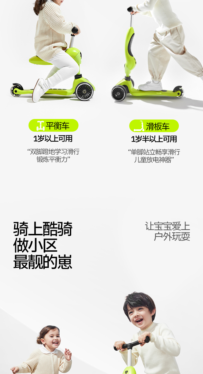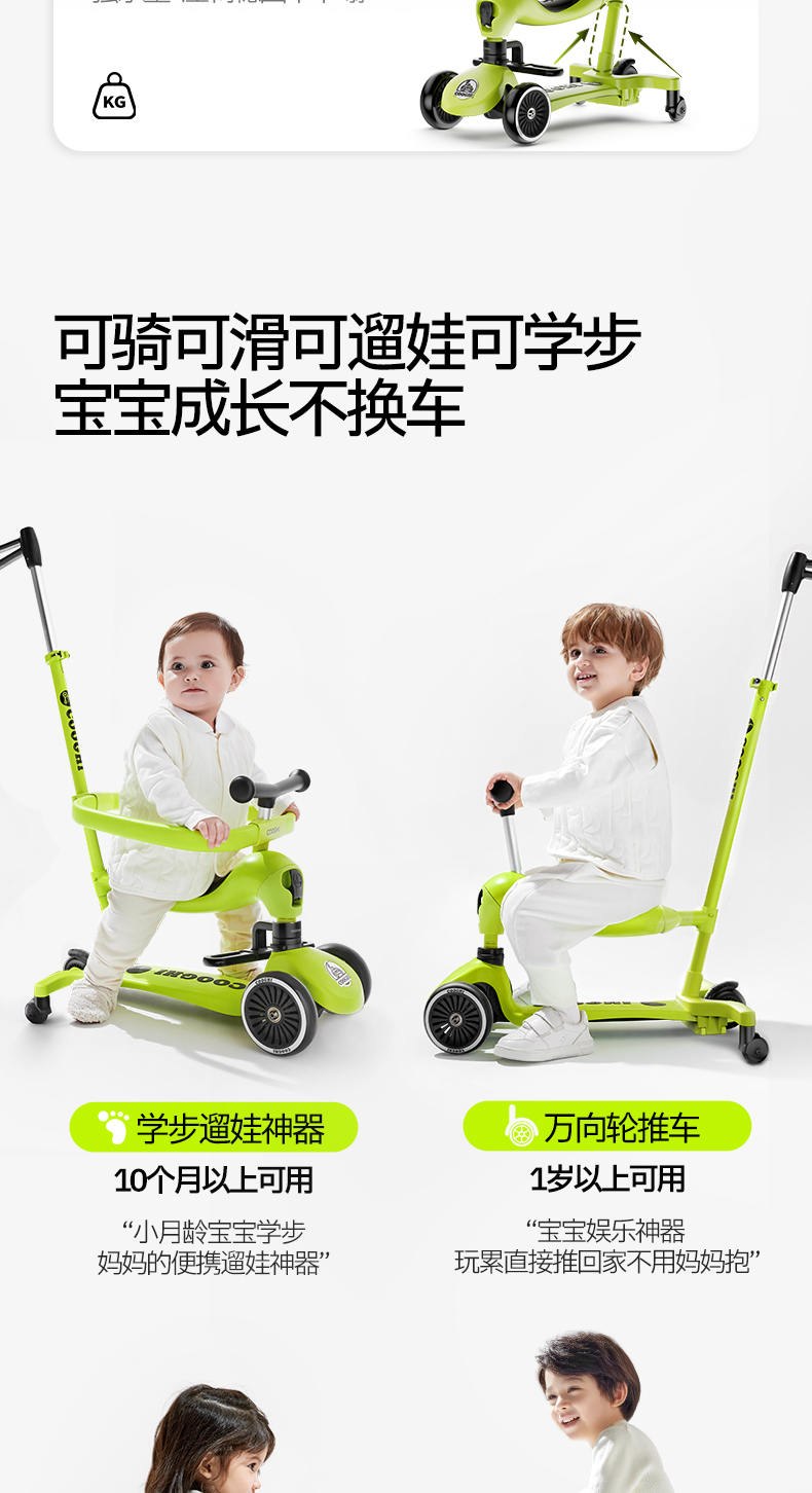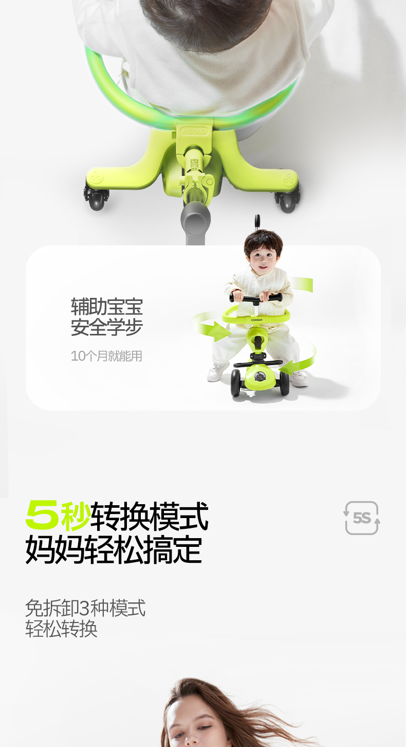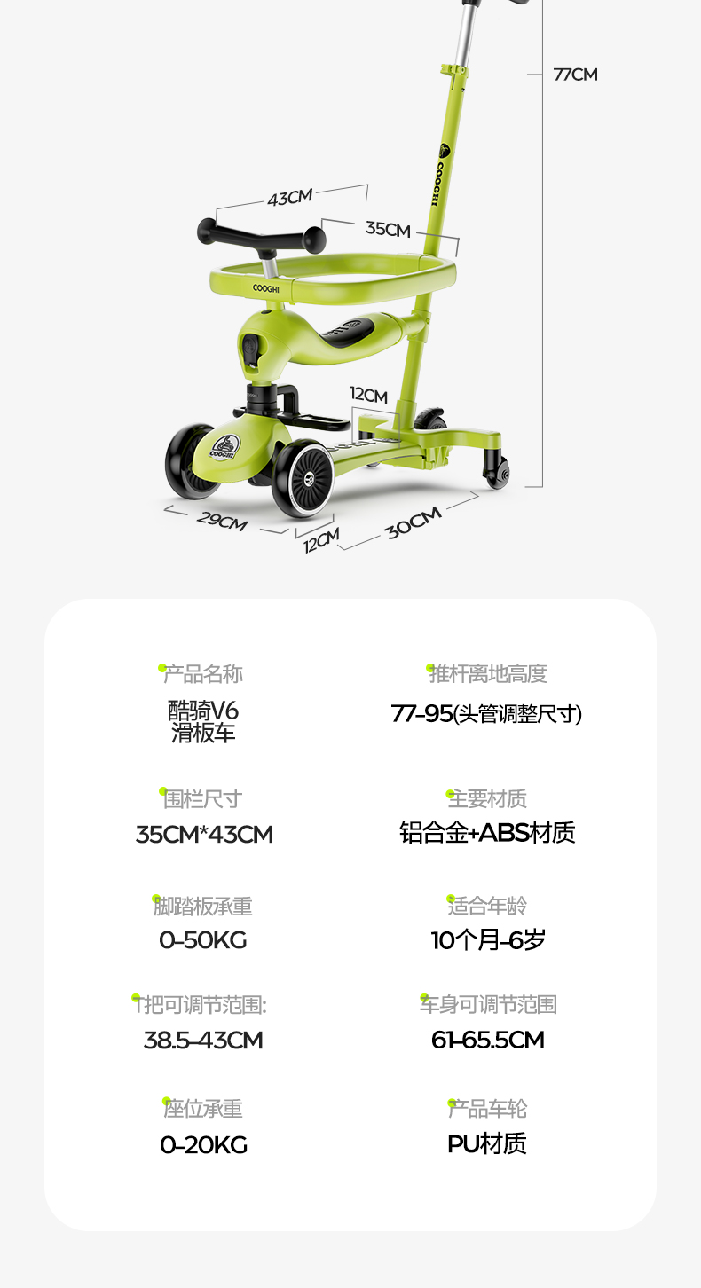 【新品上市】COOGHI酷骑小绿车滑板车二合一、三合一、六合一