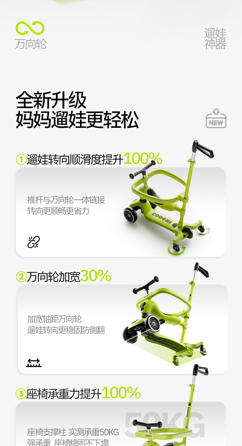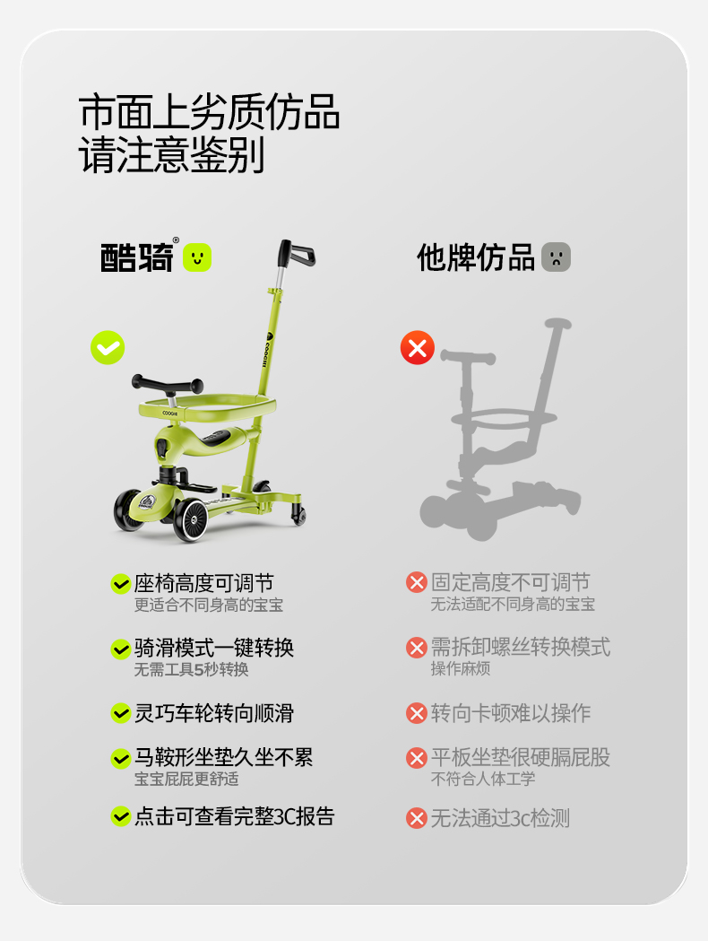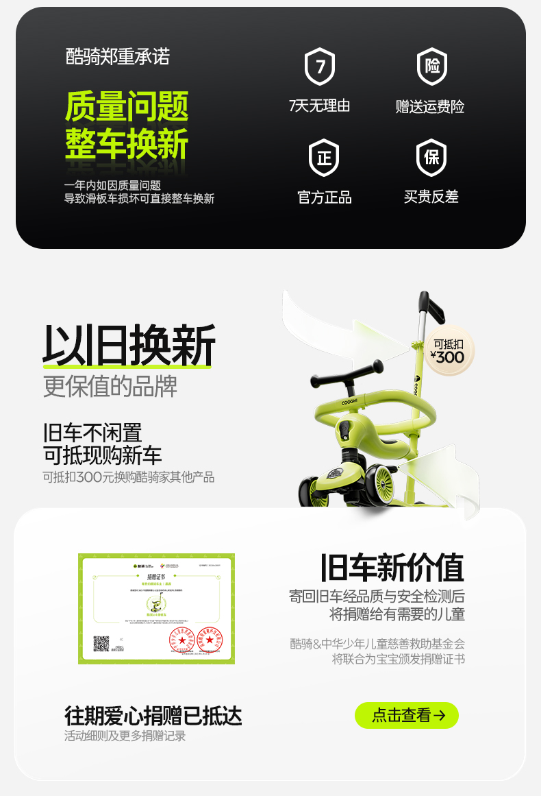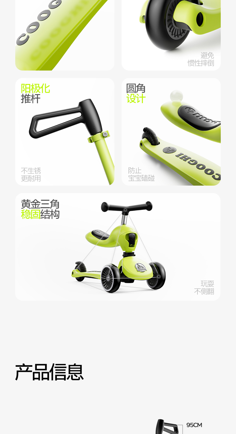 【新品上市】COOGHI酷骑小绿车滑板车二合一、三合一、六合一