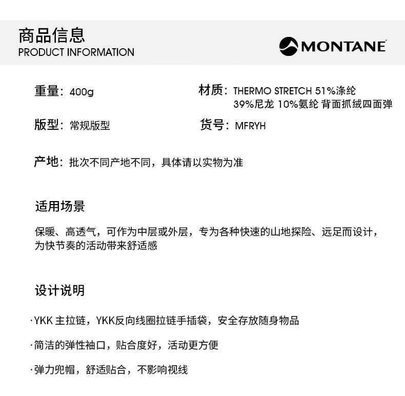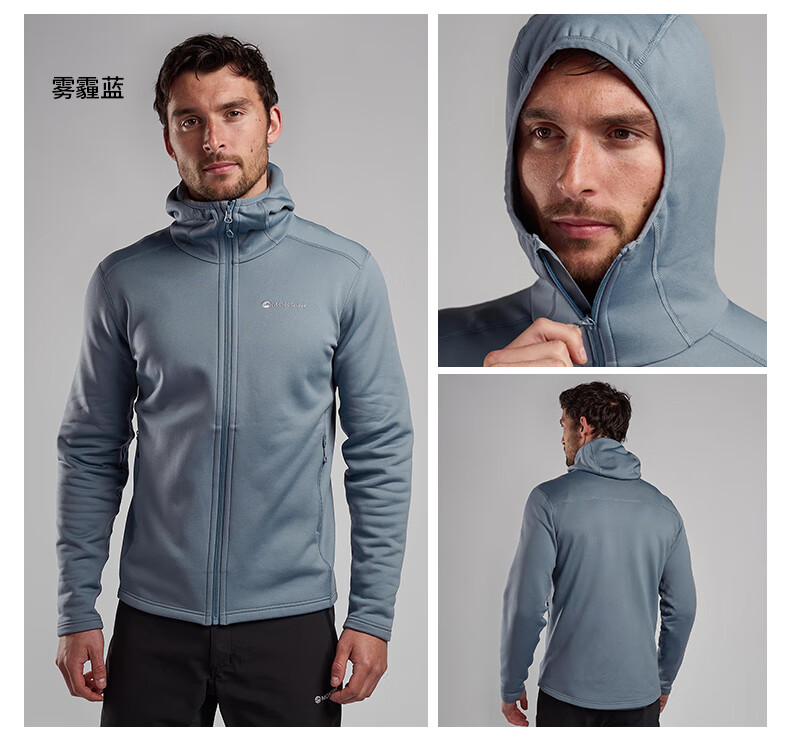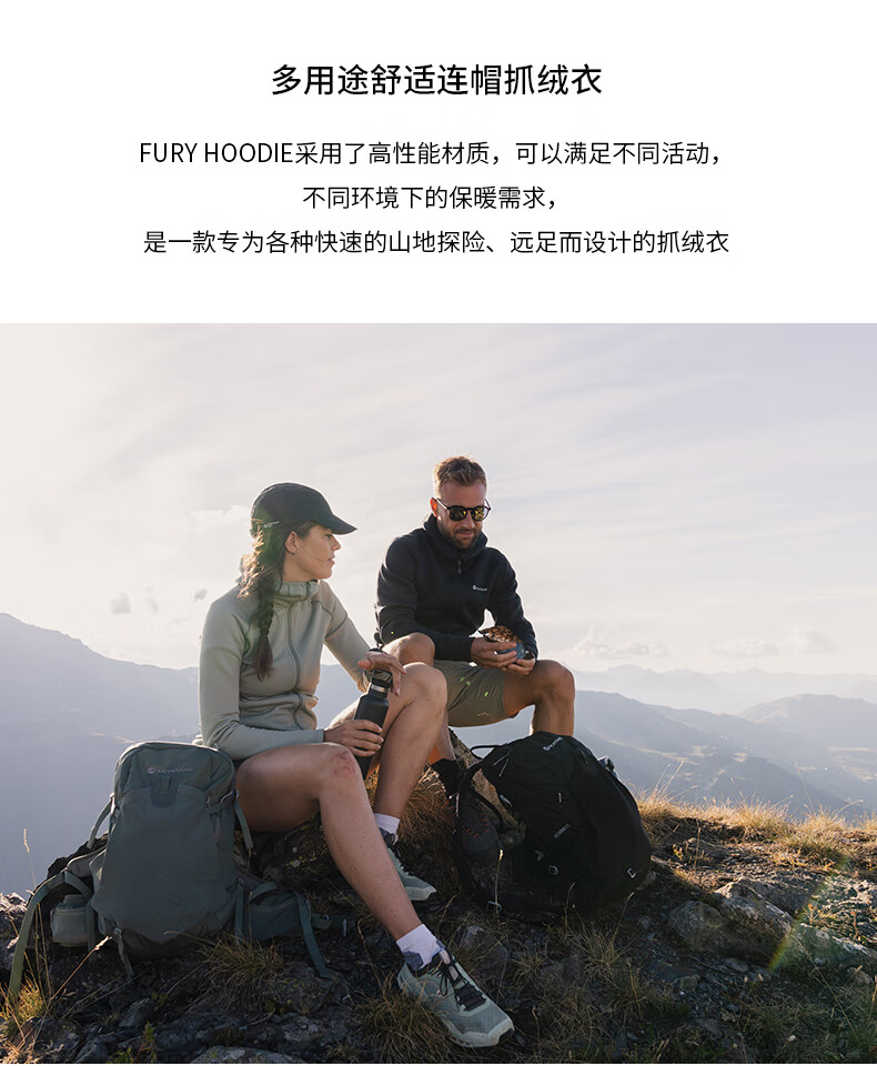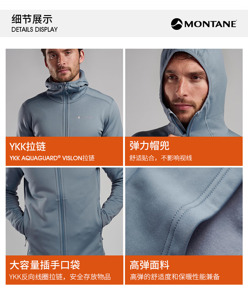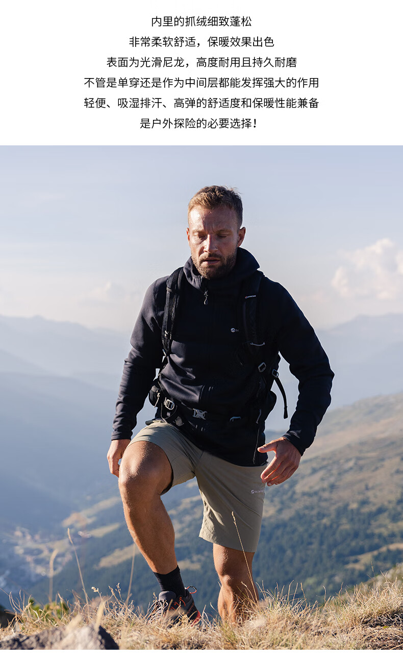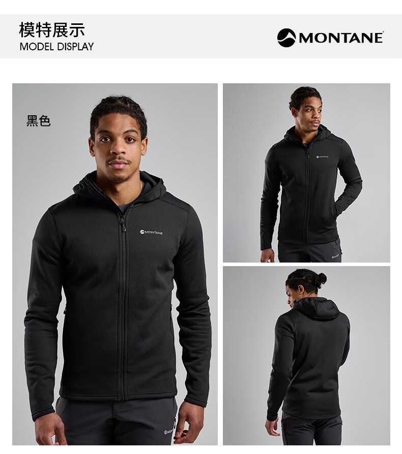 MONTANE 盟泰恩FURY抓绒衣男 轻便透气高弹连帽外套 户外徒步舒适四面弹
