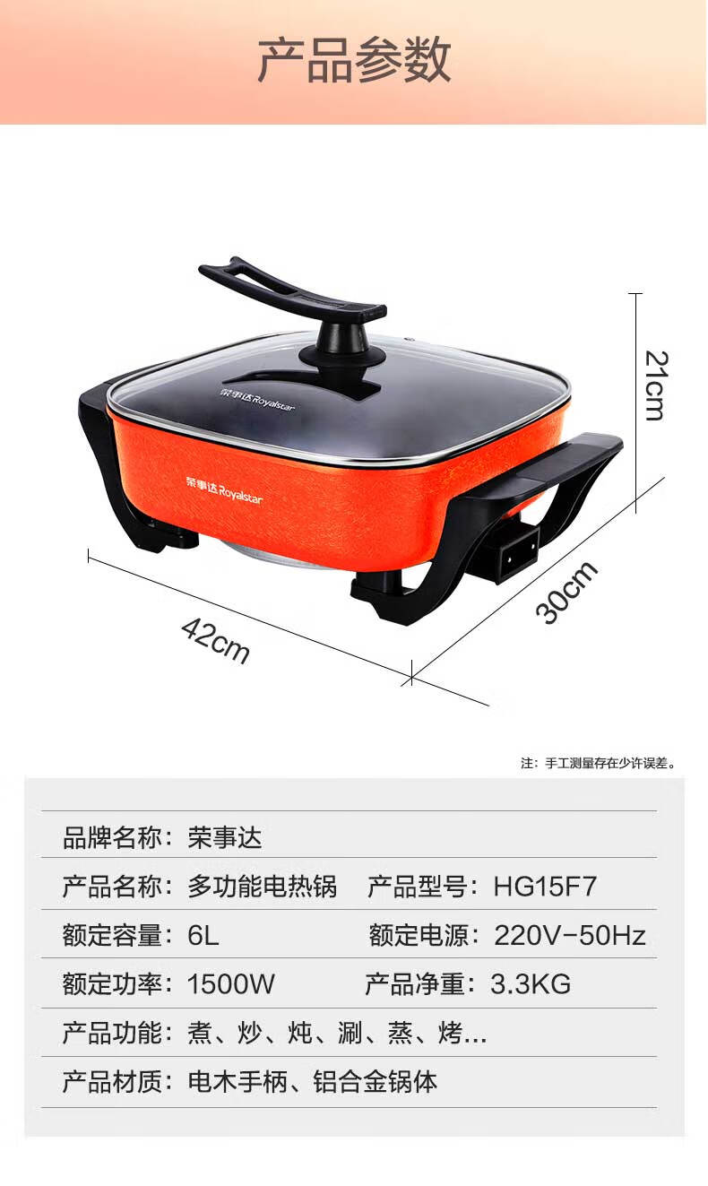 荣事达(Royalstar) 韩式多功能电热锅6升 HG15F7