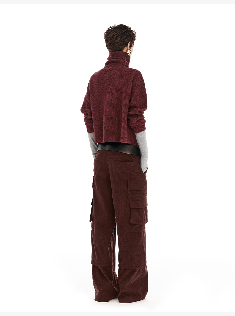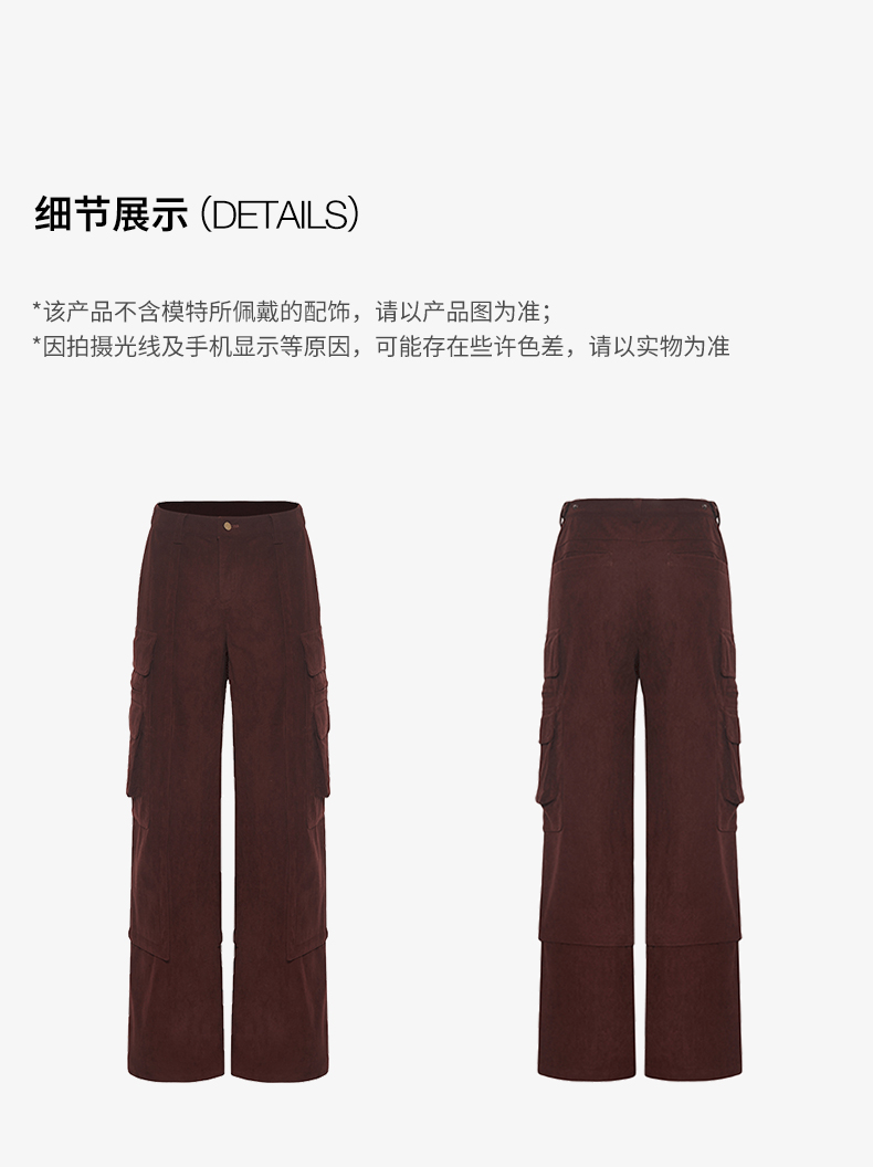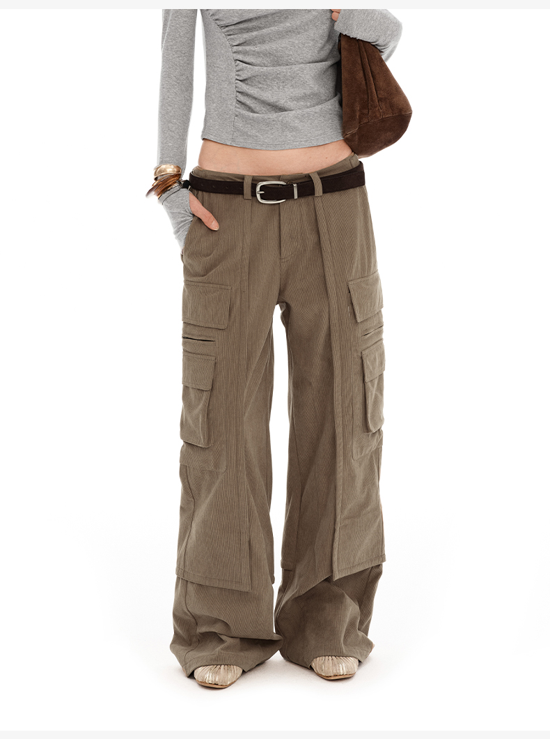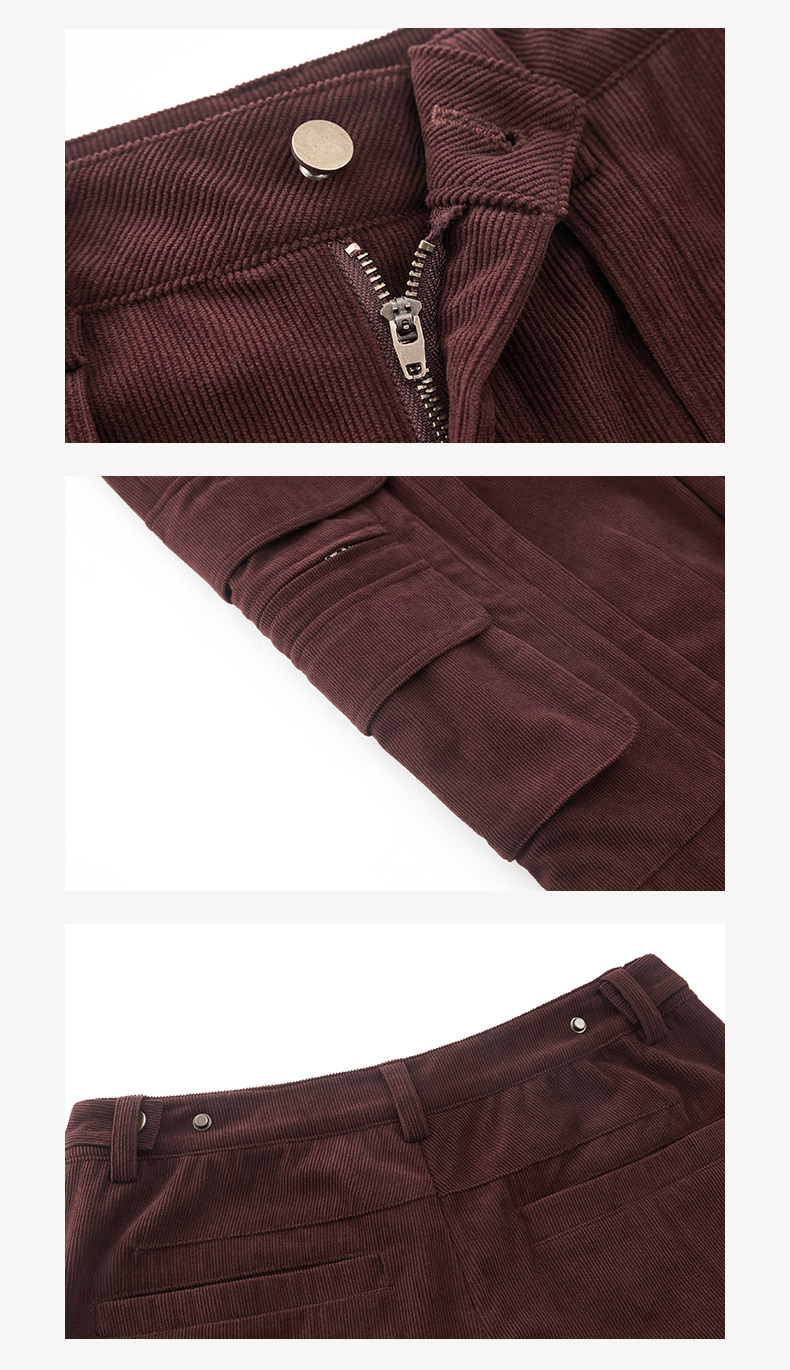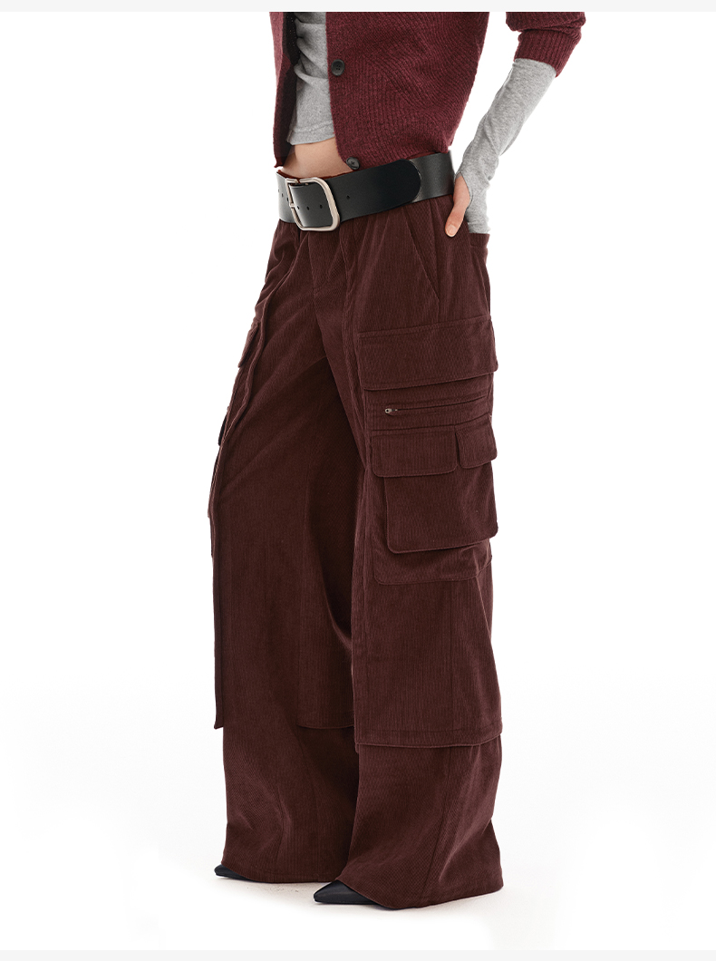 NUTH灯芯绒直筒中腰阔腿多口袋复古工装裤女秋冬