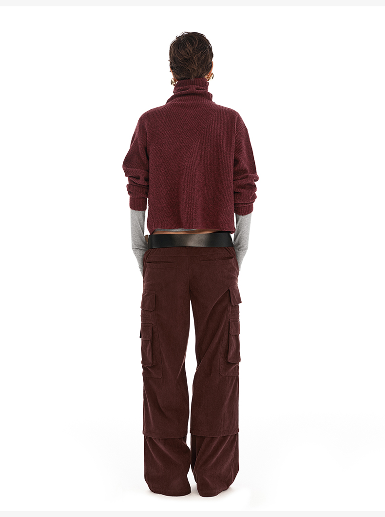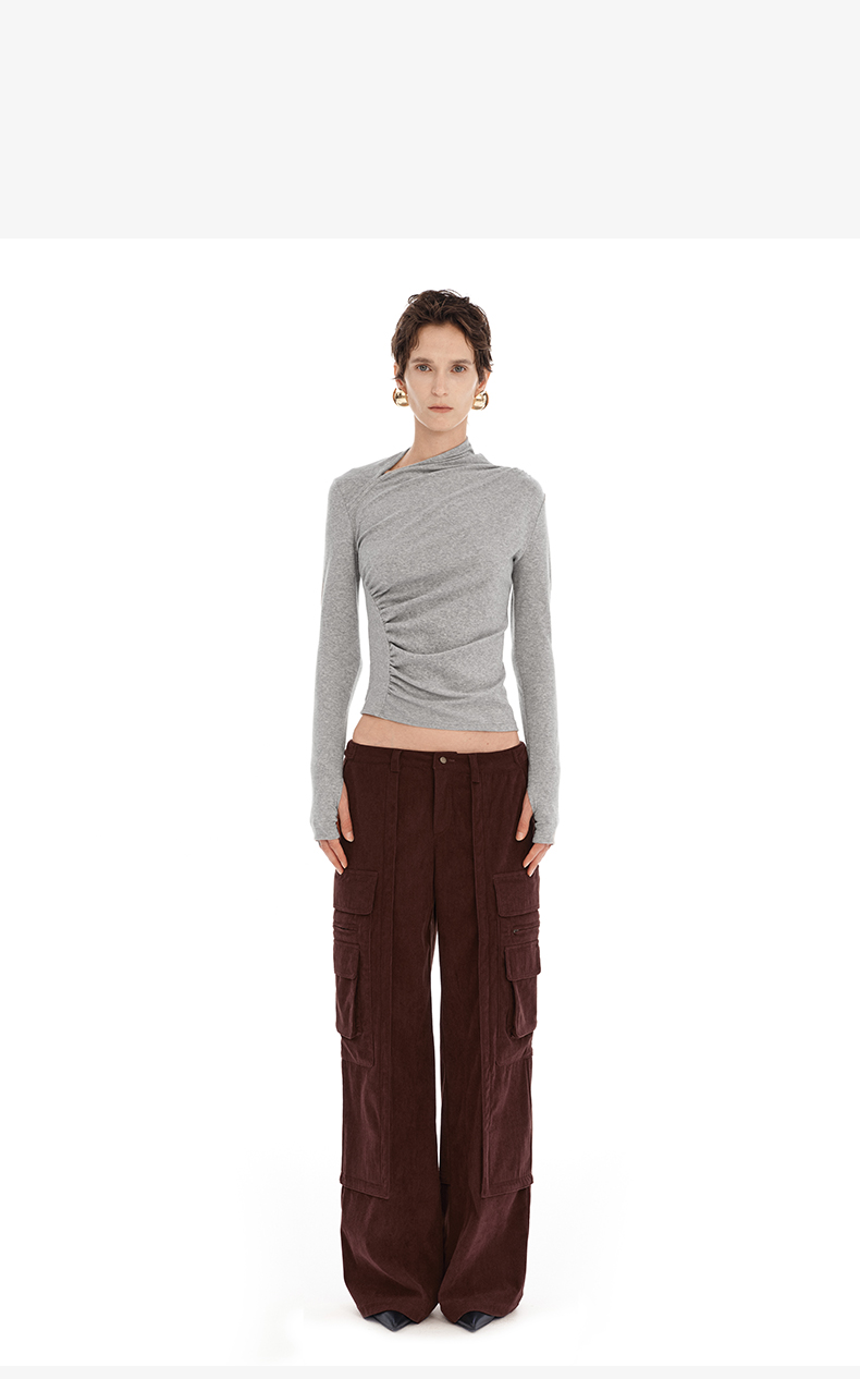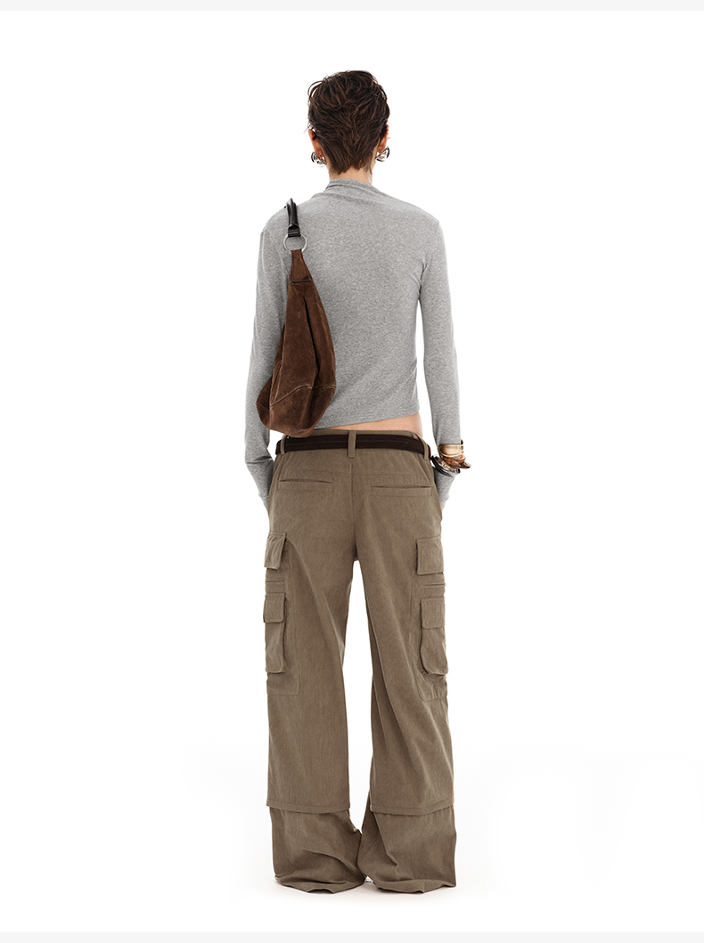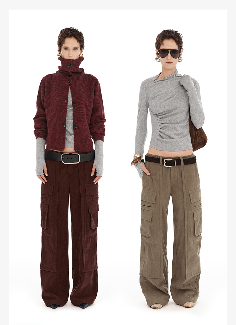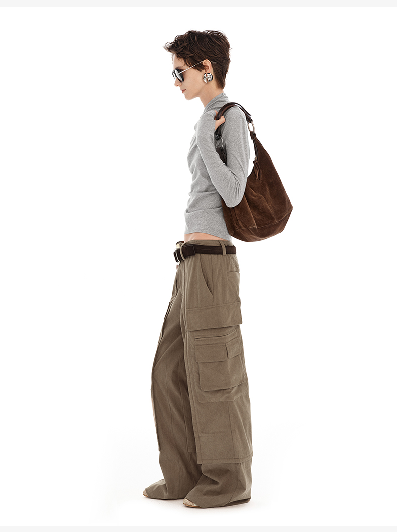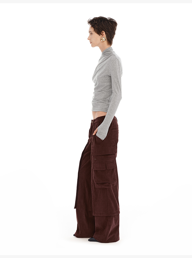 NUTH灯芯绒直筒中腰阔腿多口袋复古工装裤女秋冬
