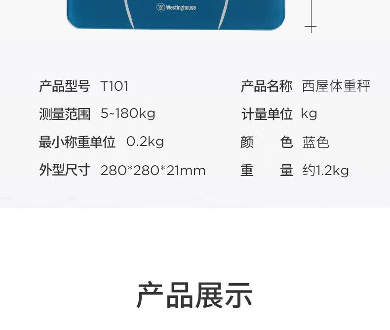 西屋(Westinghouse)电子秤家用体重秤精准体重秤T101 孔雀石蓝