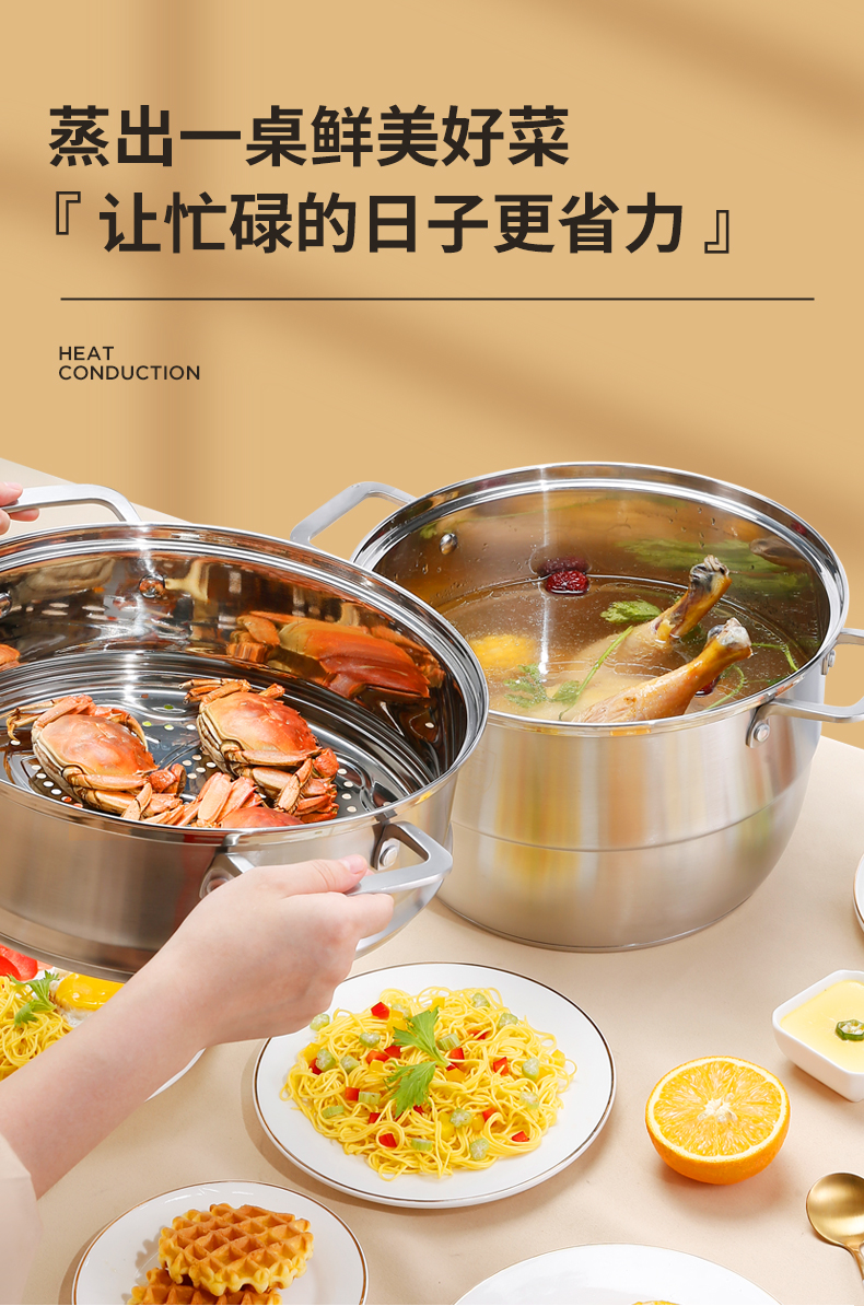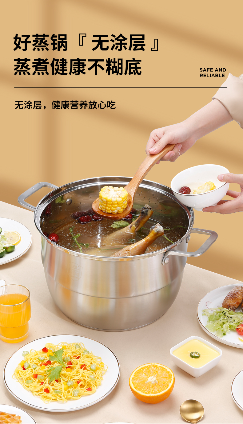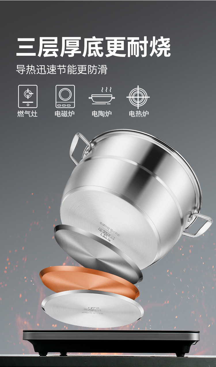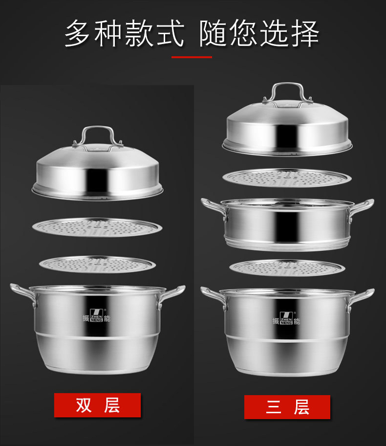 康巴赫生活馆振能304不锈钢三层加厚蒸锅