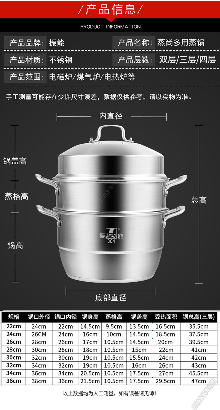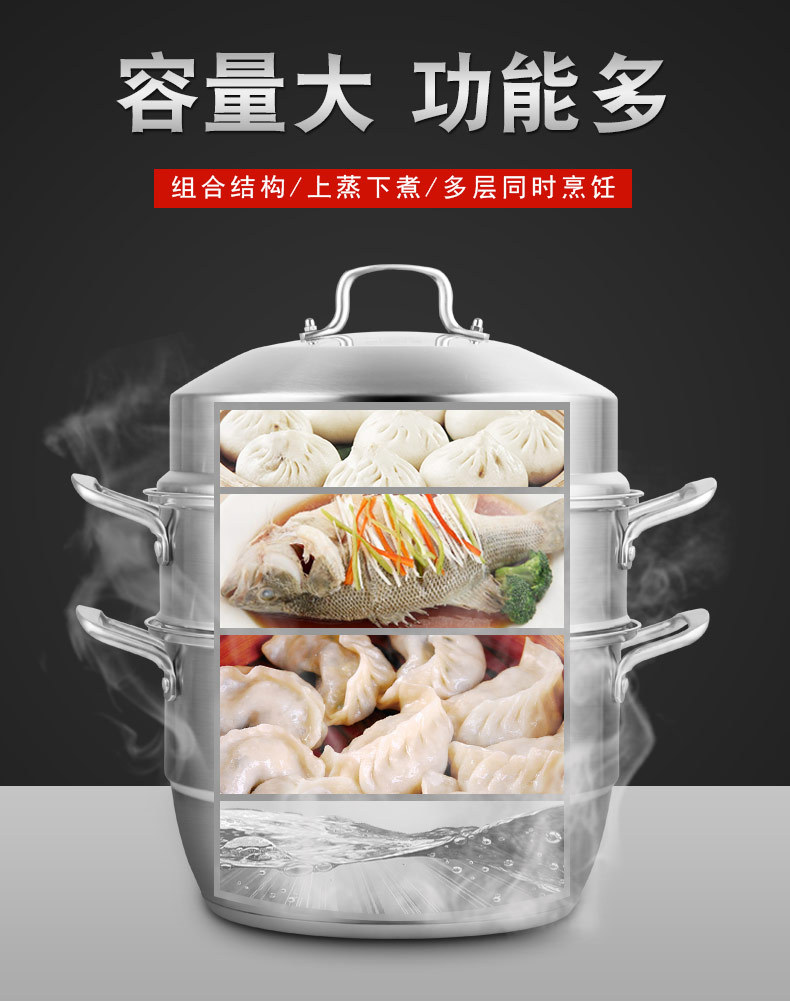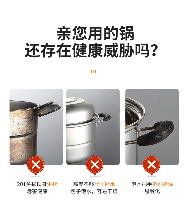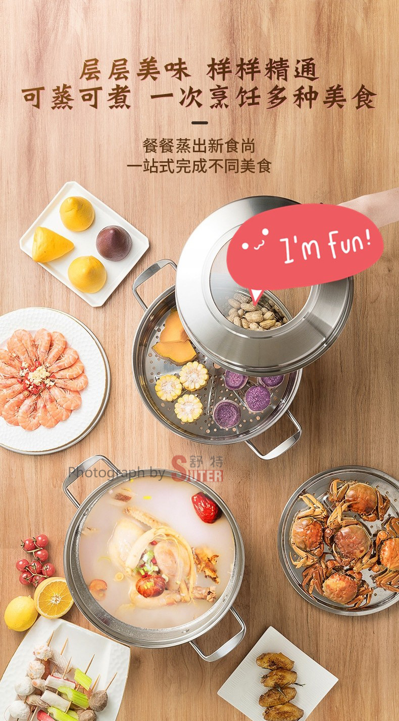 康巴赫生活馆振能304不锈钢三层加厚蒸锅