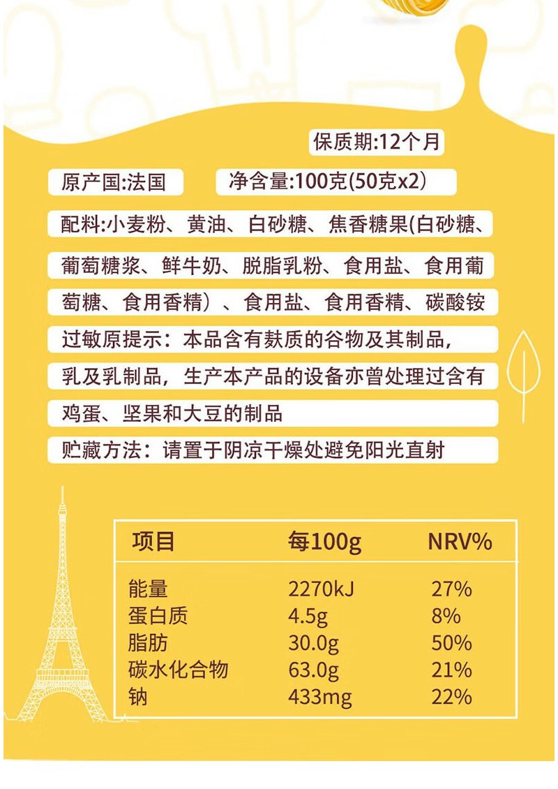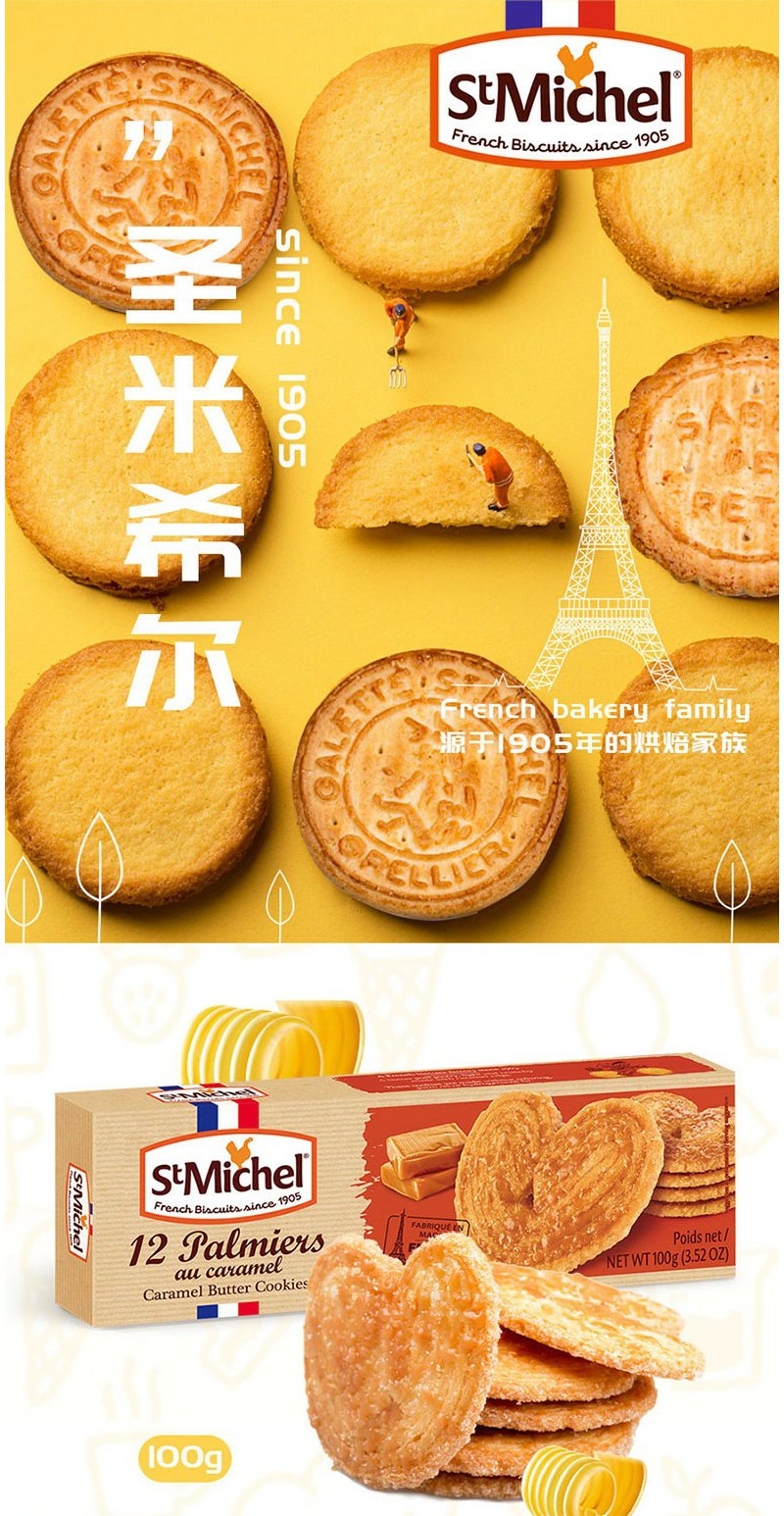圣米希尔(St Michel) 蝴蝶酥饼干 焦糖黄油味糕点100g*2