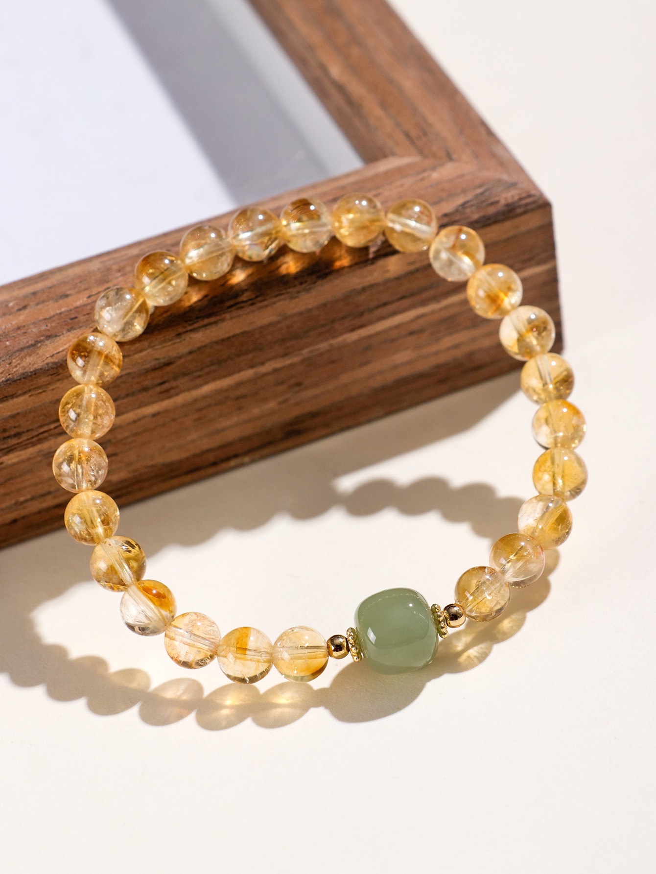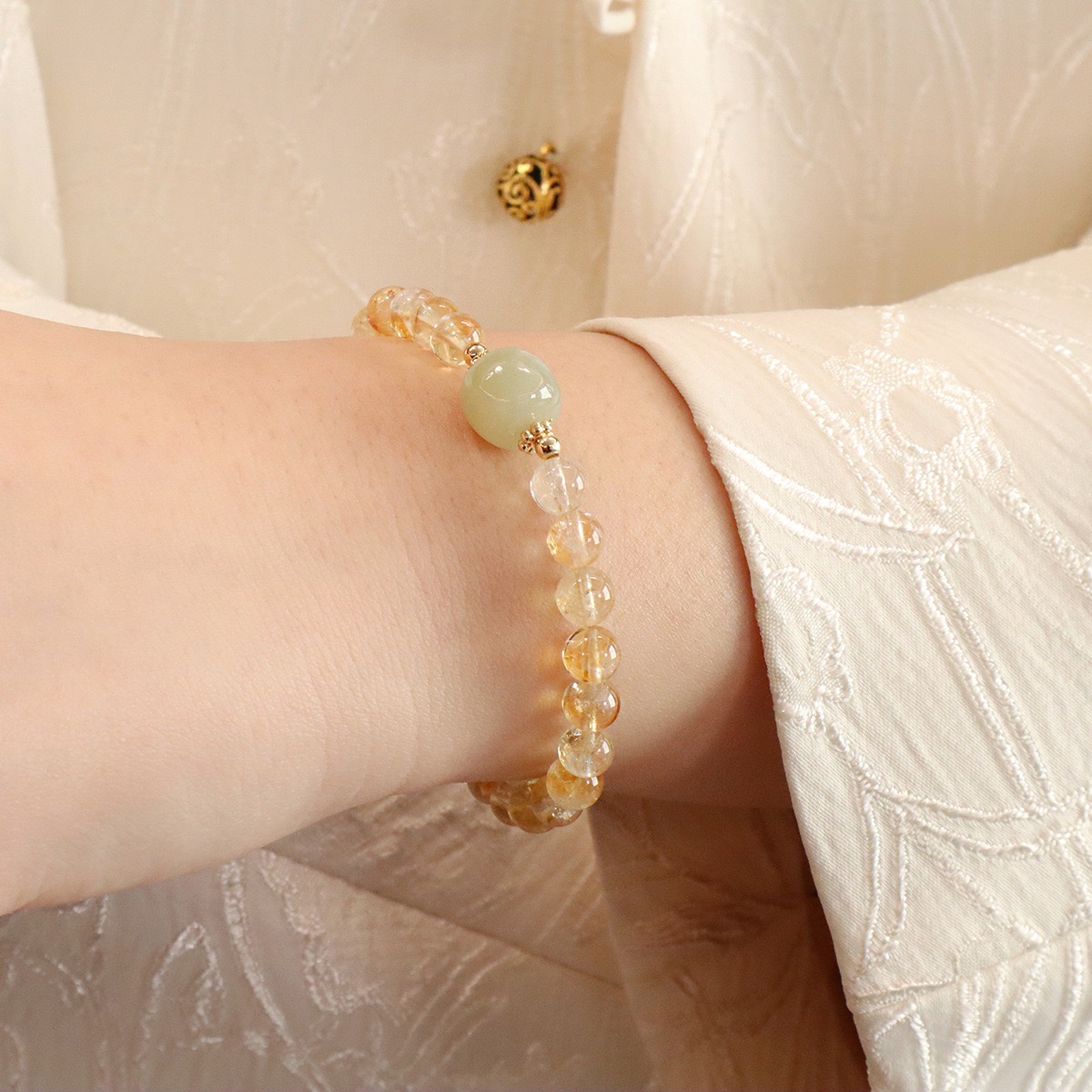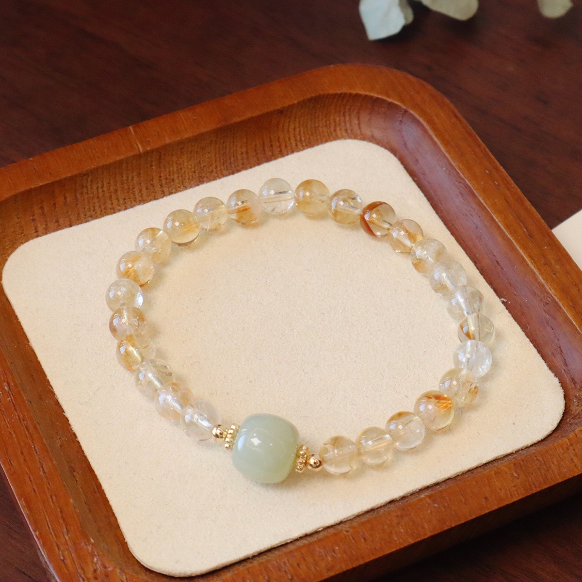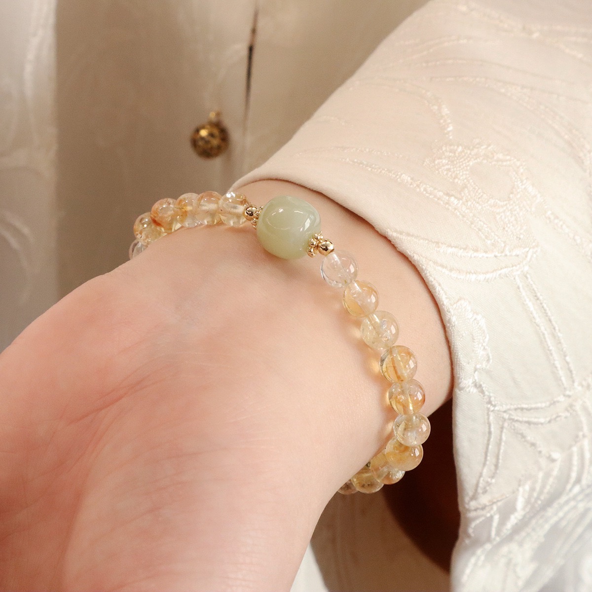 【产品尺寸】黄水晶珠径约6mm,和田玉约10mm,适合手围约14-16cm