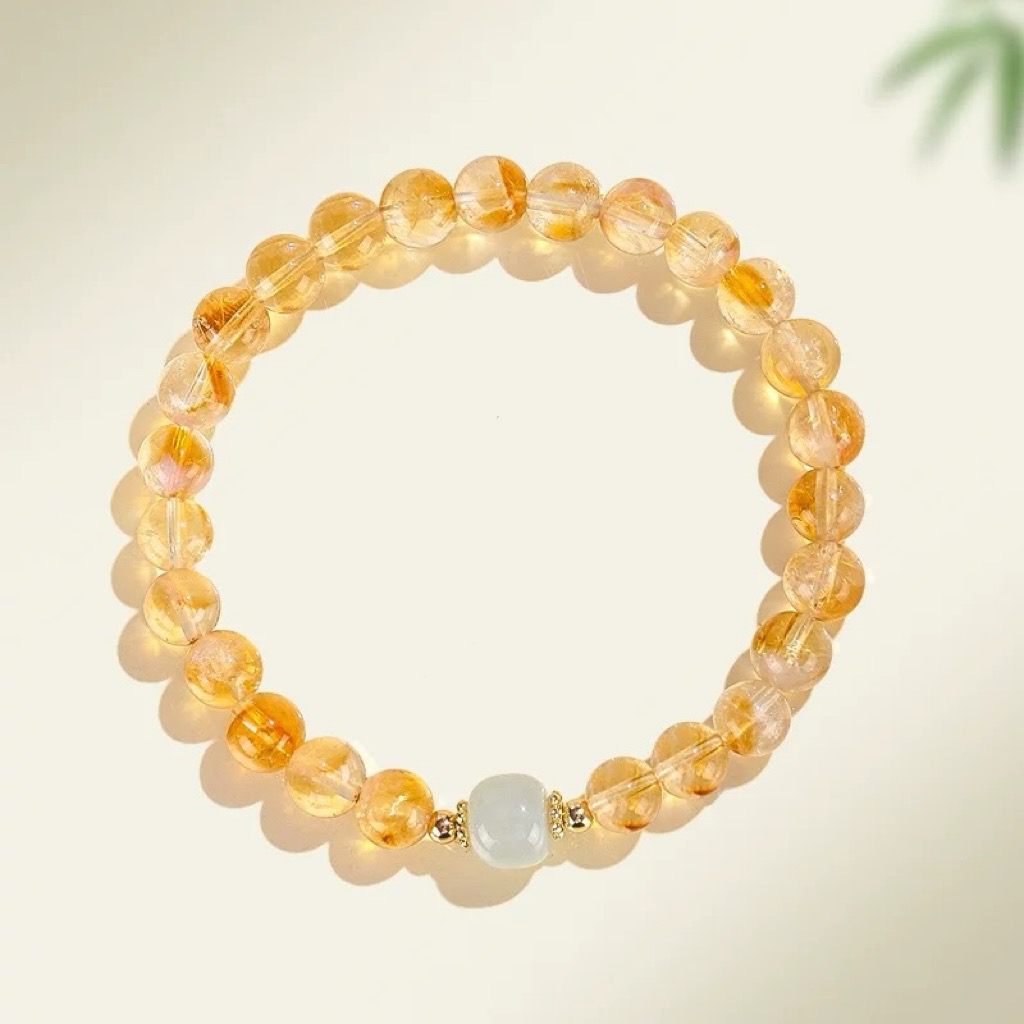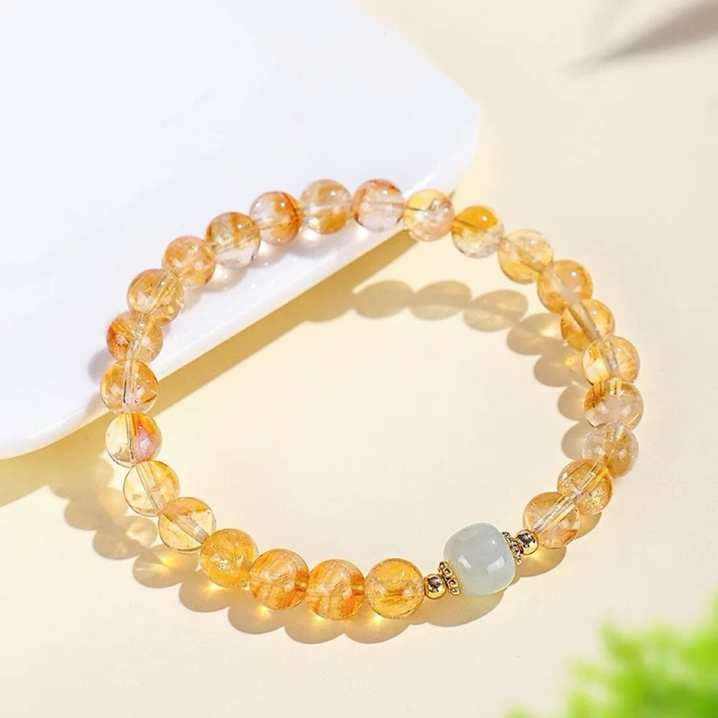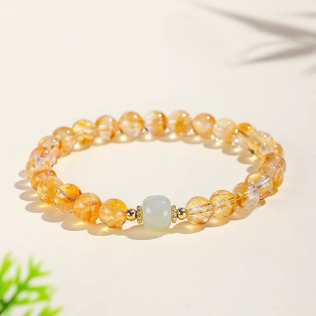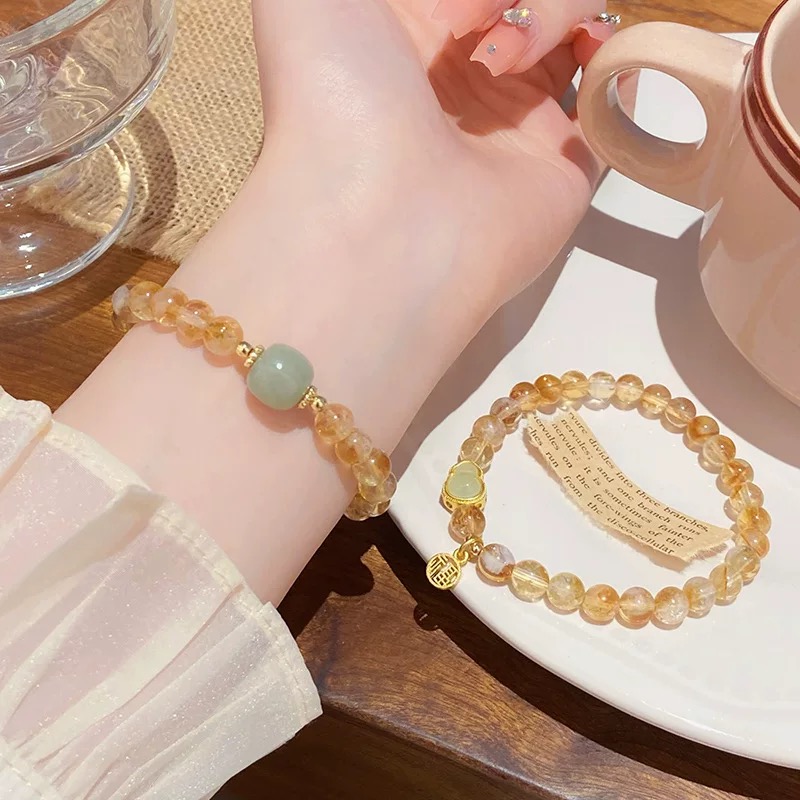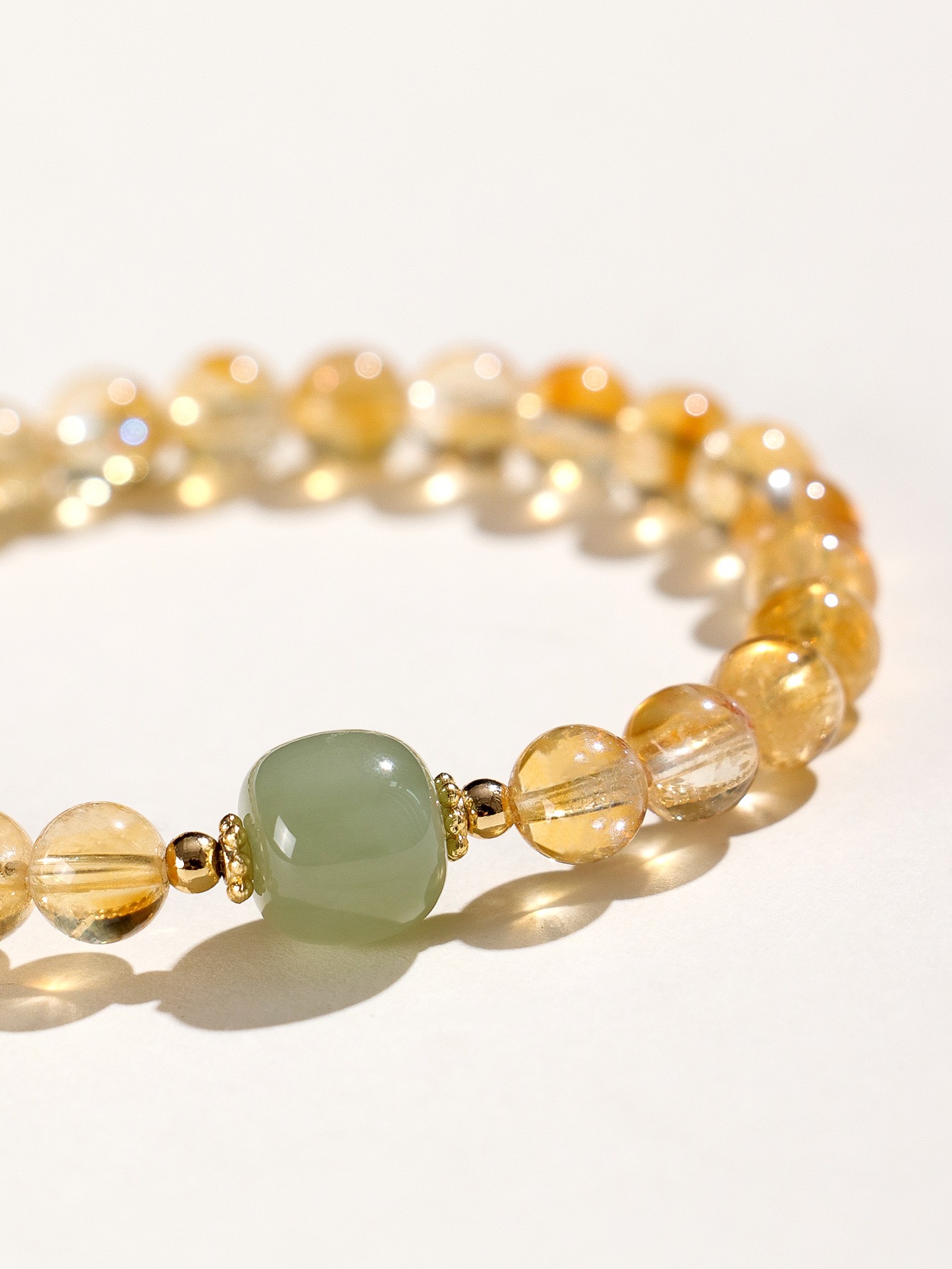 【产品尺寸】黄水晶珠径约6mm,和田玉约10mm,适合手围约14-16cm