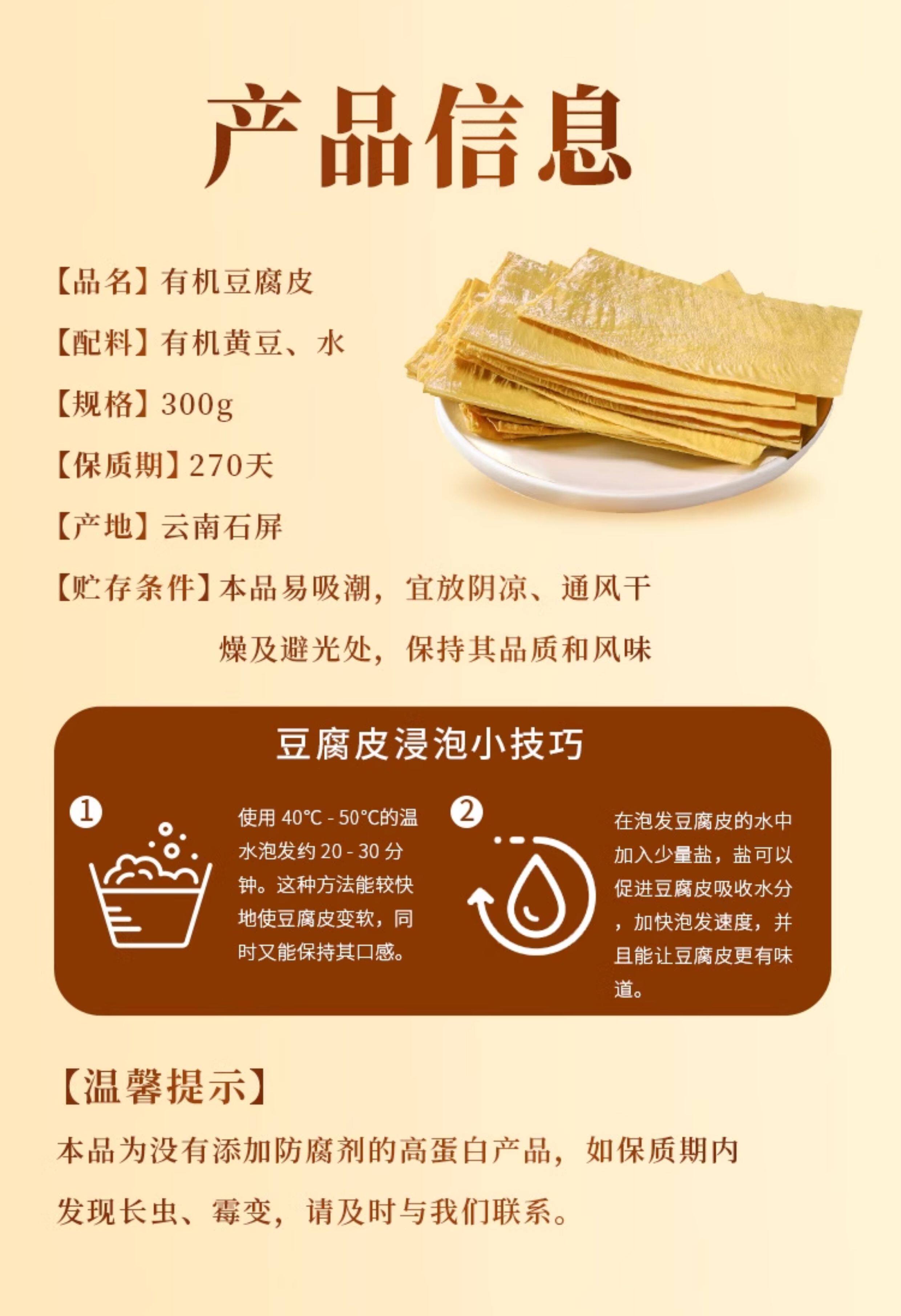 云南石屏有机豆腐皮300g 0农残0化肥 非转基因