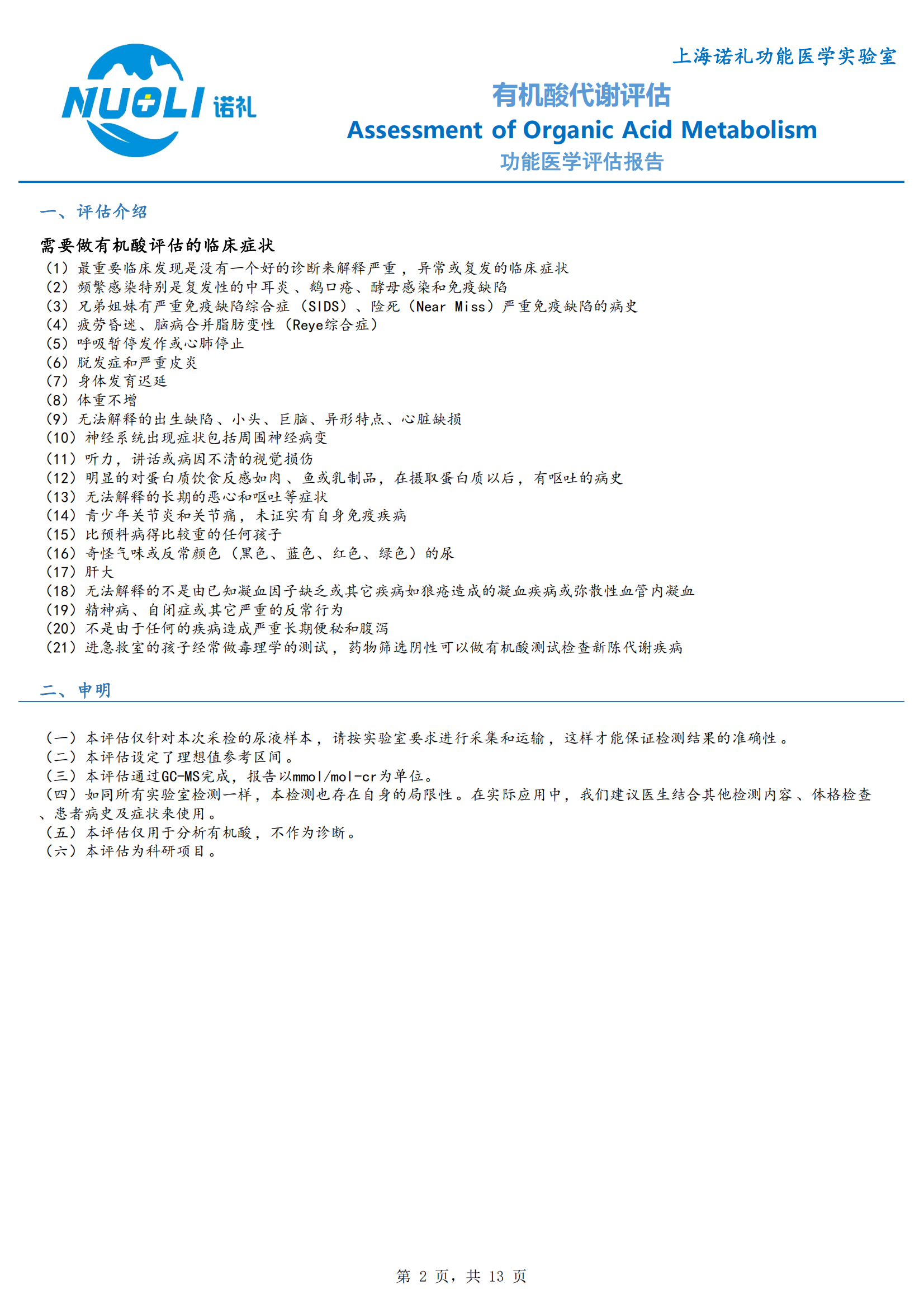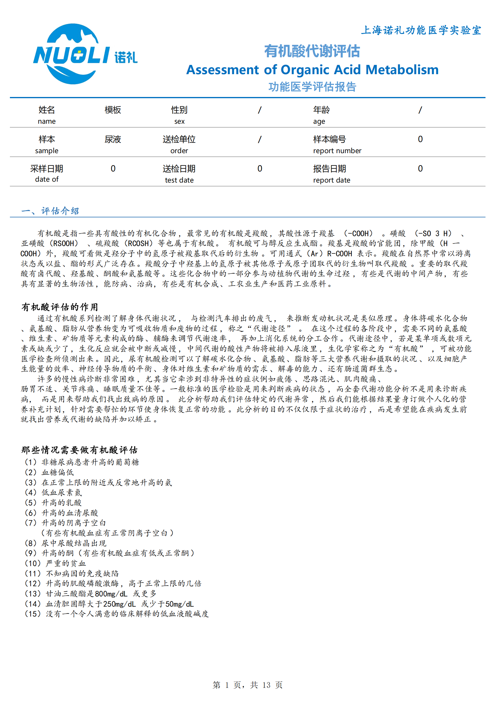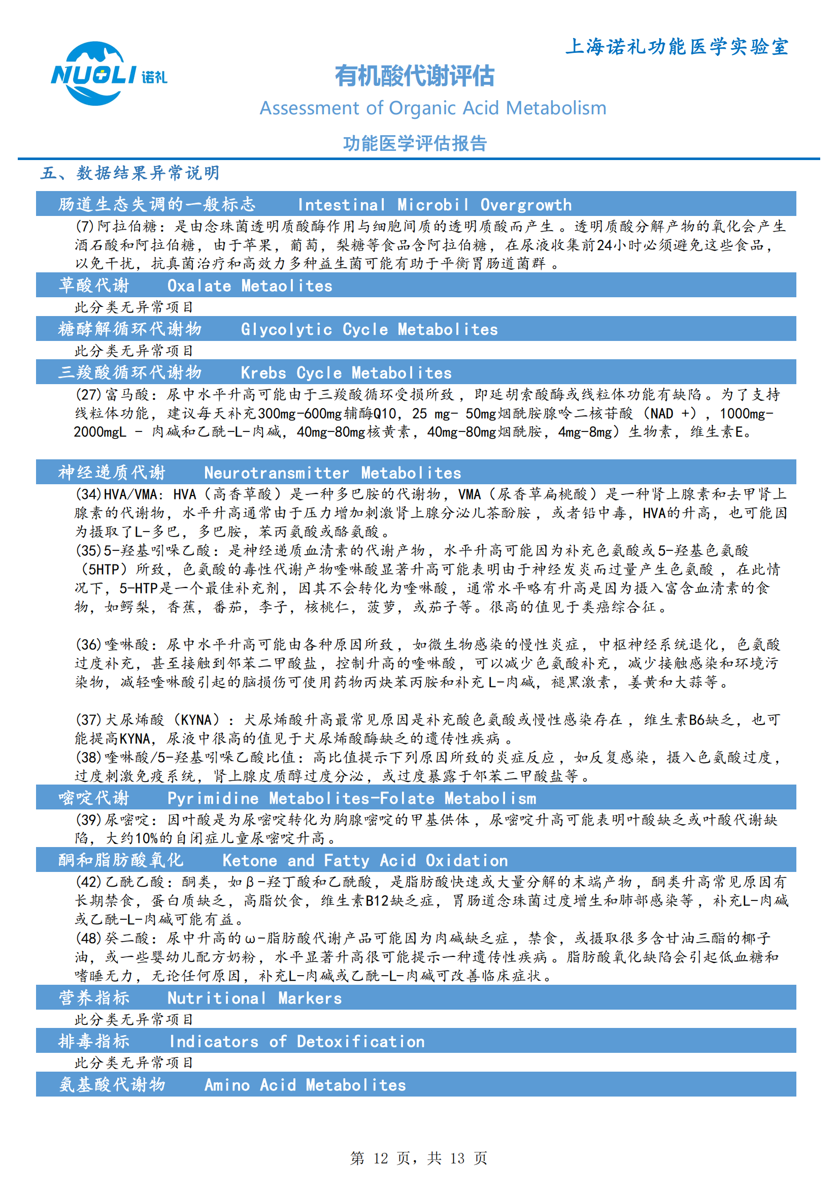 【检测】有机酸代谢评估