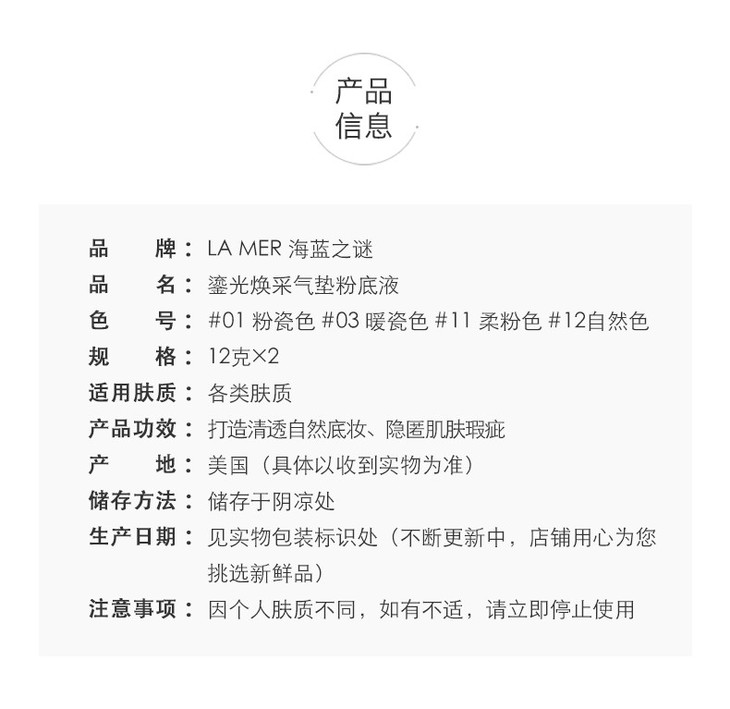 海蓝之谜(LA MER)鎏光焕变气垫粉底液03号(暖瓷色)