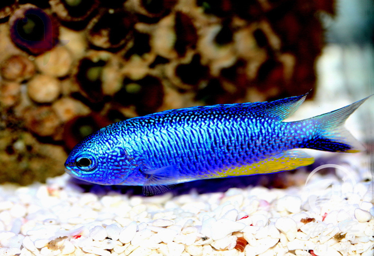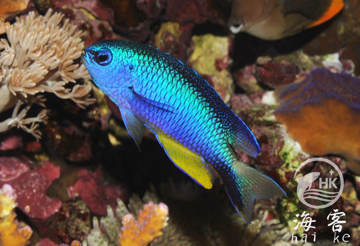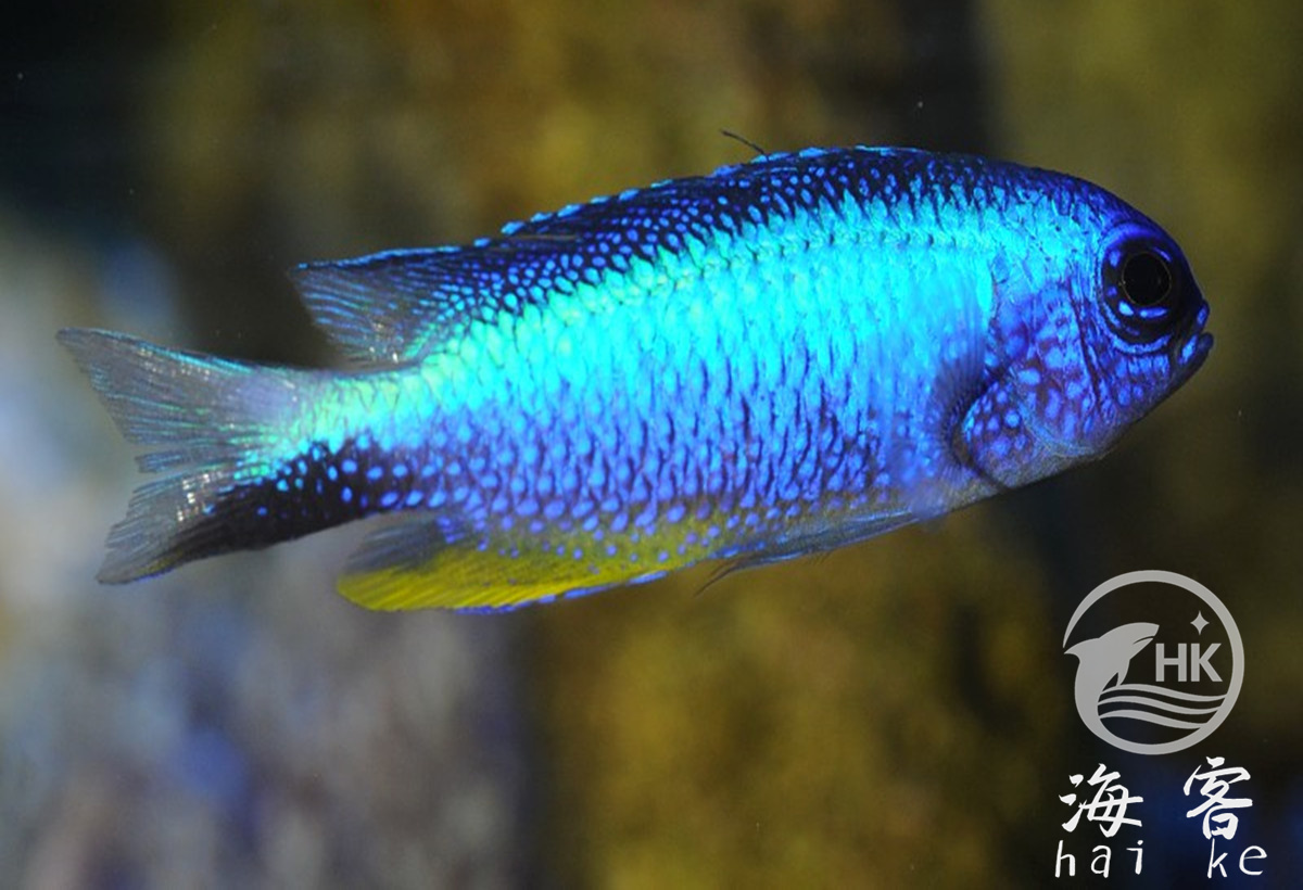 也叫电光蓝魔鬼。由有长期从事雀鲷科海水鱼研究工作的Gerald Allen博士首先发现,这种苗条的鱼整体呈现荧光蓝色,背部一直到尾部呈现黄绿色。