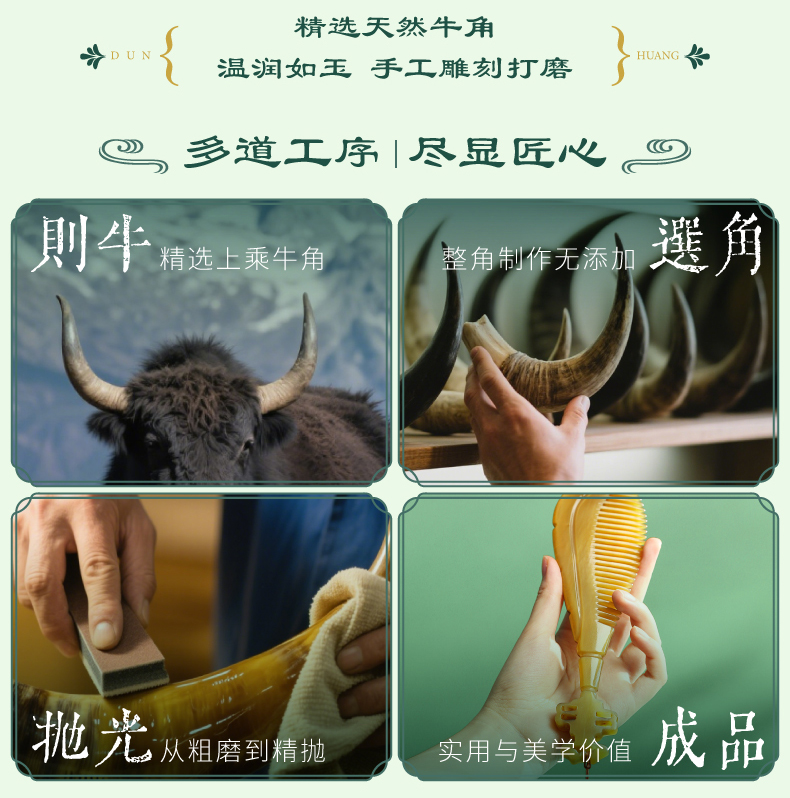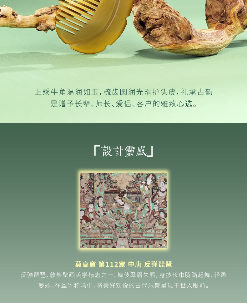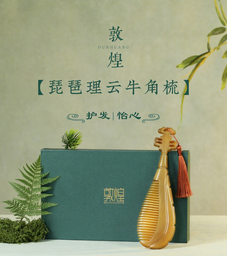 敦煌研究院【 琵琶理云牛角梳 】博物馆文创礼品手工梳子发梳琵琶梳子