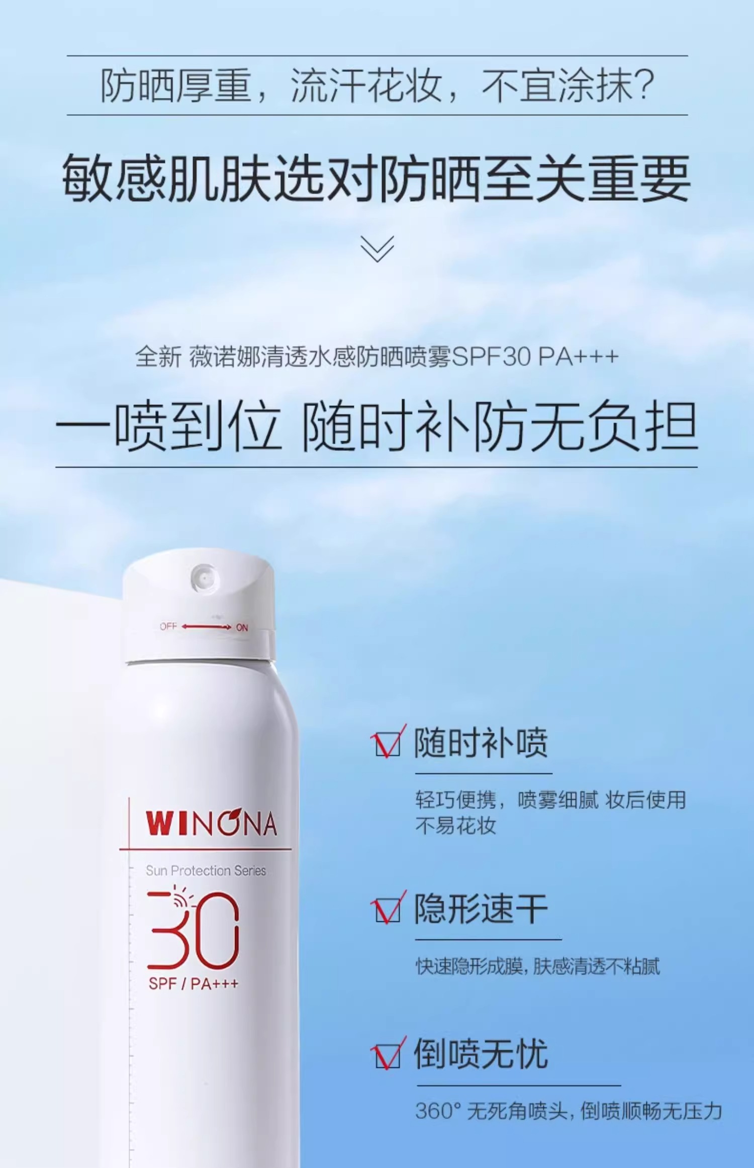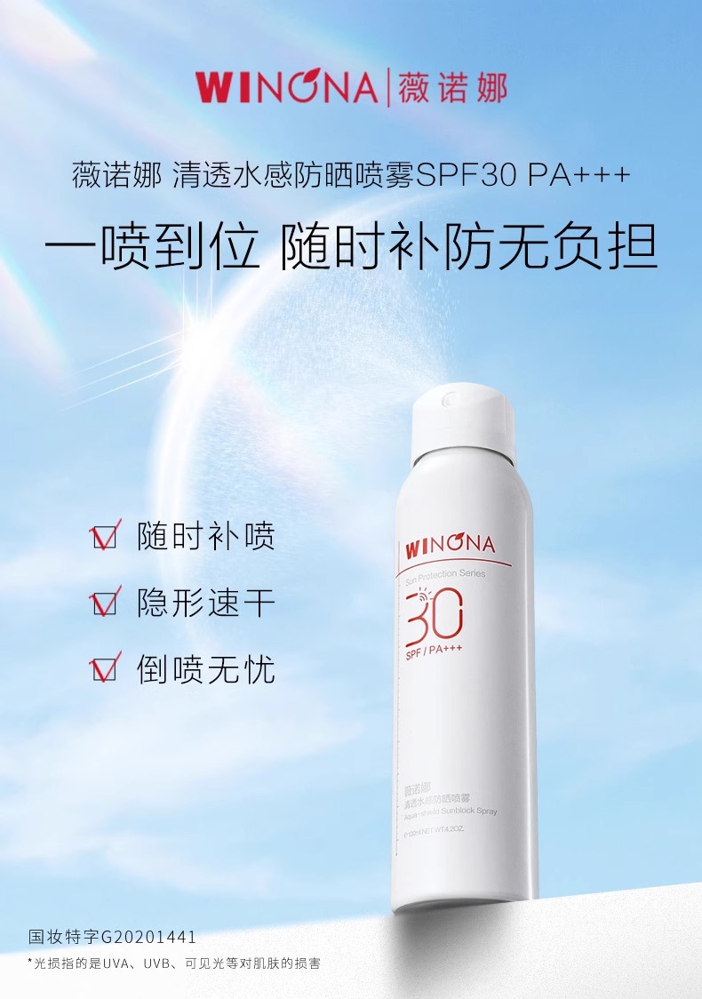 夏季爆款 薇诺娜清透水感防晒喷雾 喷雾细腻清爽温和敏肌防晒霜SPF30PA+++