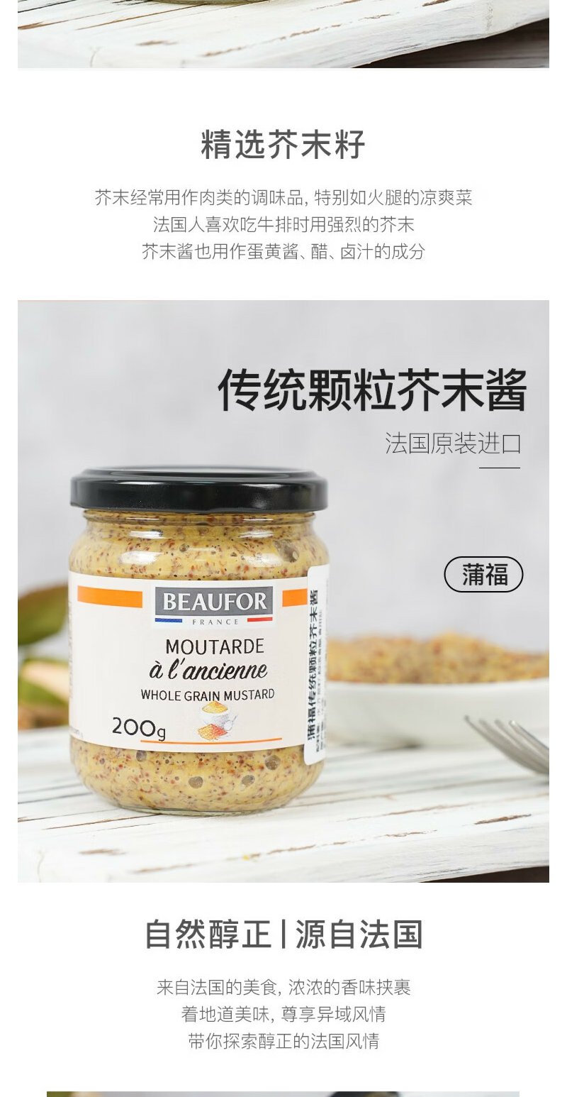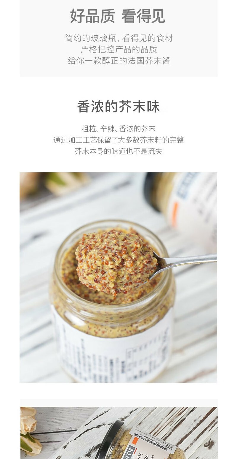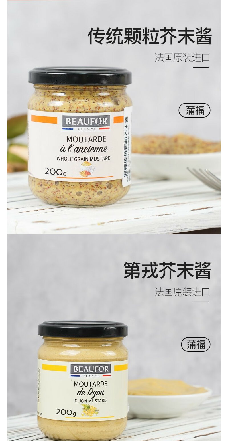 蒲福(BEAUFOR) 芥末酱 法国进口调味酱料 200g*2瓶装