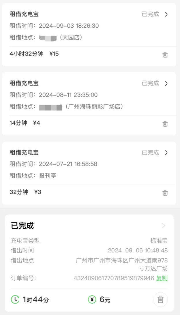 翻了翻我没有带电宝的习惯之前,外出的共享充电宝订单