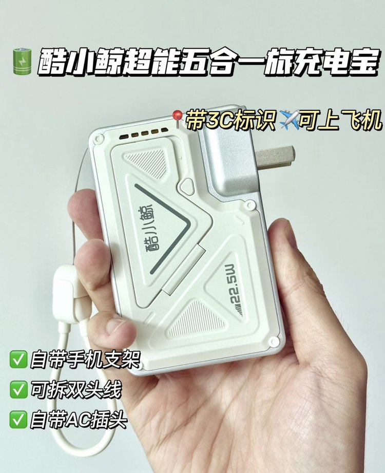带3C标识⚠️可上飞机!【酷小鲸超能五合一旅充宝】充电头+充电宝+数据线+手机支架+磁吸充电五合一🔋