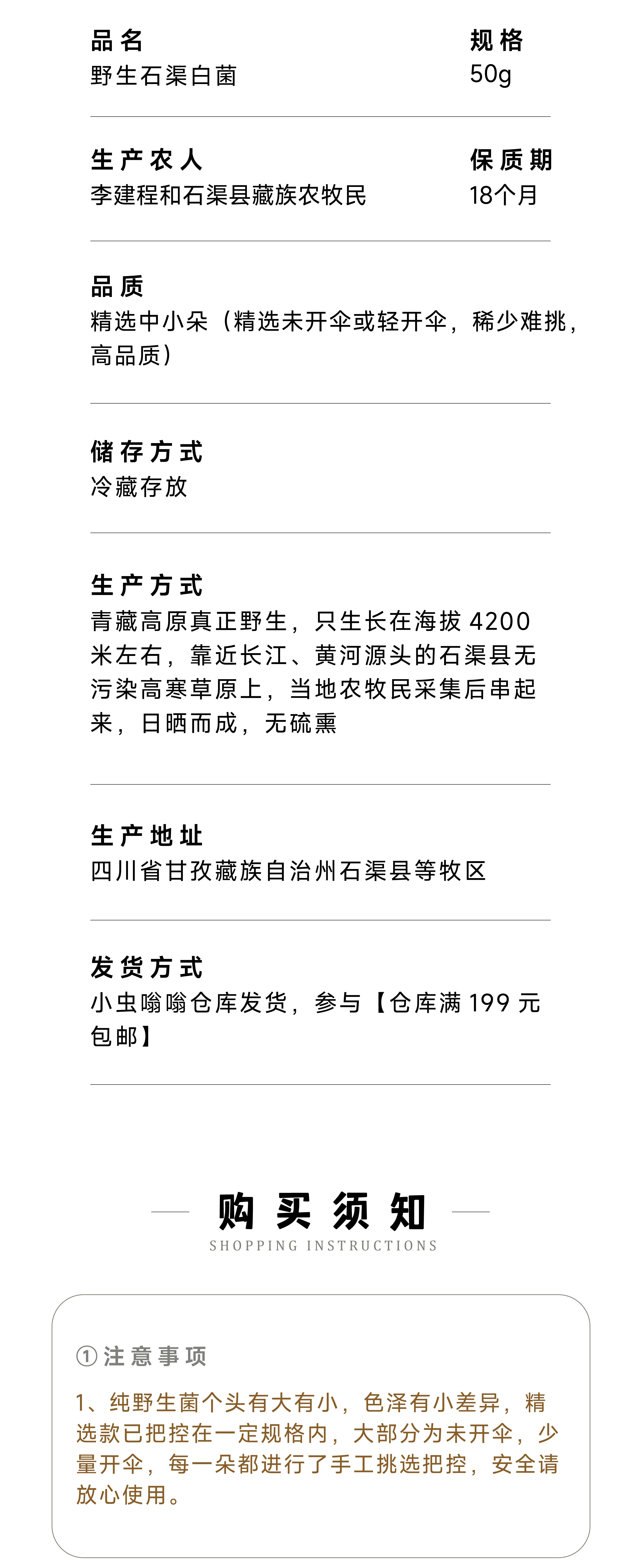 野生石渠白菌 50g/袋 | 合作农友生产,来自四川甘孜石渠县,生产者:李建程和石渠县藏族农牧民 &【公平贸易农人定价】