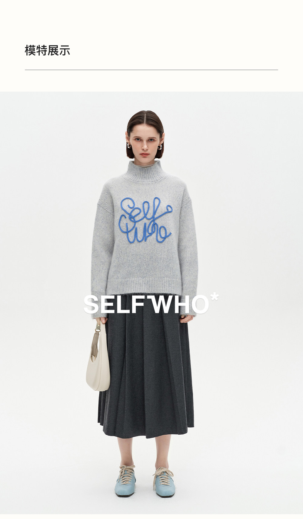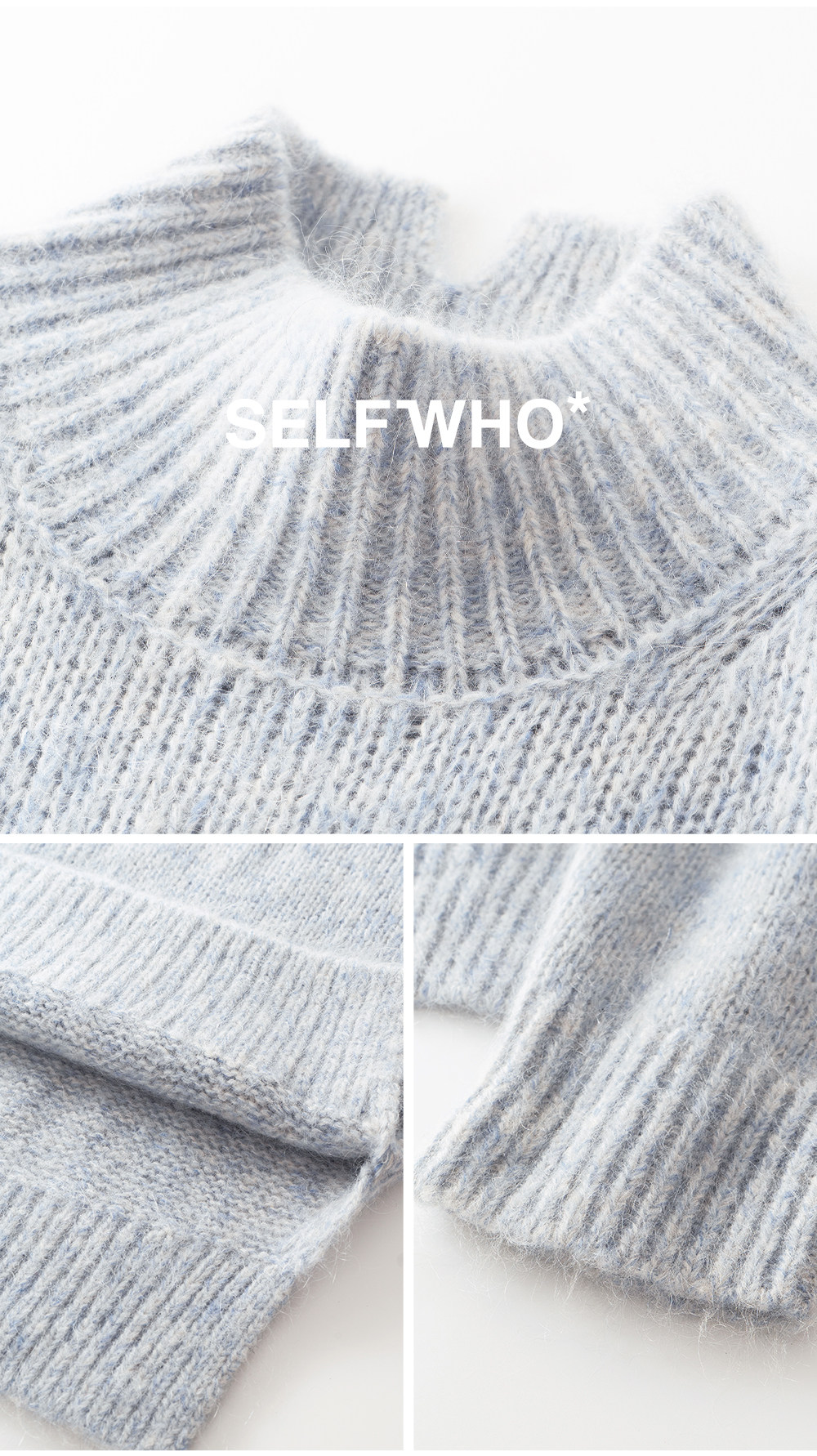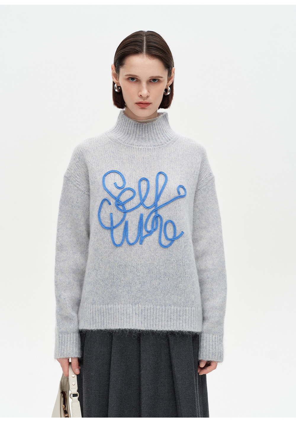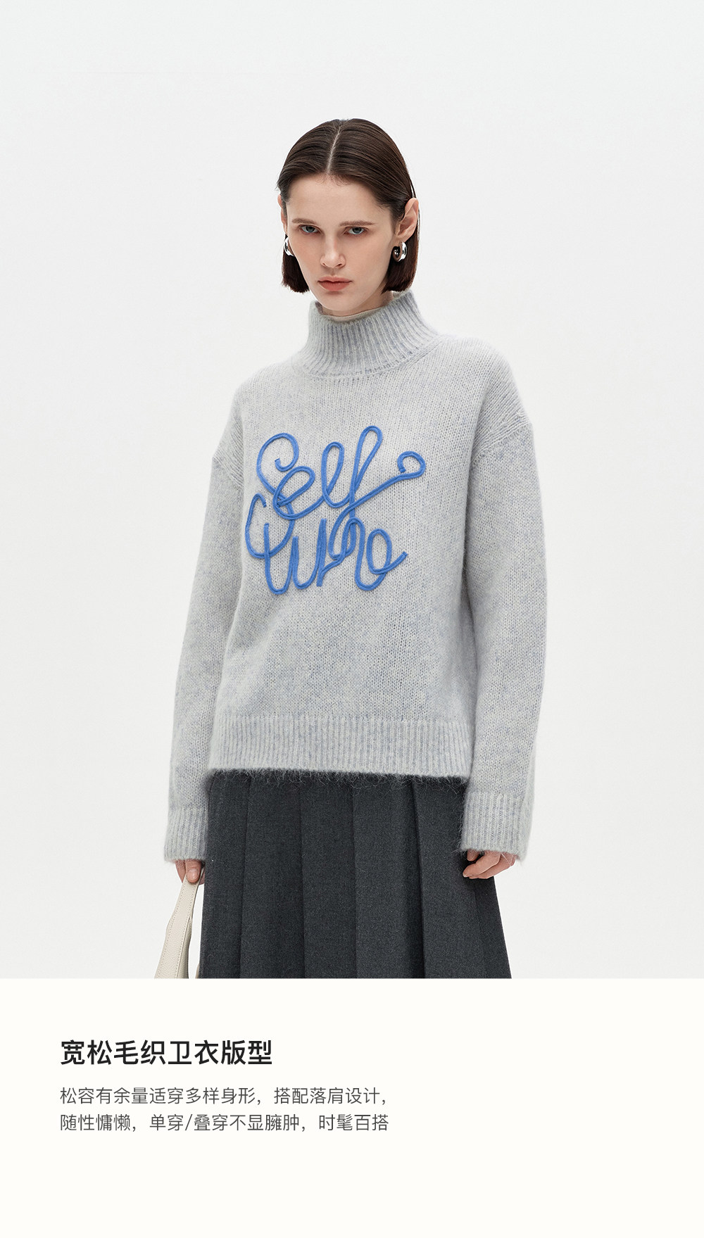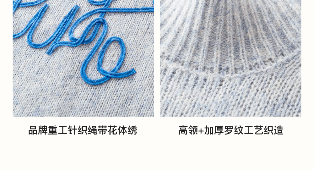 SELFWHO绵羊毛混纺立体绳绣高领毛衣女2026春新款宽松保暖针织衫