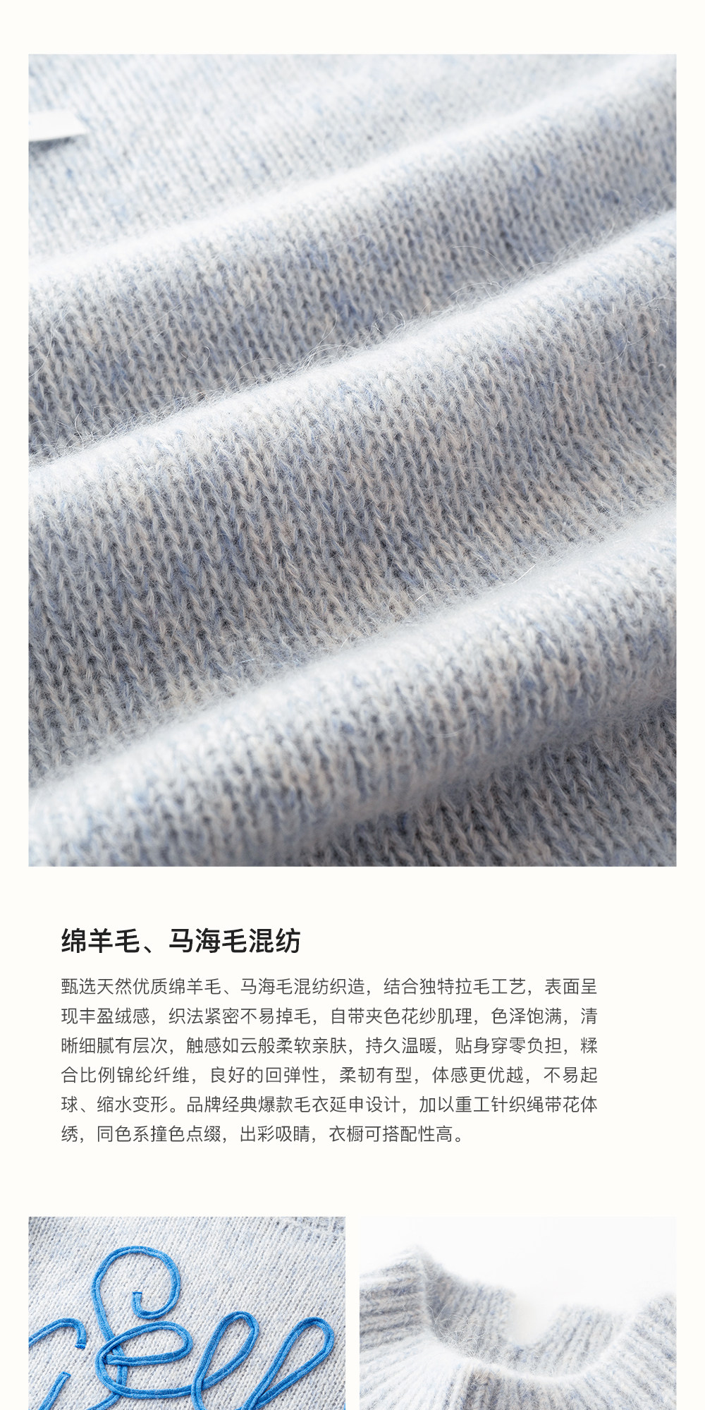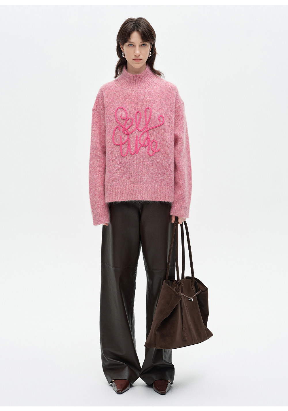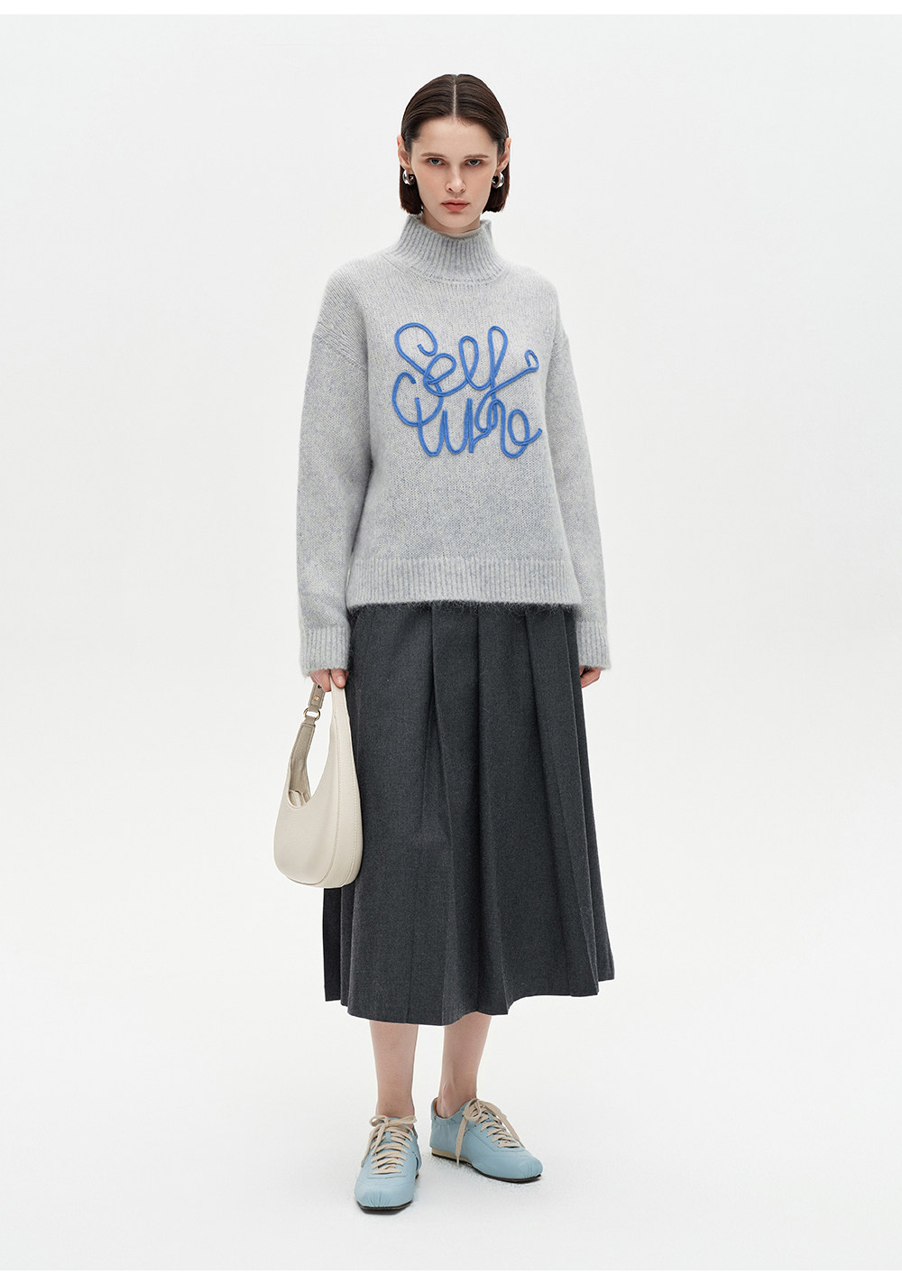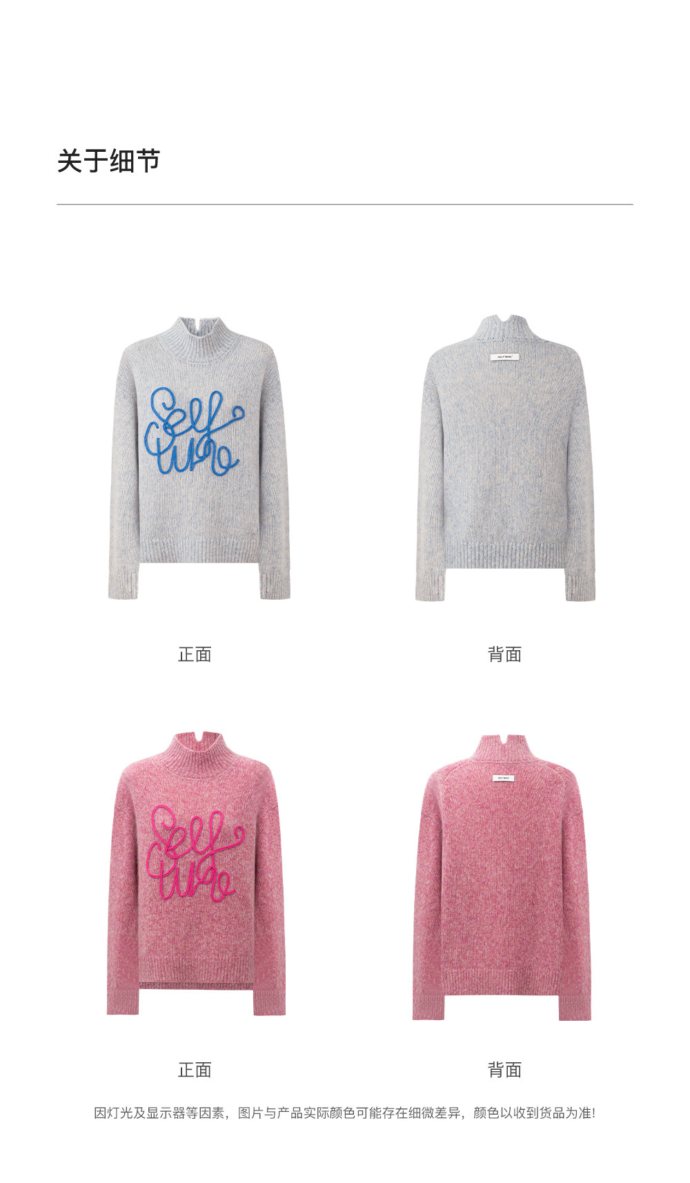 SELFWHO绵羊毛混纺立体绳绣高领毛衣女2026春新款宽松保暖针织衫