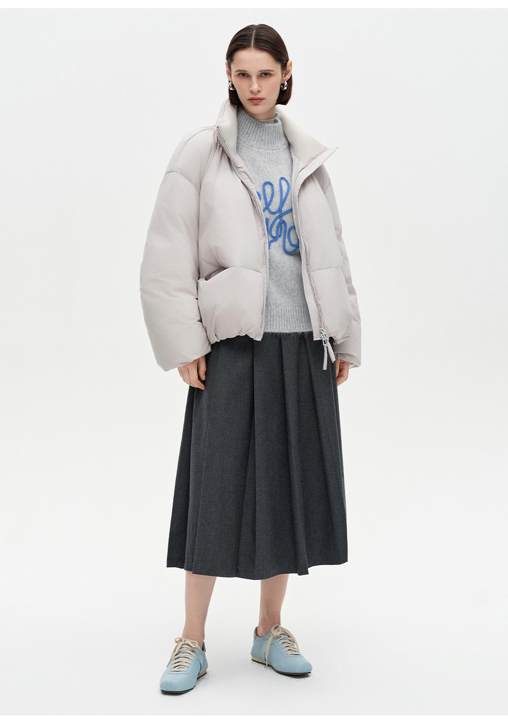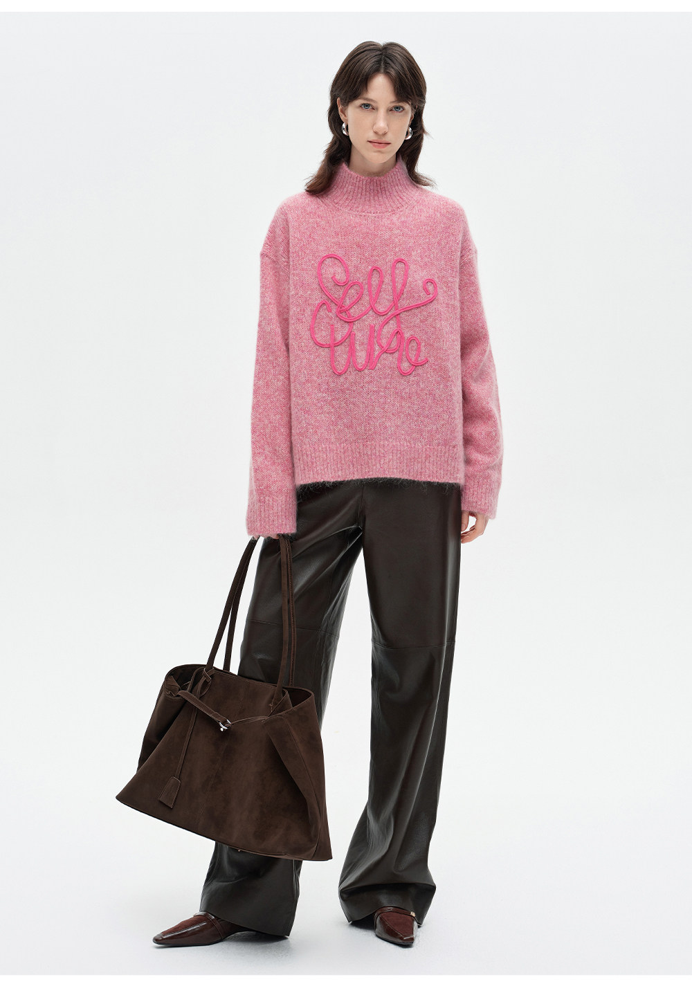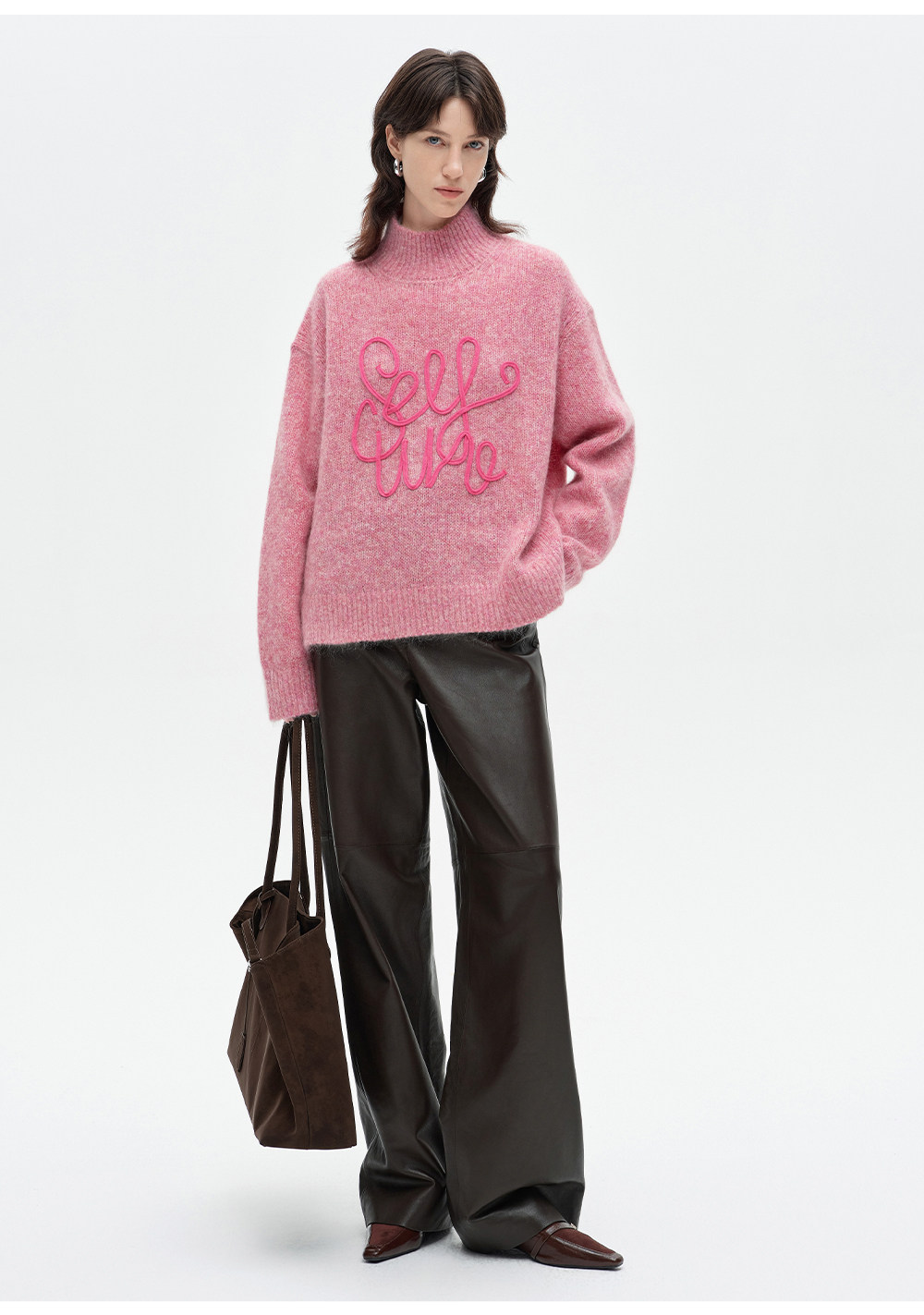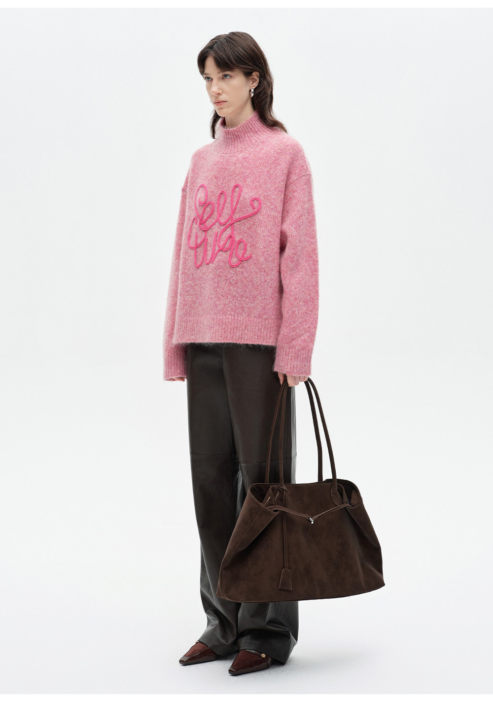 SELFWHO绵羊毛混纺立体绳绣高领毛衣女2026春新款宽松保暖针织衫