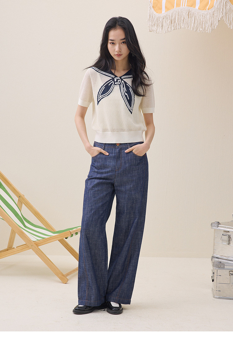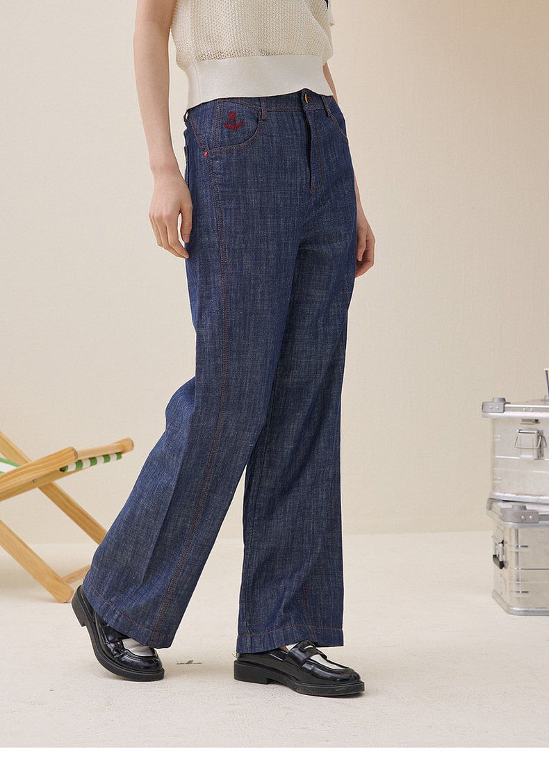 谜底刺绣直筒裤长裤2026年夏季新品棉麻色织复古艺术女262MK0466