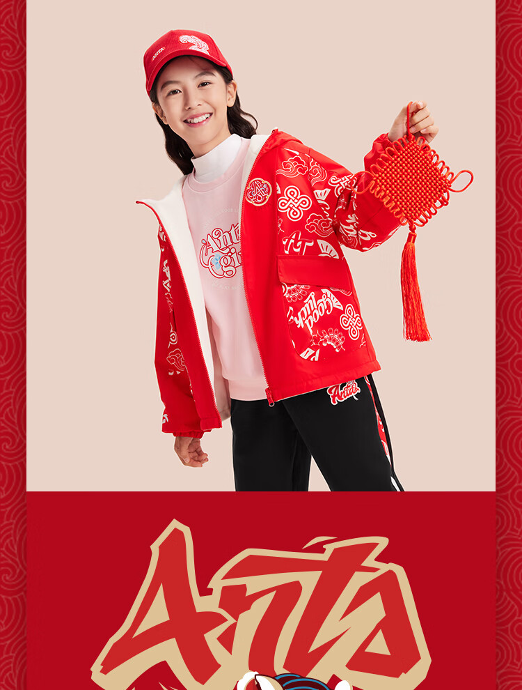安踏儿童外套女童装双面穿上衣加绒保暖梭织外套商场同款362518602