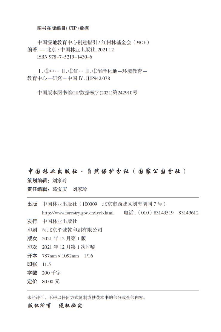 中国湿地教育中心创建指引 红树林基金会文库 红树林基金会(MCF) 1430 中国林业出版社